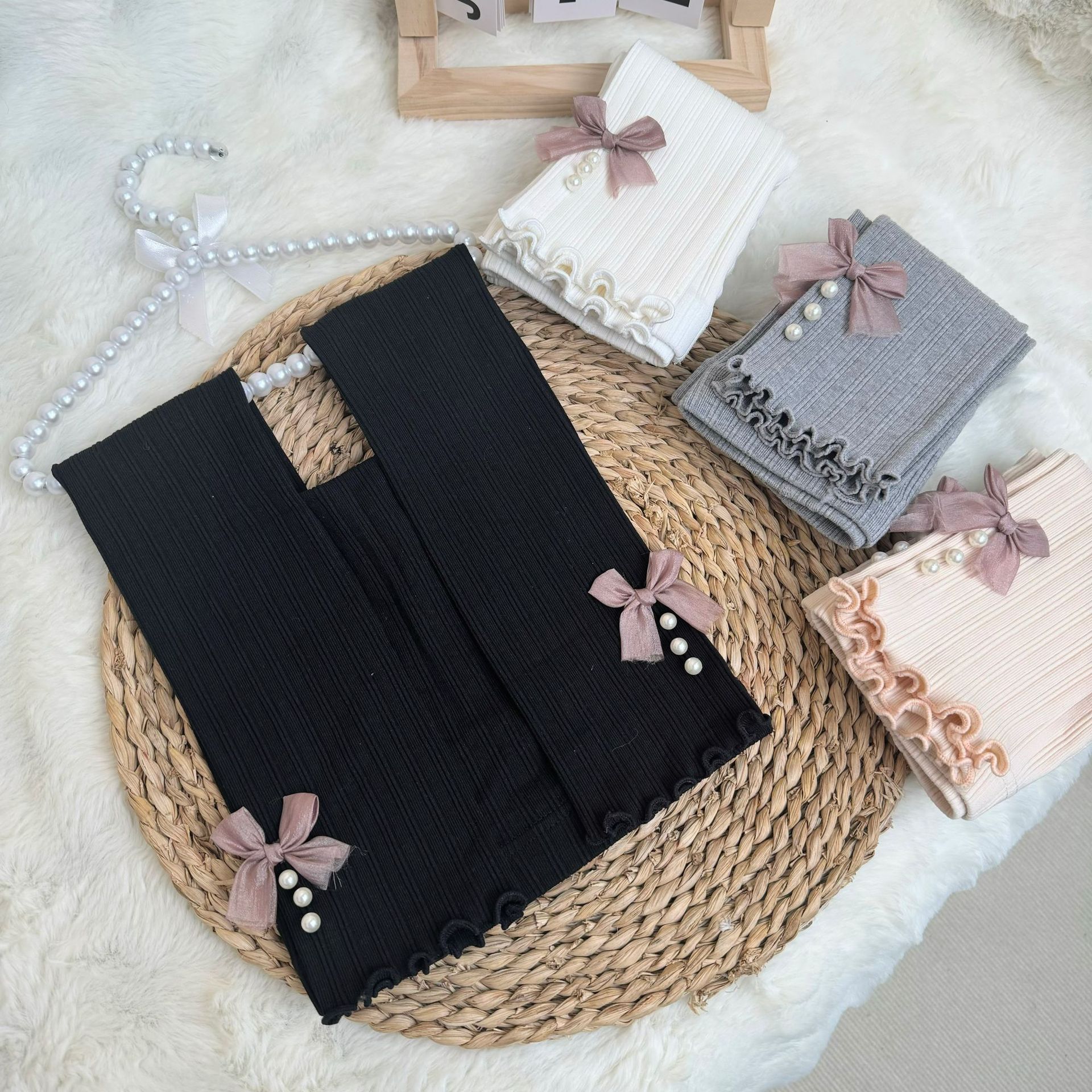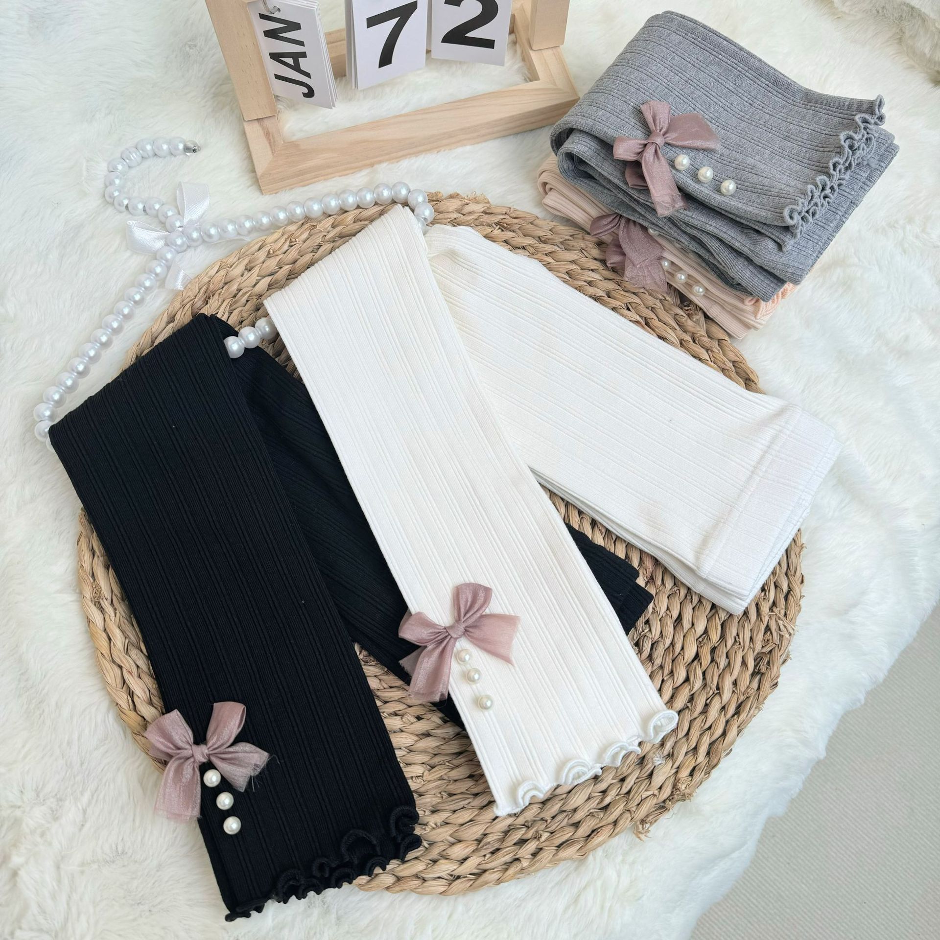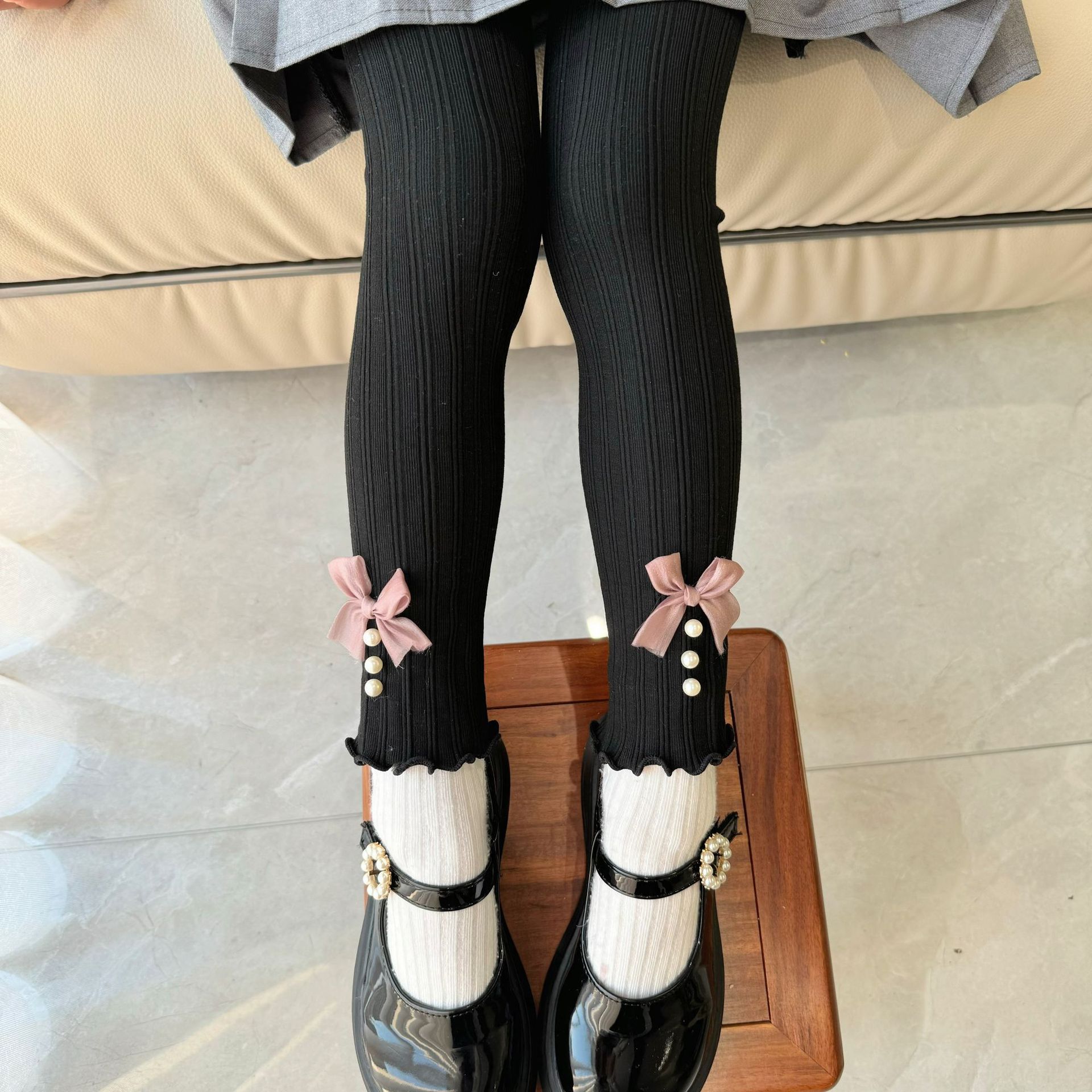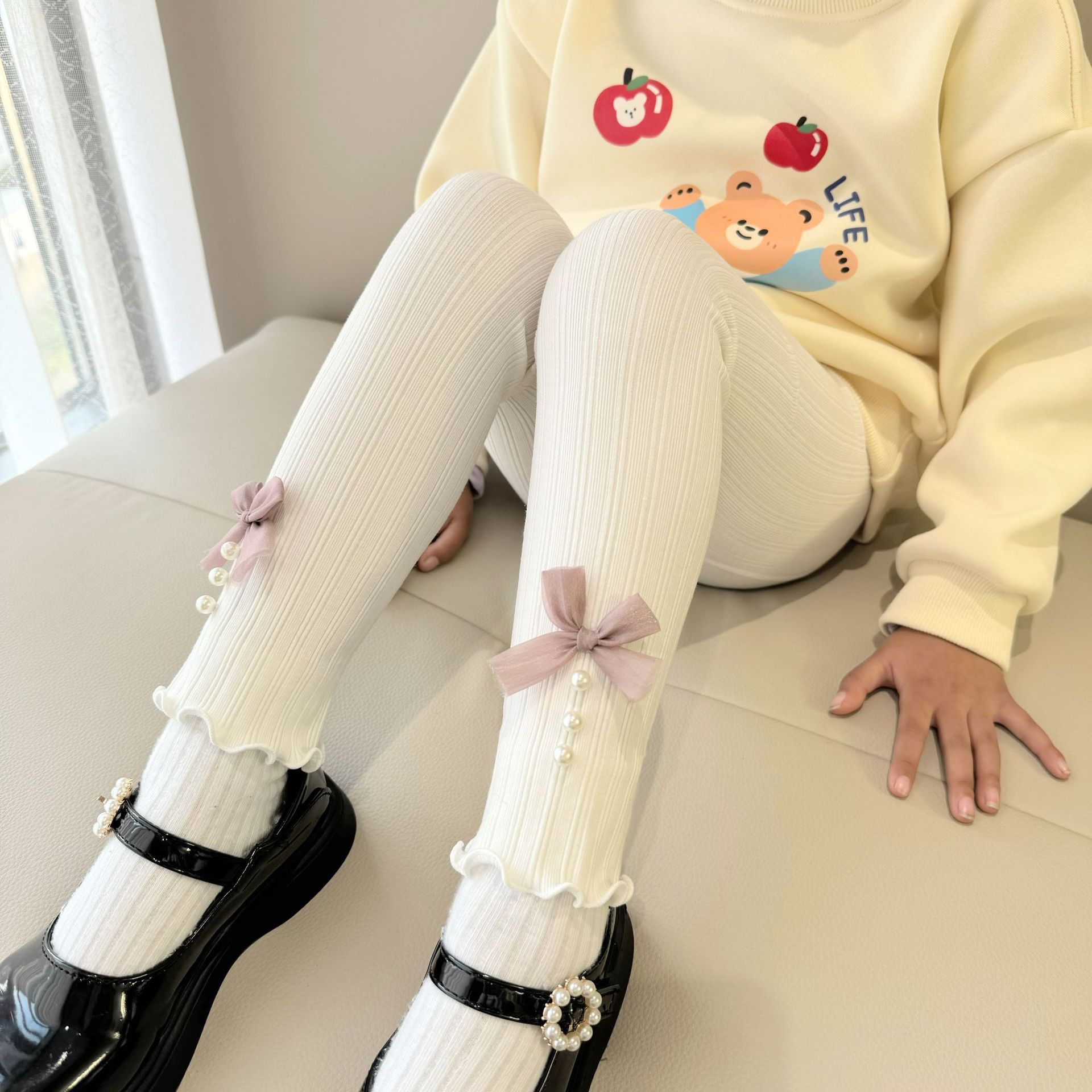 소녀 봄과 가을 레깅스 겉옷 2024 새로운 아기 소녀 어린이 바지 어린이 바지 진주 활스토어 가기