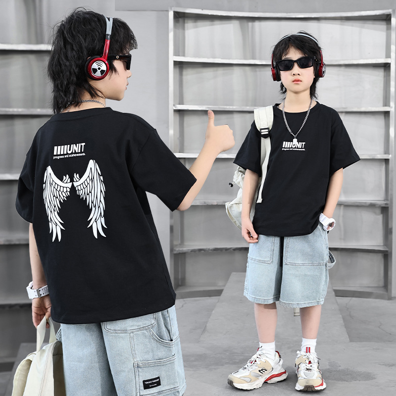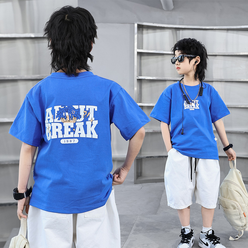 2024 여름 어린이 면화 티셔츠 소년 반팔 티셔츠 아기 만화 한국어 버전 Bottoming Tops 아동 의류 통기성