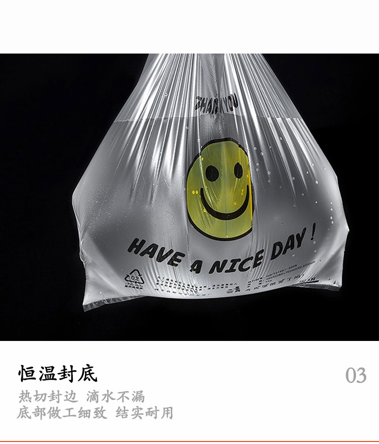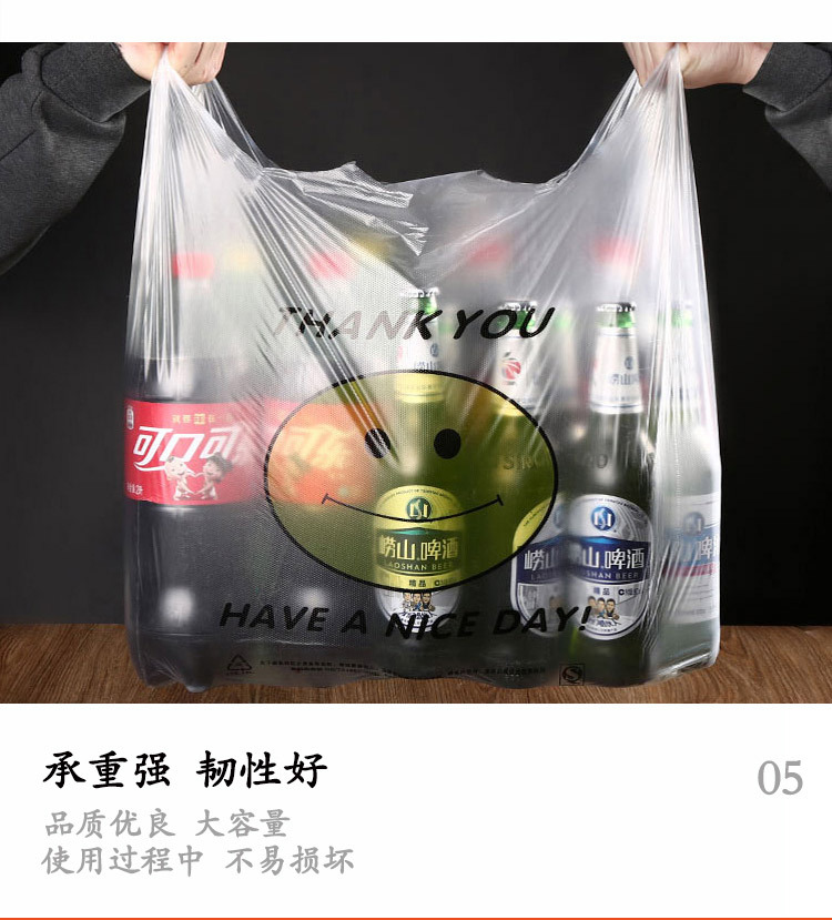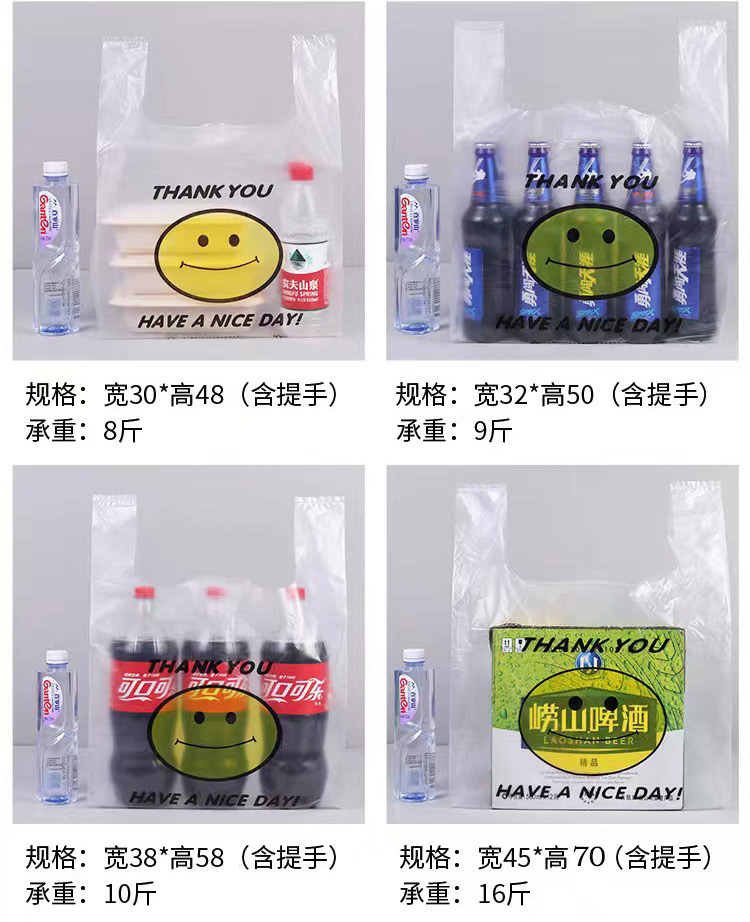 스마일 포장 비닐봉투 식품봉투 휴대용 편리한 가방 일회용 투명 조끼형 가방 흰색 투명 가방 도매