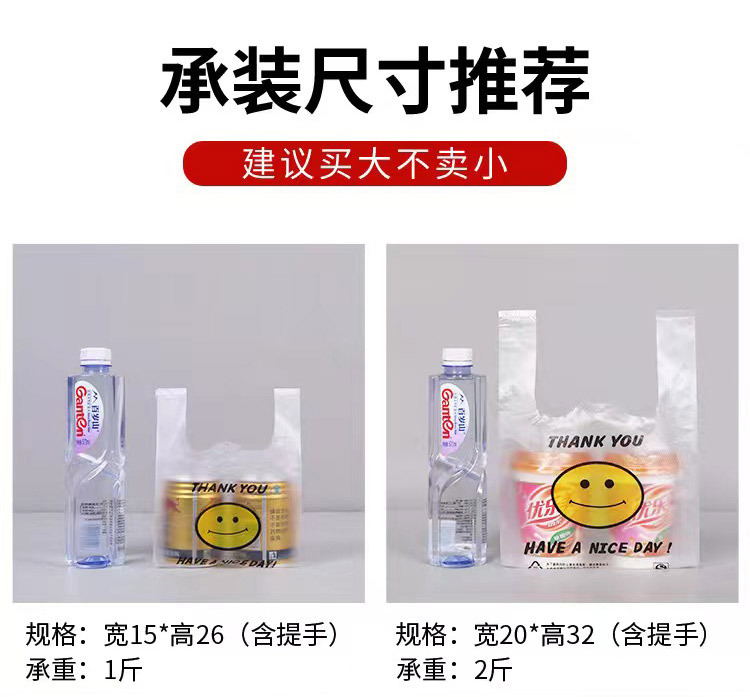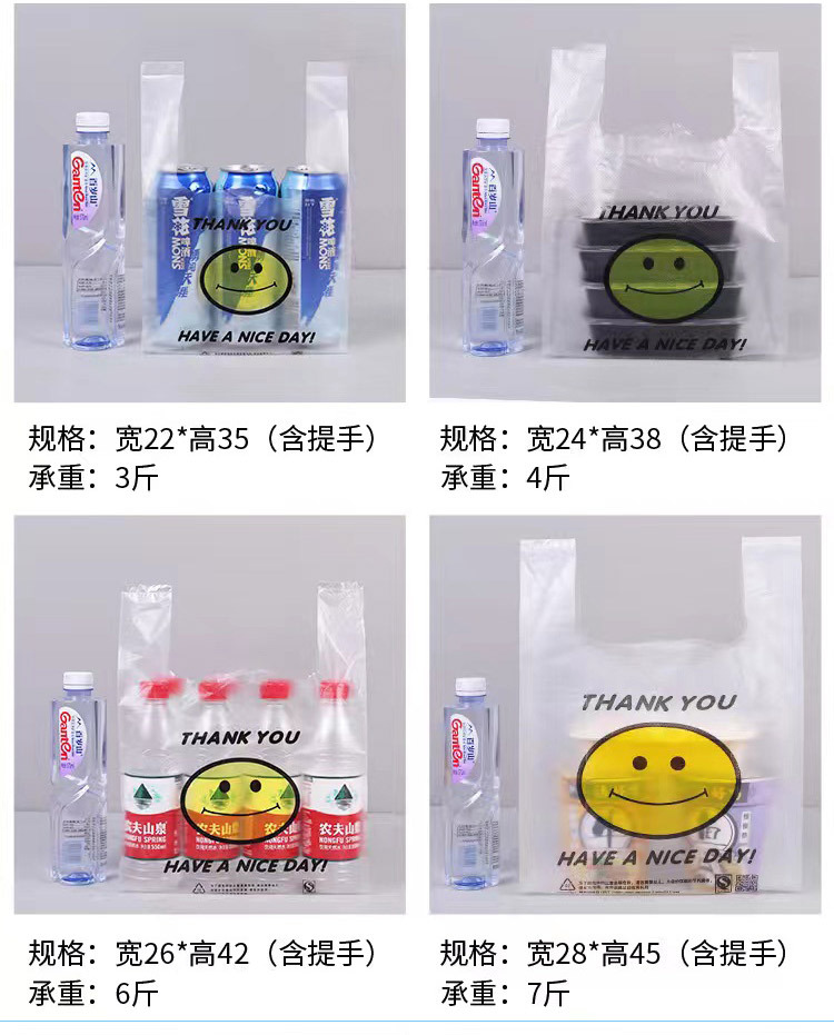 스마일 포장 비닐봉투 식품봉투 휴대용 편리한 가방 일회용 투명 조끼형 가방 흰색 투명 가방 도매스토어 가기