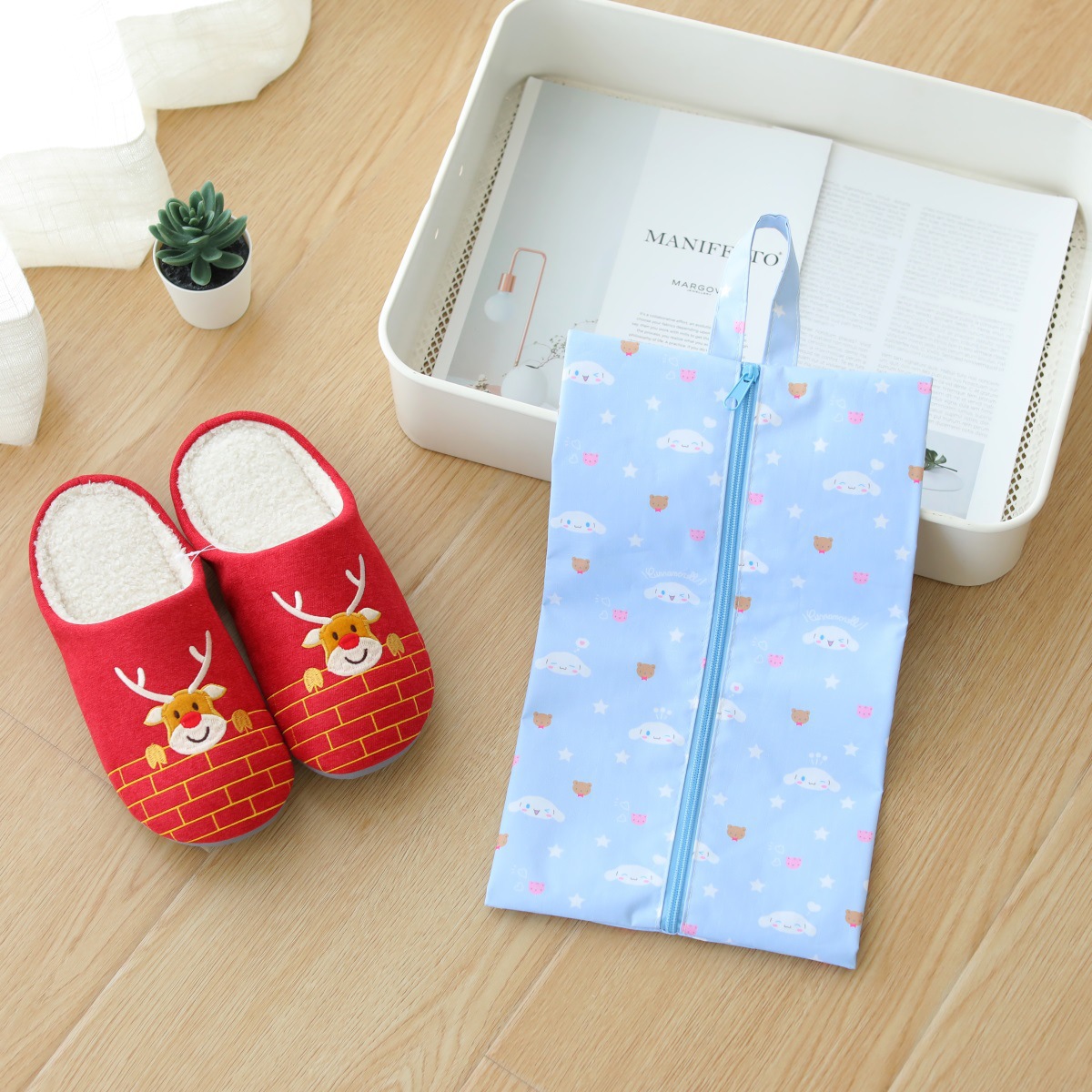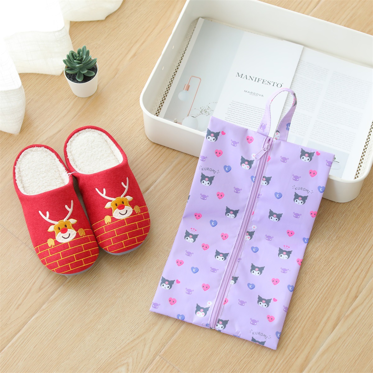 일본 만화 신발 가방 옥스포드 천 휴대용 어린이 여행 신발 보관 가방 Kulomi 지퍼 보관 가방스토어 가기