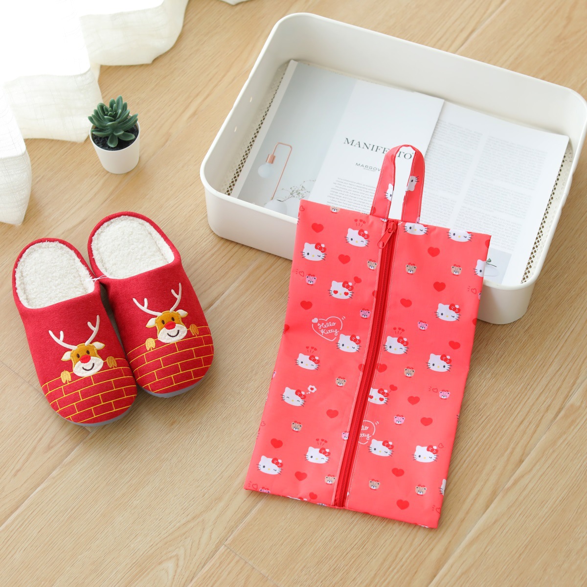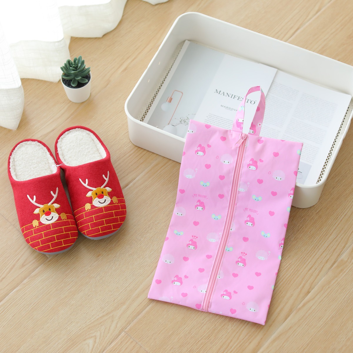 일본 만화 신발 가방 옥스포드 천 휴대용 어린이 여행 신발 보관 가방 Kulomi 지퍼 보관 가방