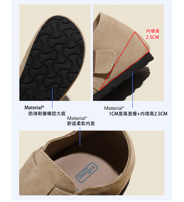 Source 재고 Sanxi Same Style Retro 정품 가죽 풀 백 Birkenberg 신발 두꺼운 솔 소프트 솔 버켄 베르크 싱글 레이어 신발 높이 증가 여성 신발