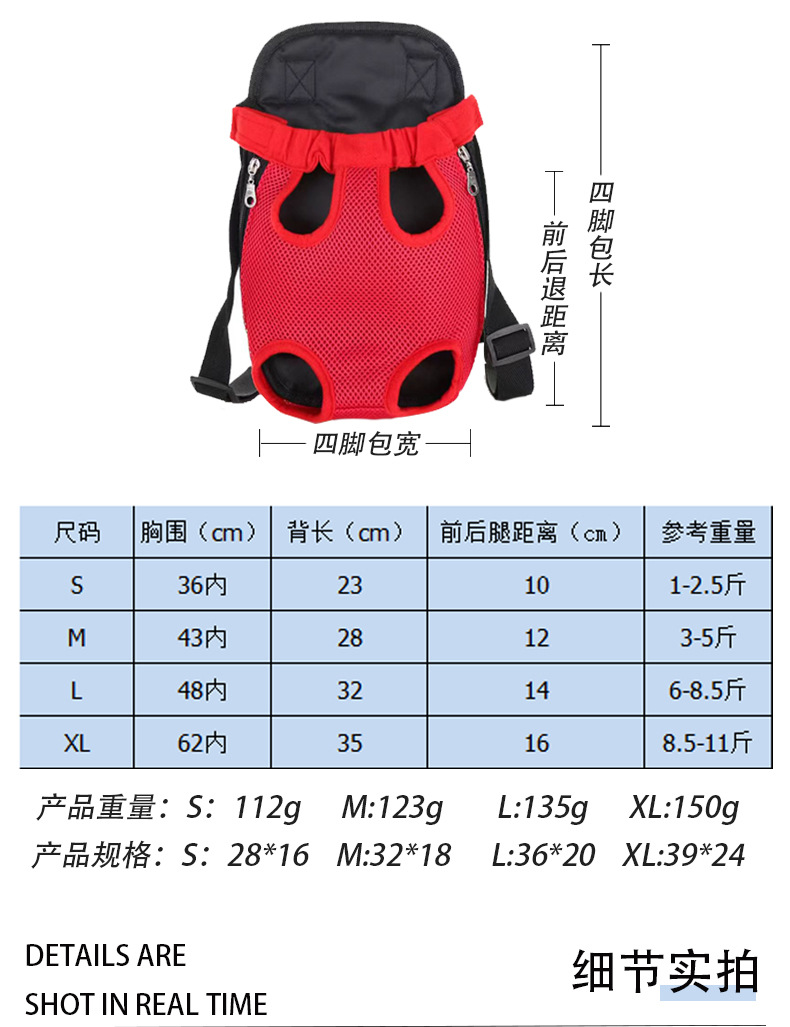 애완동물 가슴가방, 강아지 외출용 휴대용 배낭, 통기성 메쉬 소재, 고양이와 강아지 모두 사용 가능한 네발 가방, 통기성 좋고 가벼움