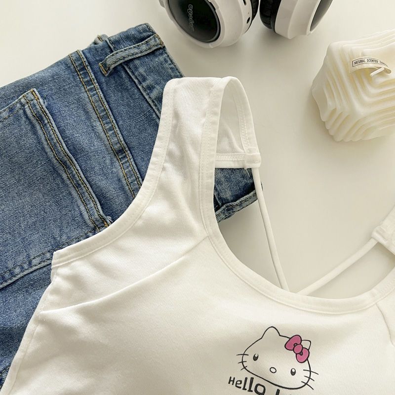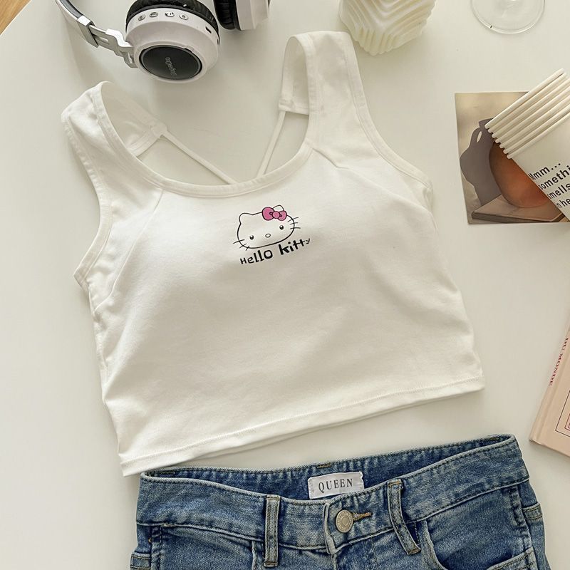 새로운 헬로 키티 오리지널 올 매치 크로스 뷰티 카미 솔 여성용 슬림 핏 핫 걸탑 가슴 패드스토어 가기