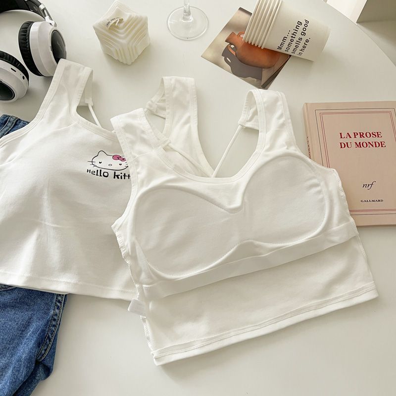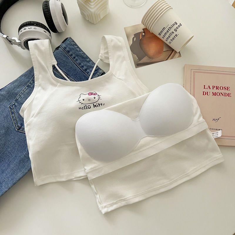 새로운 헬로 키티 오리지널 올 매치 크로스 뷰티 카미 솔 여성용 슬림 핏 핫 걸탑 가슴 패드