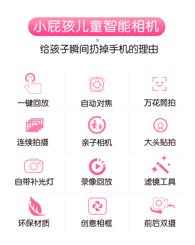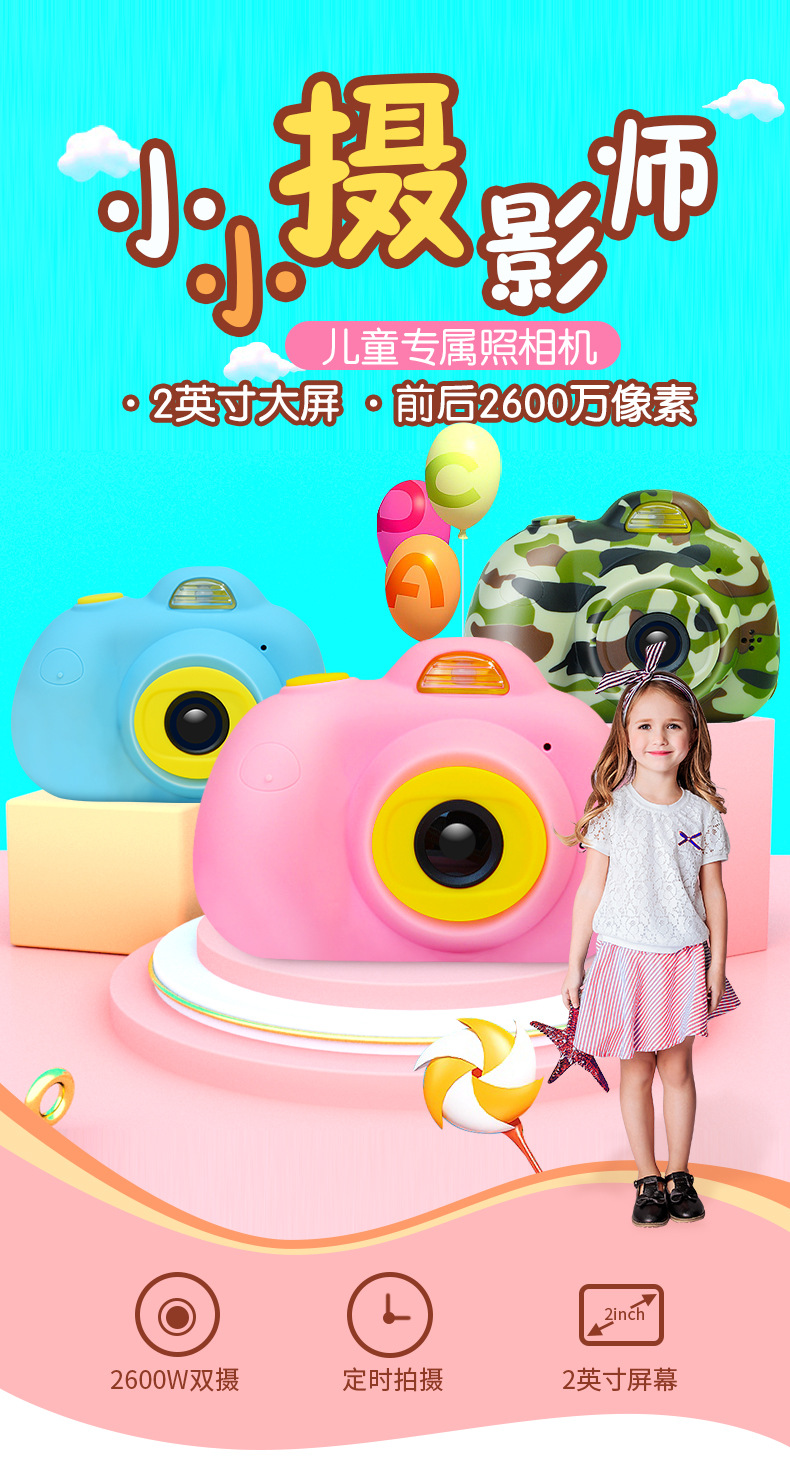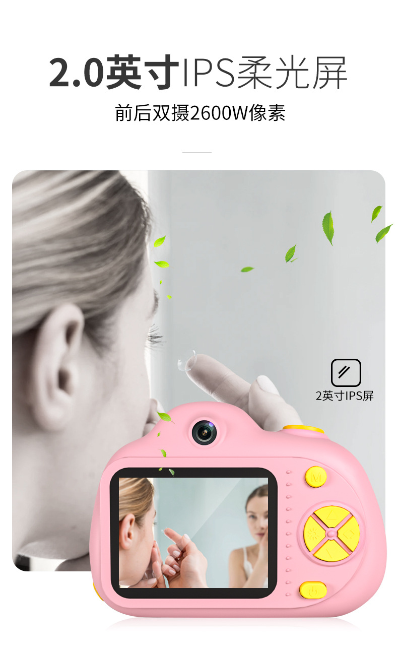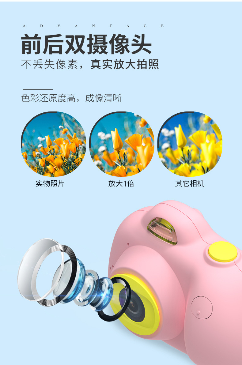 儿童数码相机前后双摄高清生日玩具充电拍照儿童迷你益智玩具相机