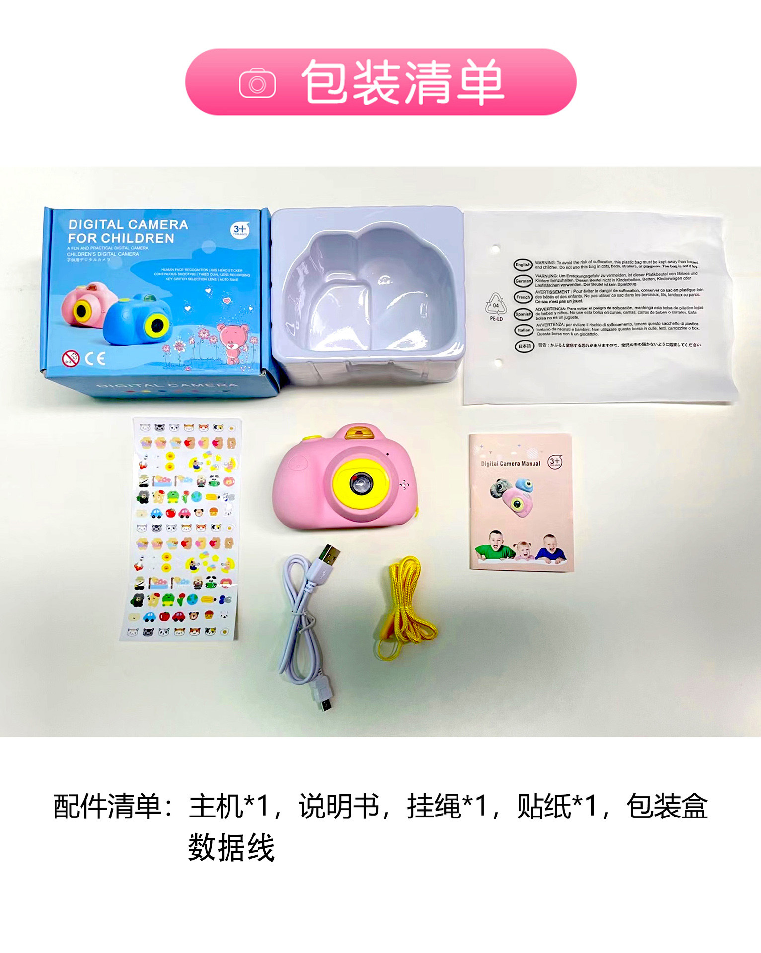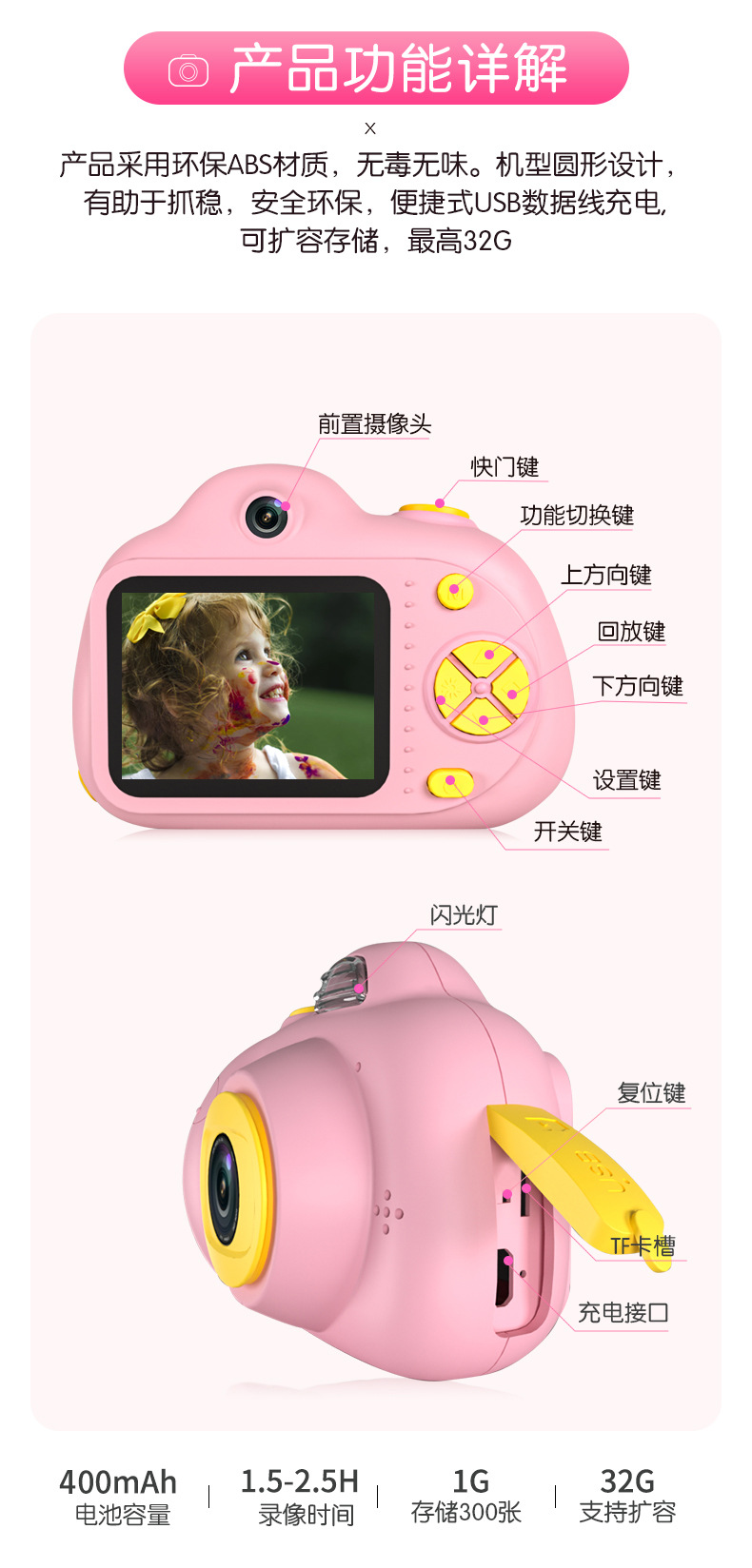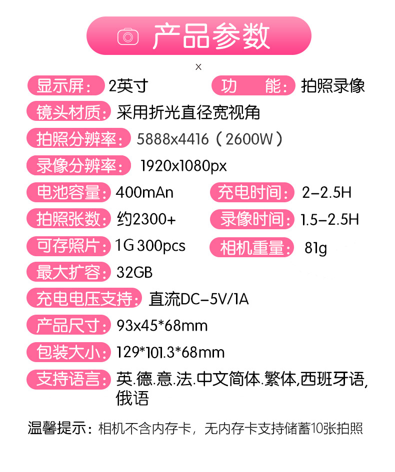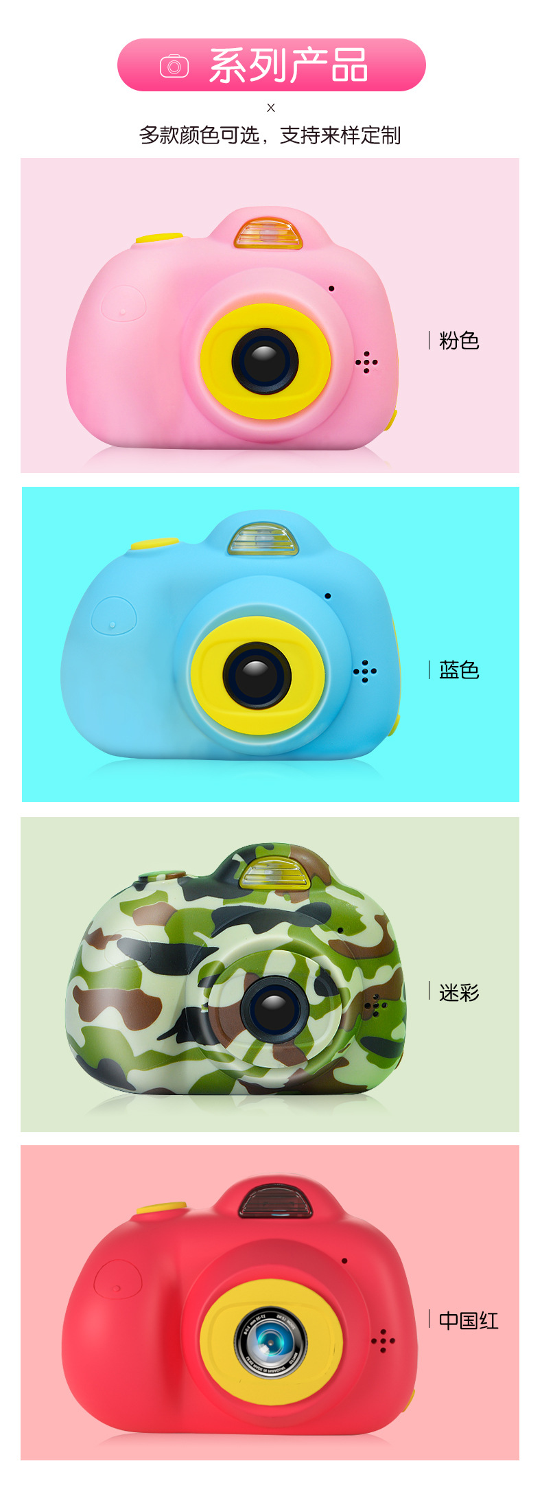 儿童数码相机前后双摄高清生日玩具充电拍照儿童迷你益智玩具相机