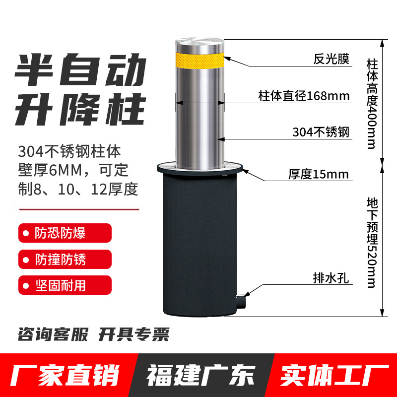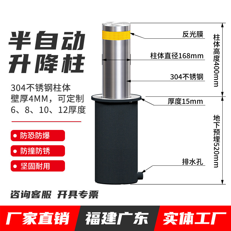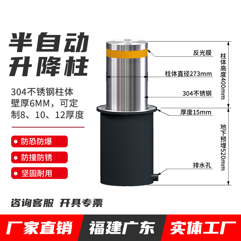 반자동 유압 리프팅 기둥, 수동 개폐식 지상 기둥, 학교 주차장 차량 차단기, 스테인레스 스틸 충돌 방지 장벽