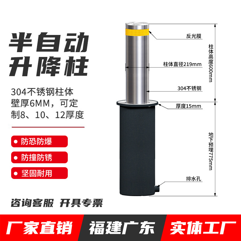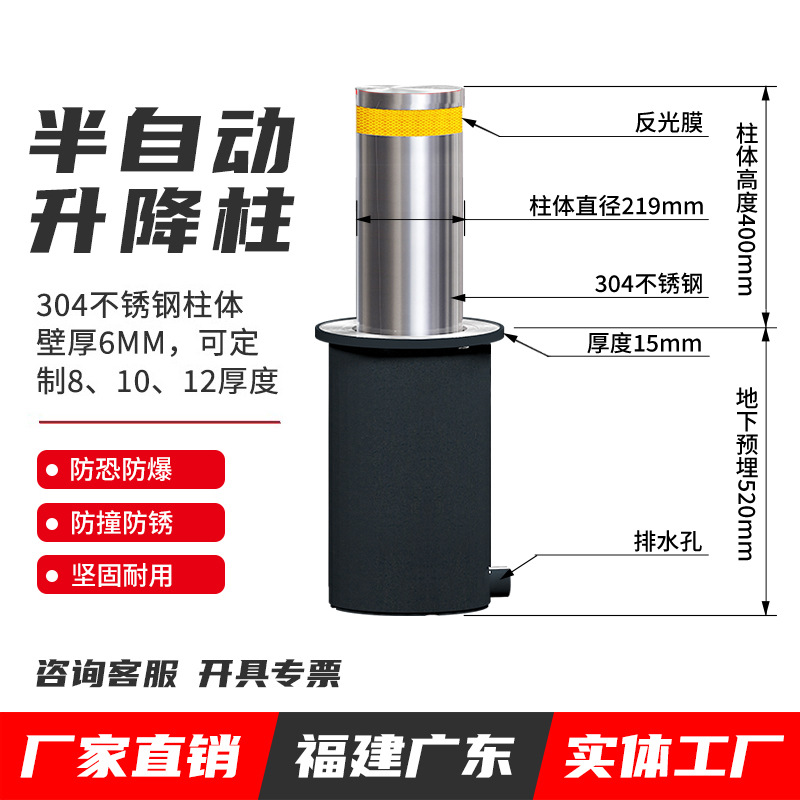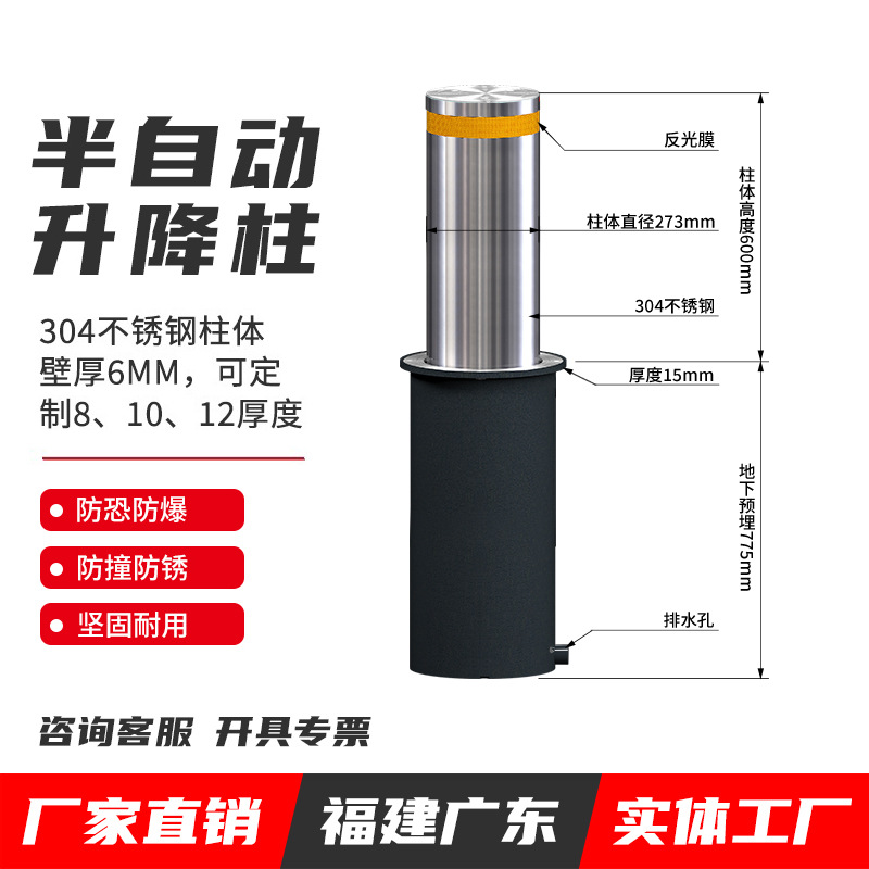 반자동 유압 리프팅 기둥, 수동 개폐식 지상 기둥, 학교 주차장 차량 차단기, 스테인레스 스틸 충돌 방지 장벽스토어 가기