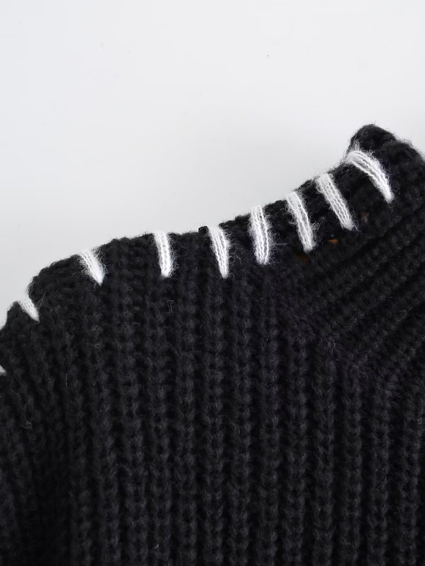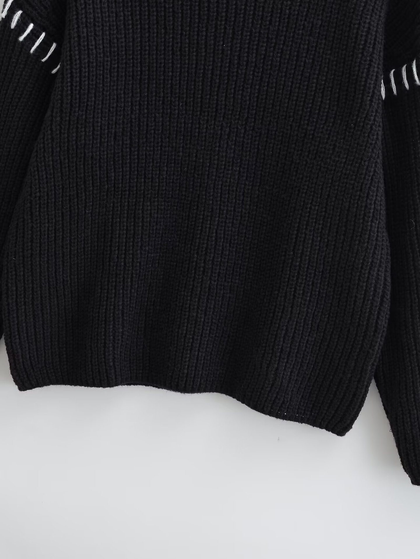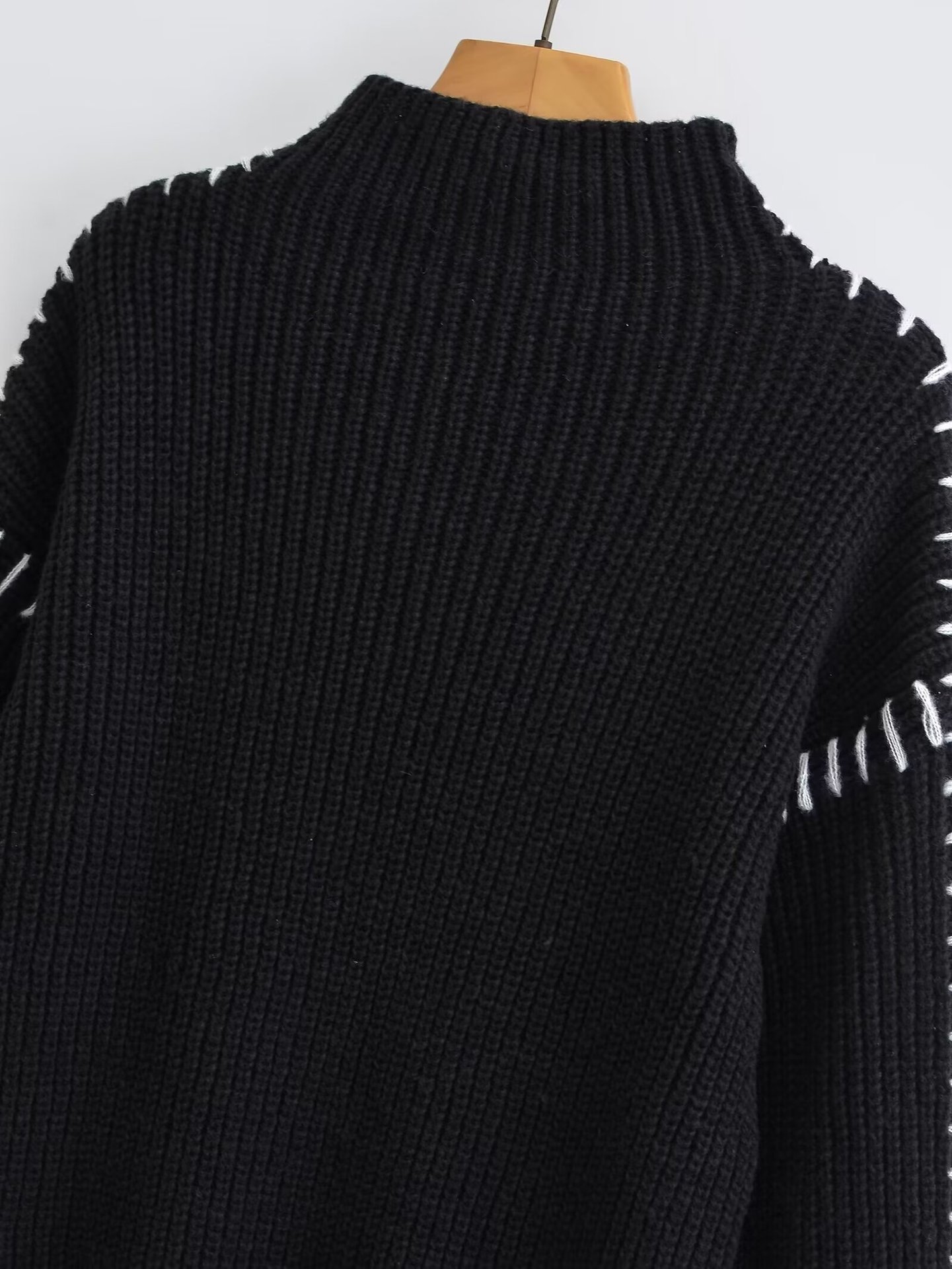 유럽 및 미국 여성 의류 도매, 여성용 라운드넥 풀오버, 배색 스티치 디자인, 캐주얼 니트웨어, 패셔너블하고 다재다능함스토어 가기