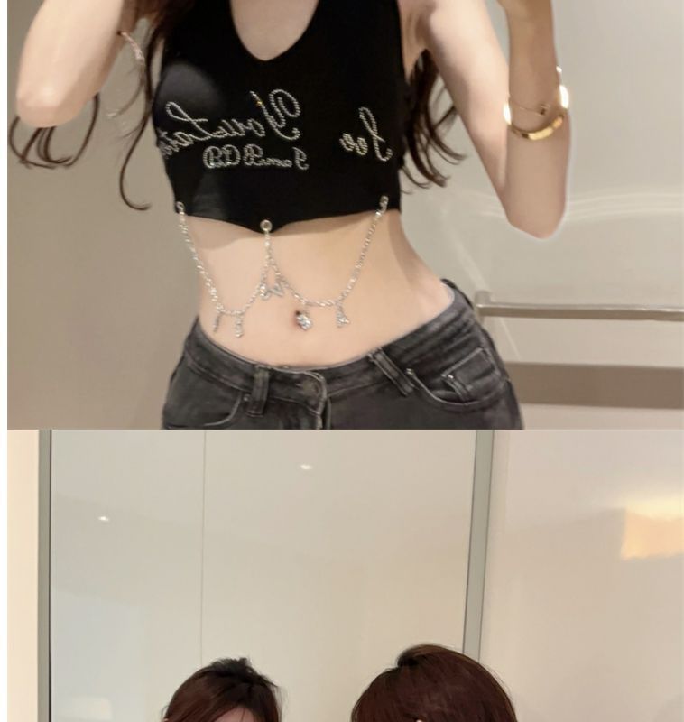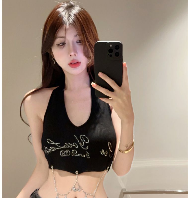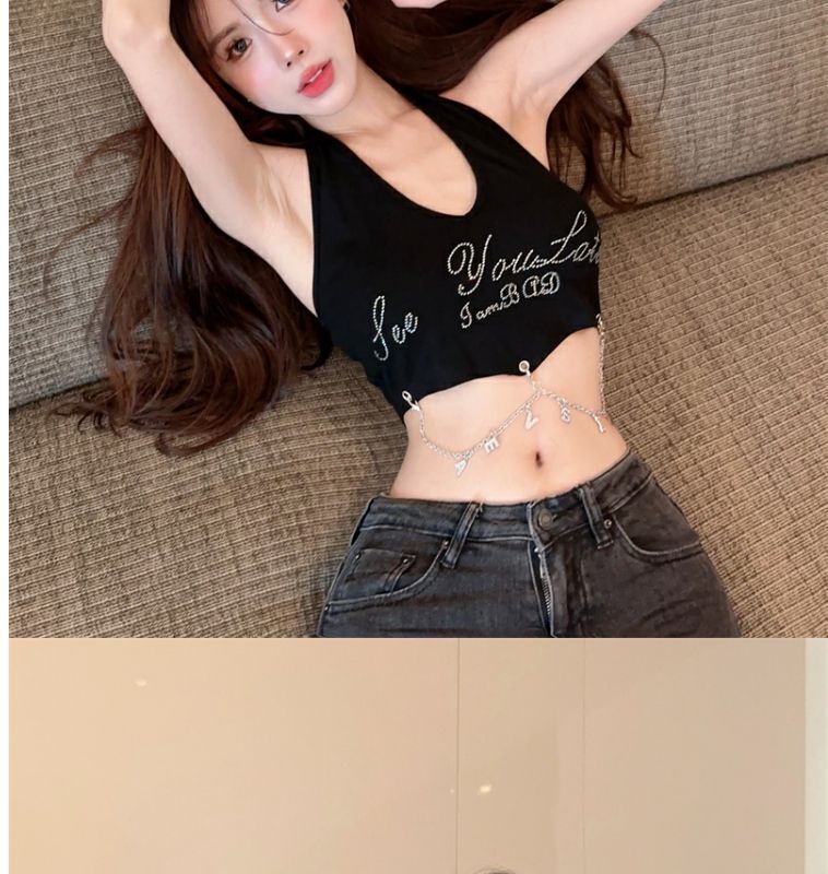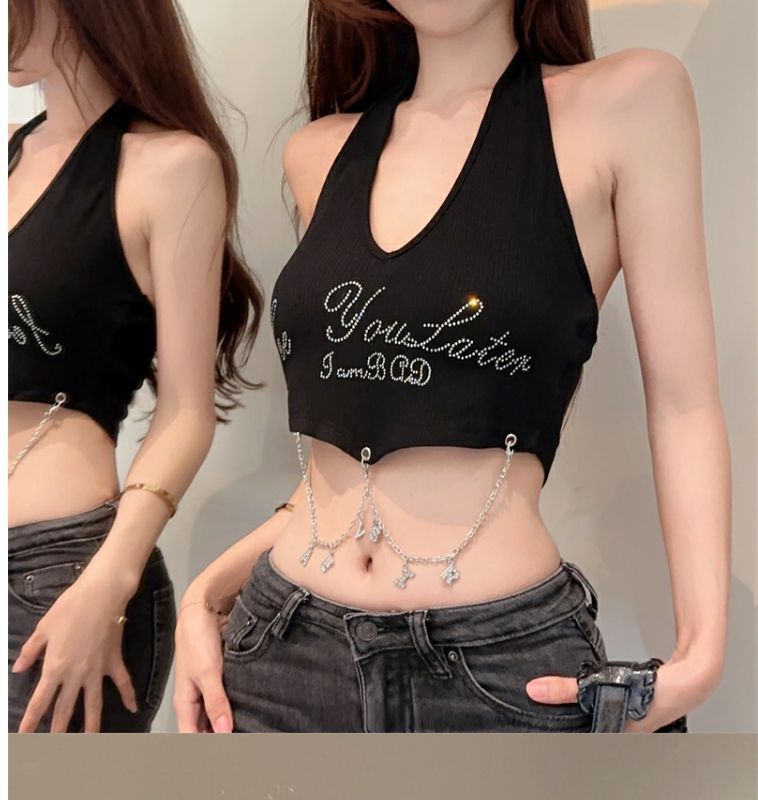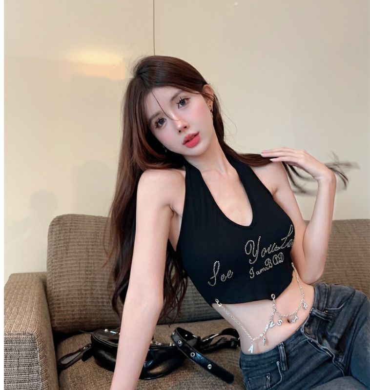 달콤하고 매운 편지 고삐 조끼 작은 캐미솔 여성의 여름 타이트한 슬리밍 내부 등이없는 민소매 짧은 상단 겉옷