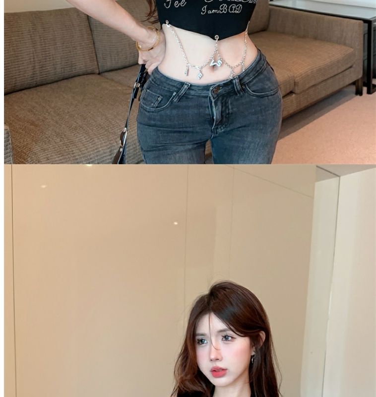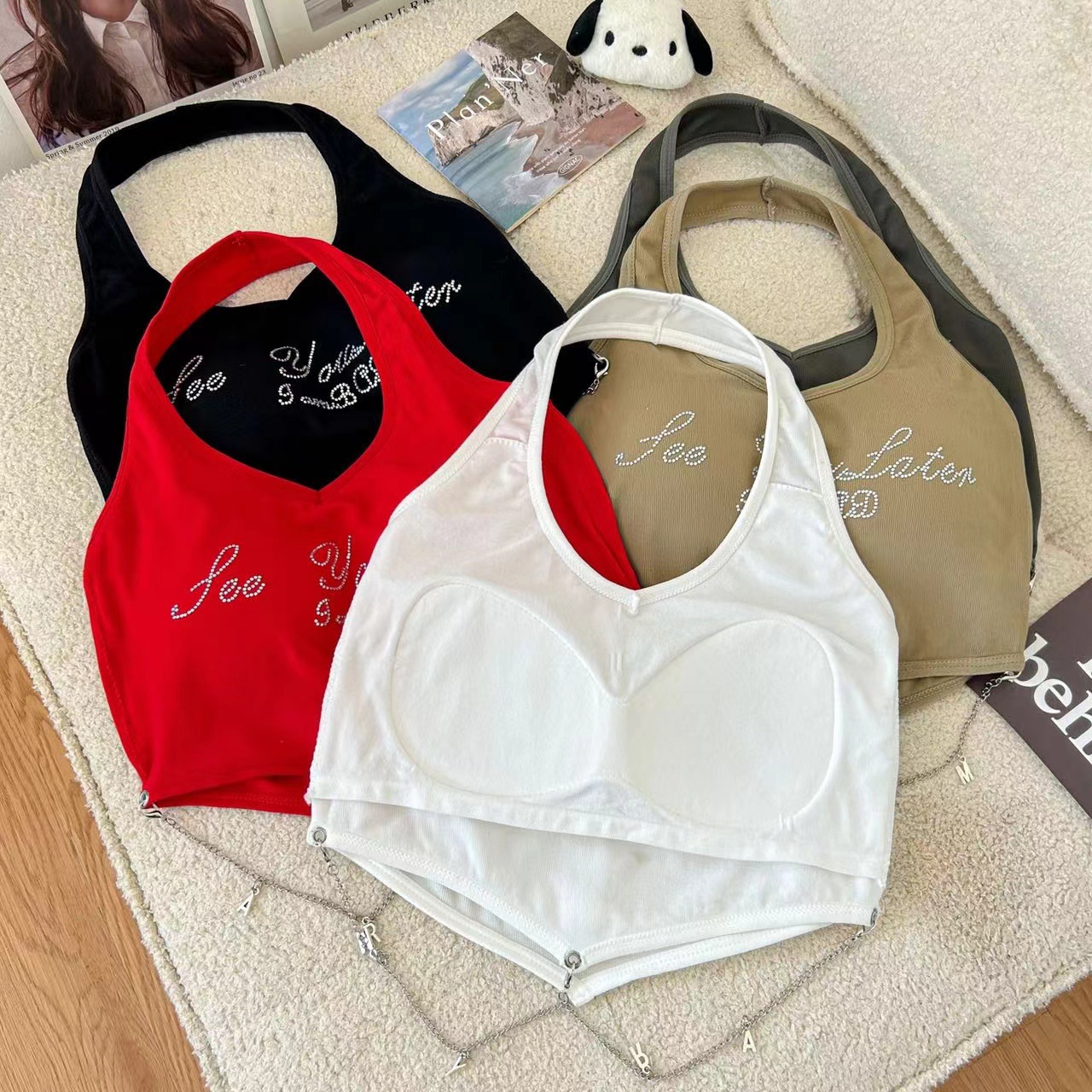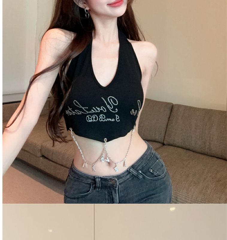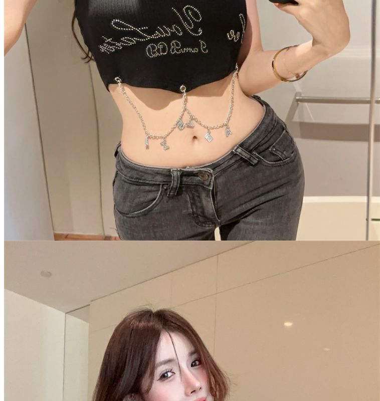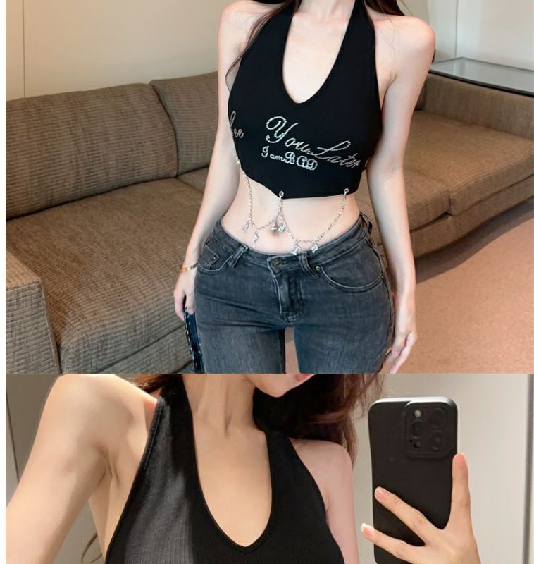 달콤하고 매운 편지 고삐 조끼 작은 캐미솔 여성의 여름 타이트한 슬리밍 내부 등이없는 민소매 짧은 상단 겉옷