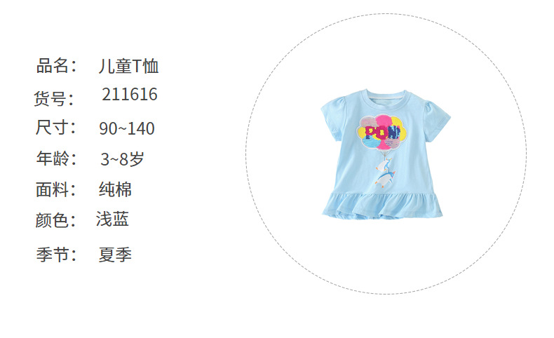 여자 순수 면화 반팔 여름 반팔 티셔츠 유럽과 미국 스타일의 어린이상의 여자 반팔상의 어린이