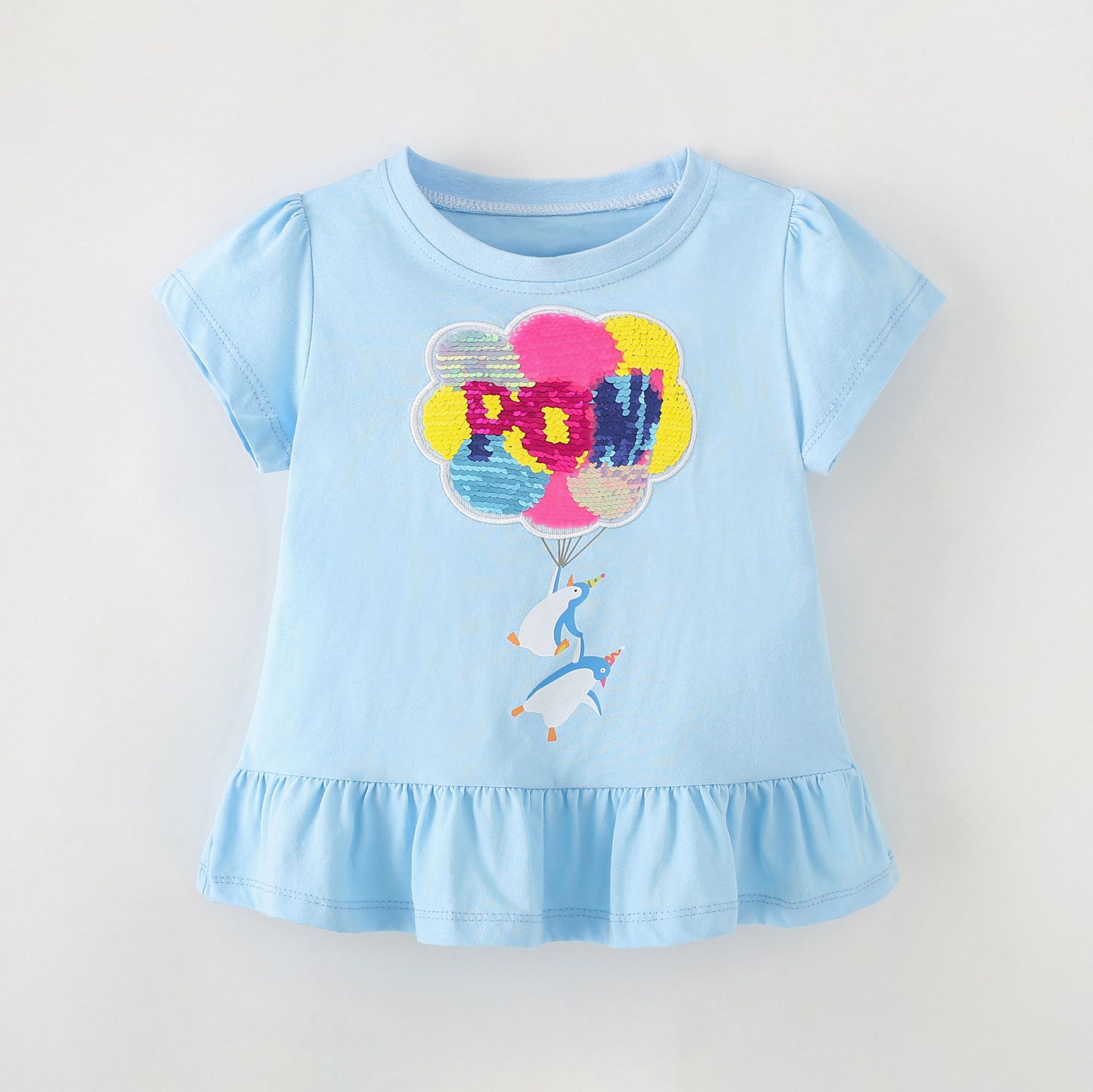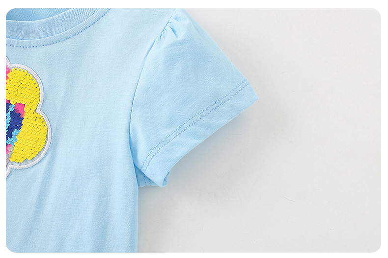 여자 순수 면화 반팔 여름 반팔 티셔츠 유럽과 미국 스타일의 어린이상의 여자 반팔상의 어린이스토어 가기