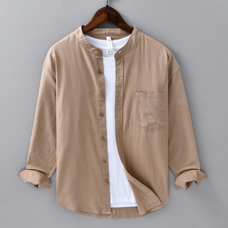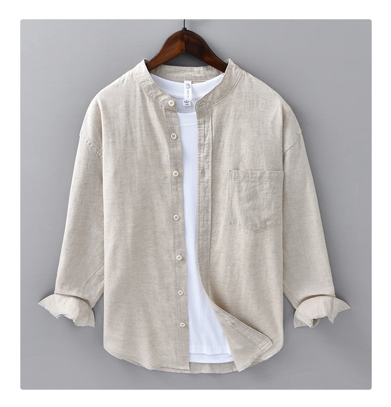 봄과 여름 린넨 긴팔 셔츠 남성용 캐주얼 올 매치 스탠드 칼라면과 린넨 셔츠 예술적 남성 중국 스타일 탑 202스토어 가기