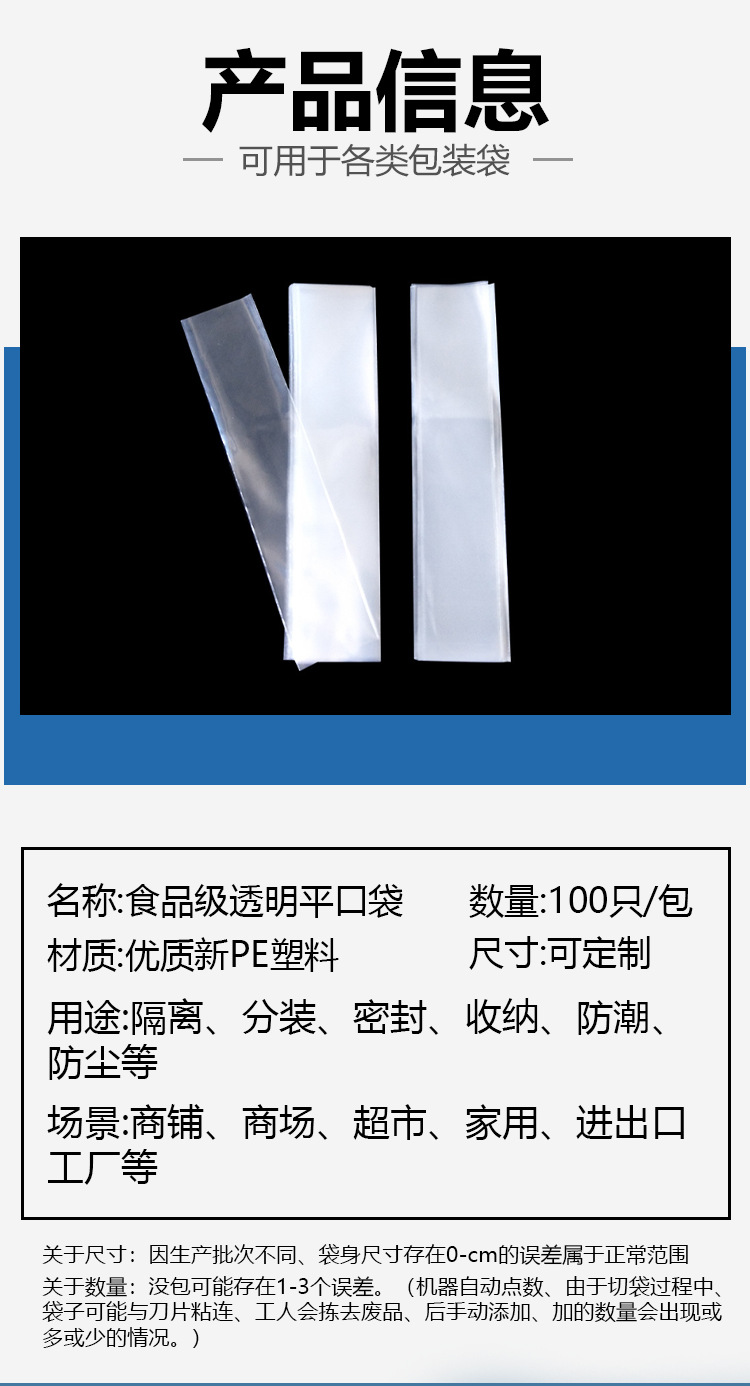 맞춤형 긴 PE 플랫 포켓 방수 고압 투명 인쇄 플라스틱 포장 가방 스트레이트 슬림 비닐 봉투