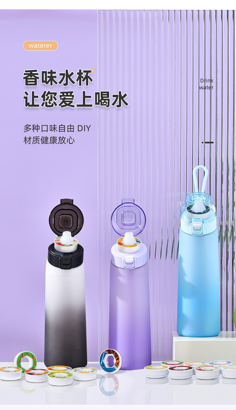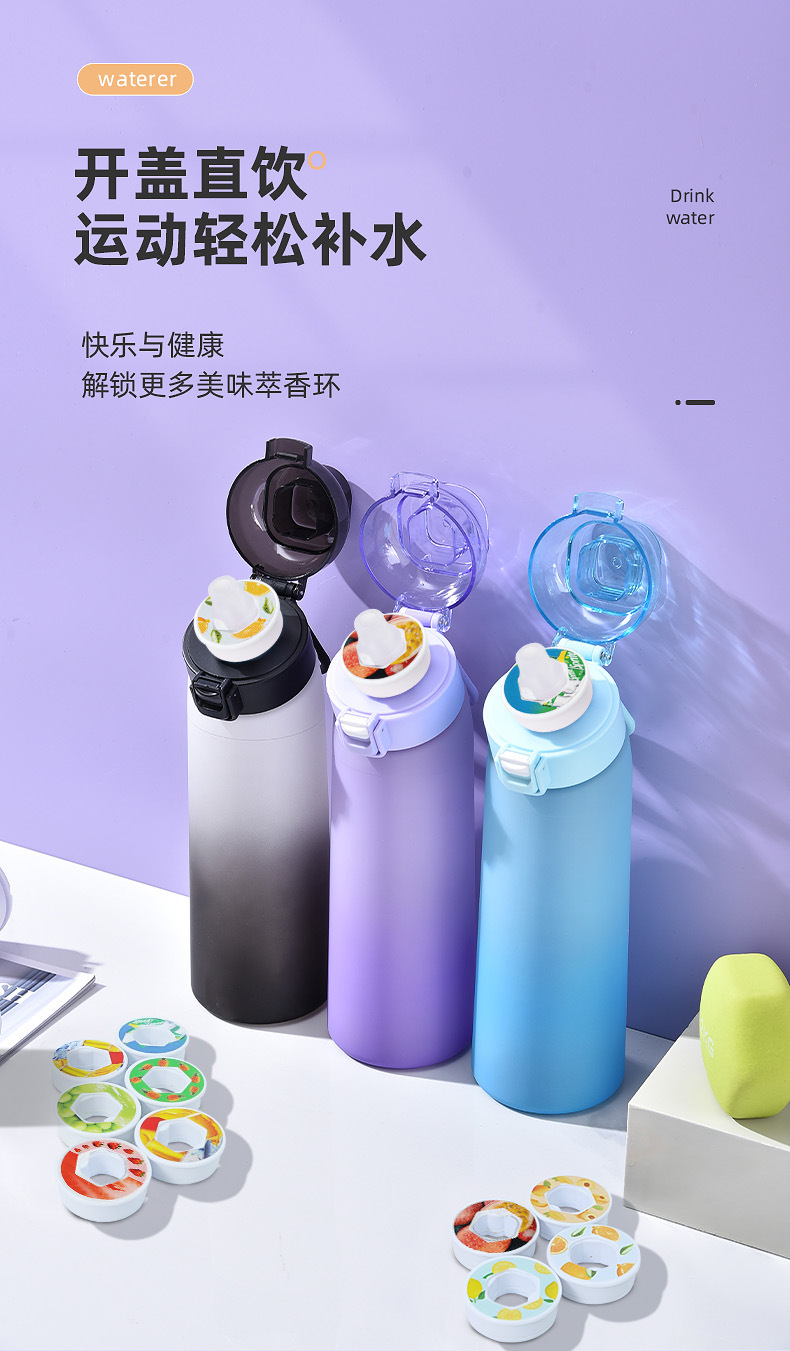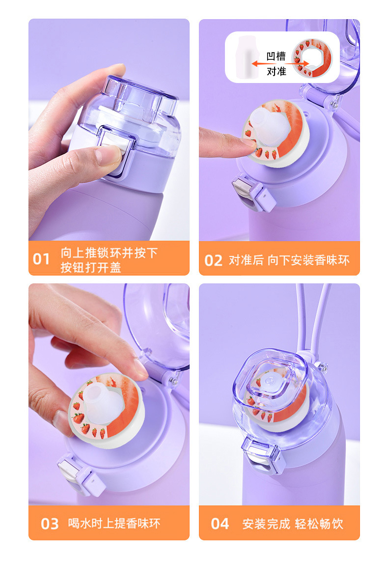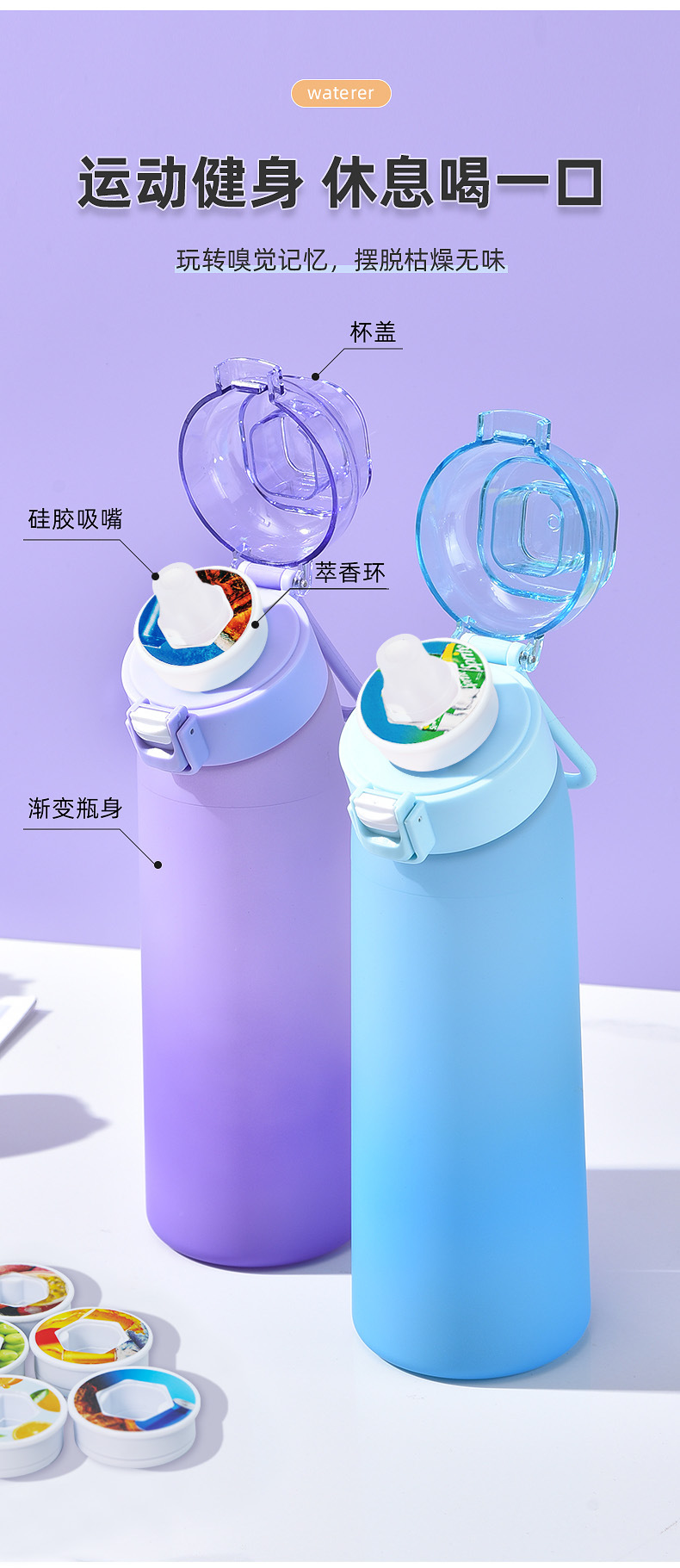 향기나는 컵, 인기 급상승 중인 재미있고 창의적인 물컵, 트라이탄 소재, 여학생들을 위한 예쁜 디자인, 학생용 스포츠 컵, 빨대와 손잡이 포함, 그라데이션 색상