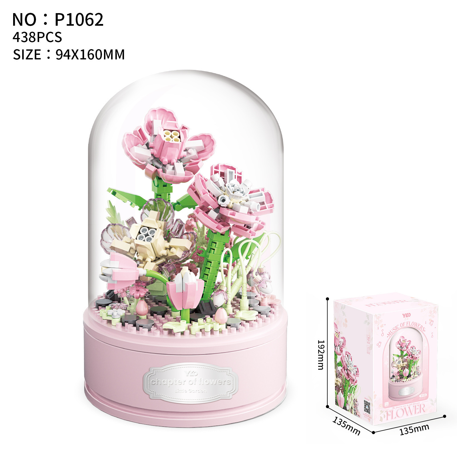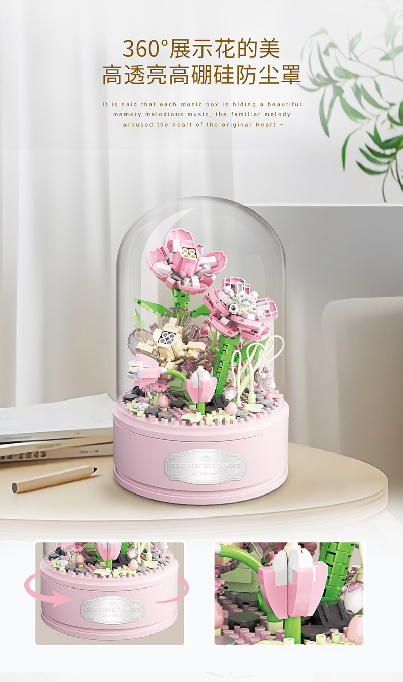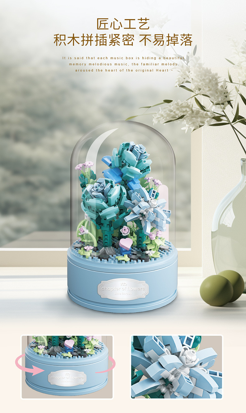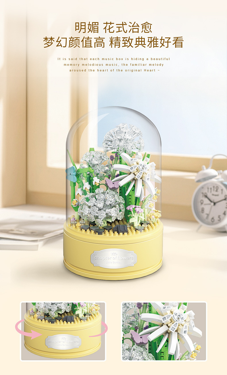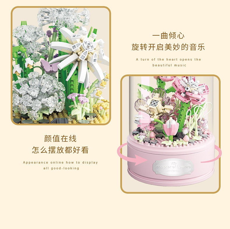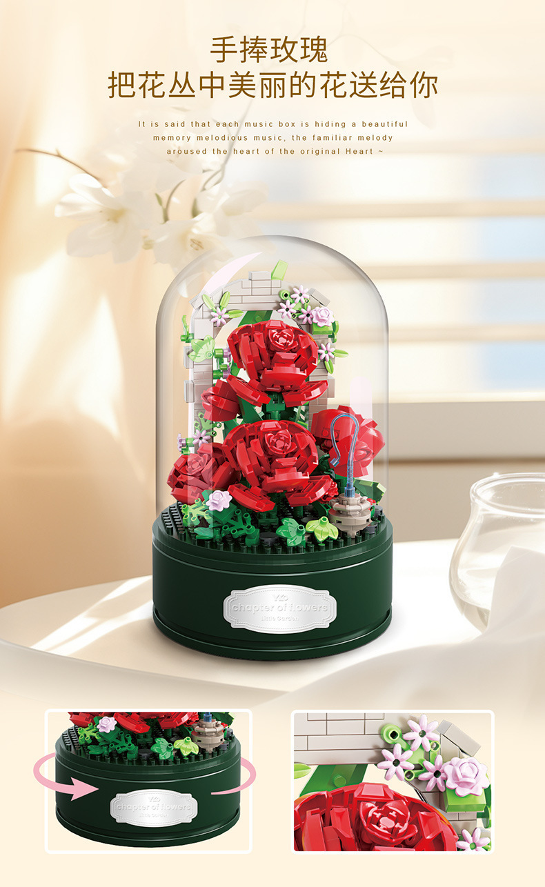 유가오 P1060-1065 꽃 음악 상자 시리즈 마이크로 입자 영원한 빌딩 블록 꽃 장난감 데스크탑 장식 도매스토어 가기