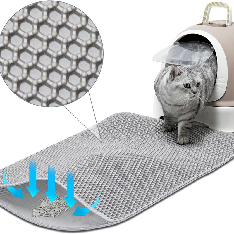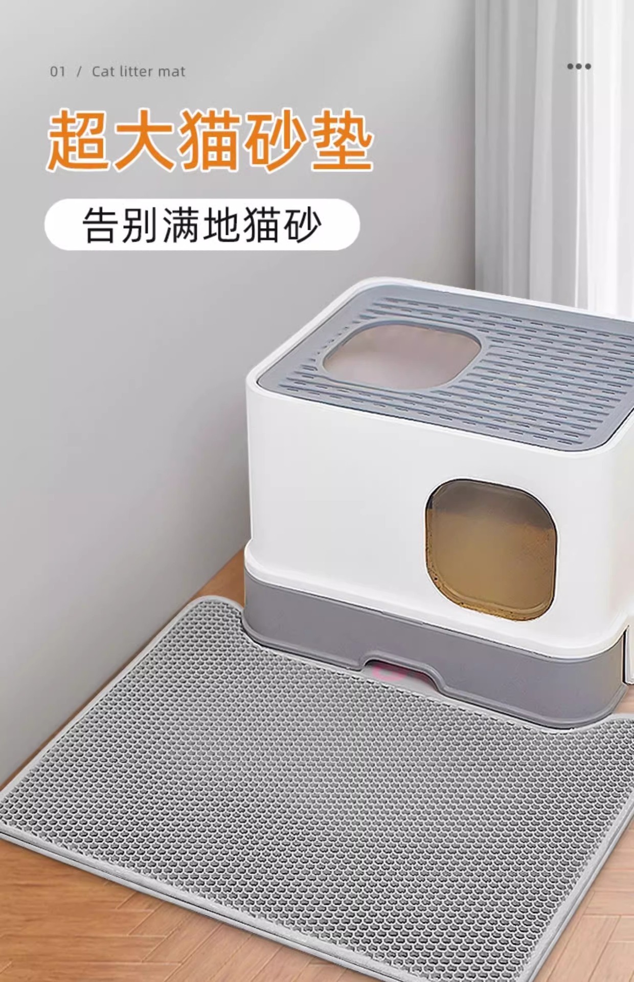 공장 도매 더블 레이어 eva 고양이 모래 매트 방수 미끄럼 방지 중공 벌집 구멍 고양이 모래 상자 eva 모래 제어 매트