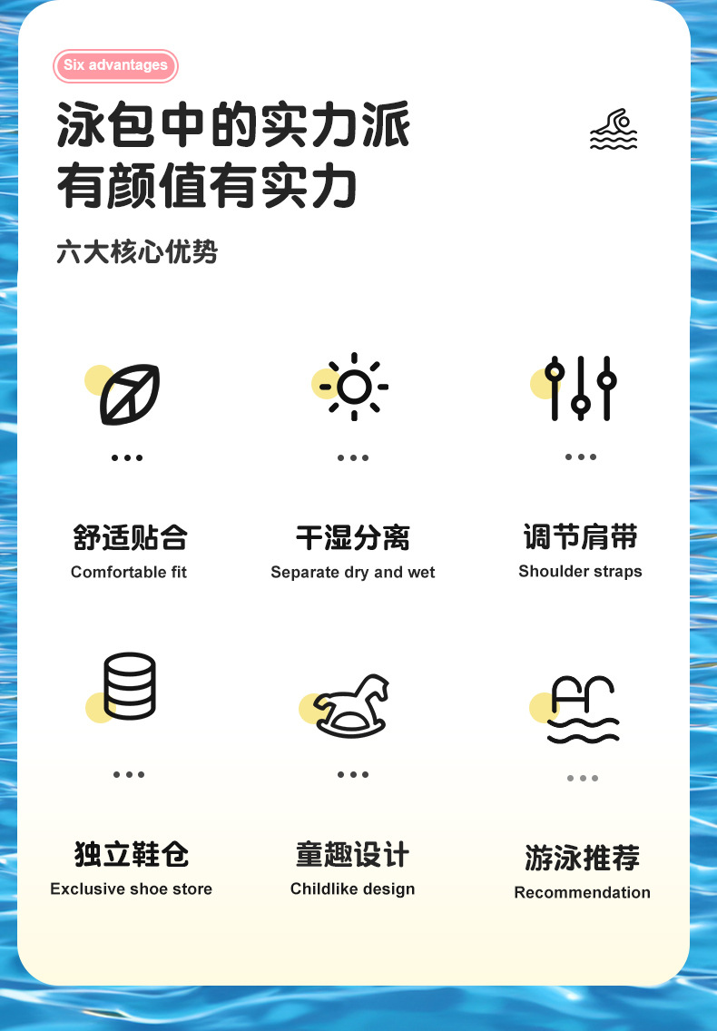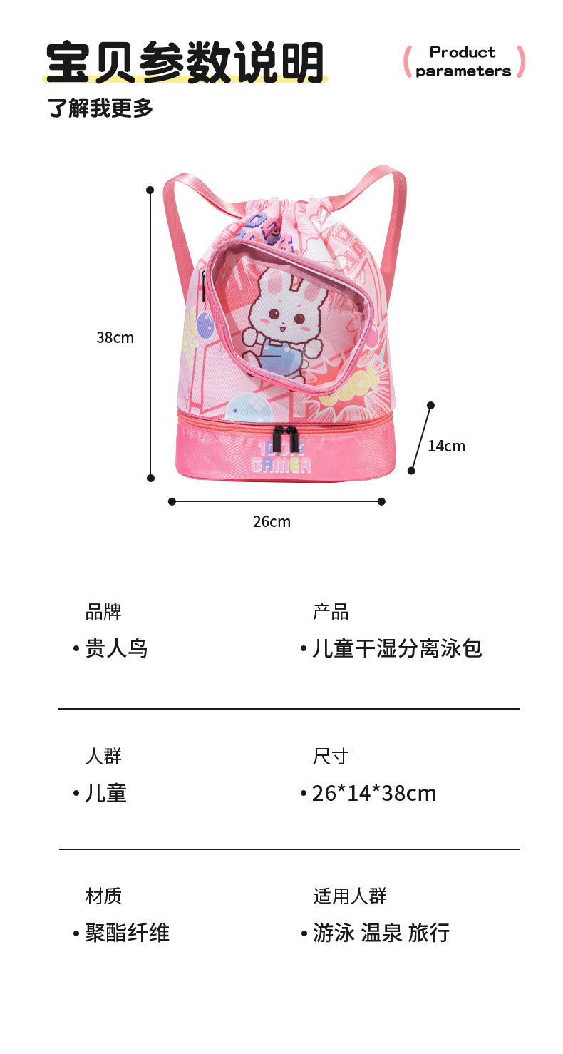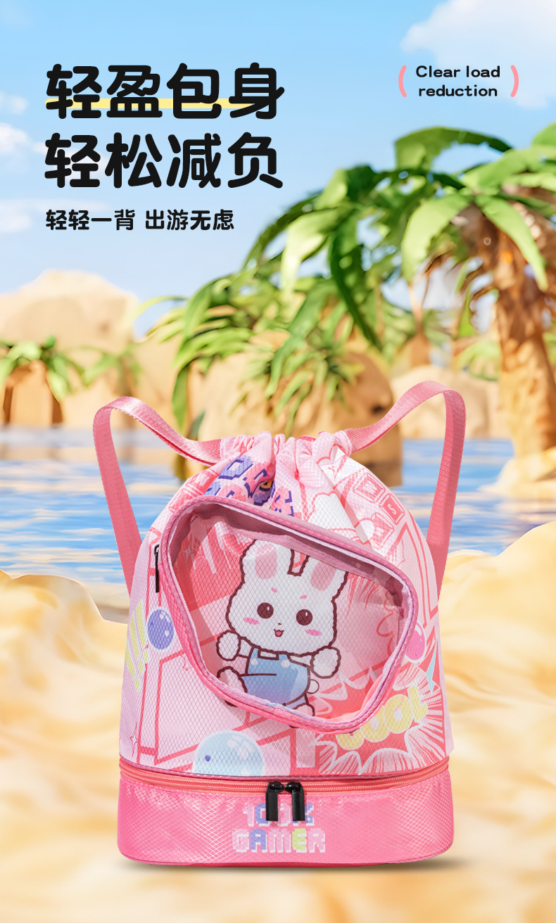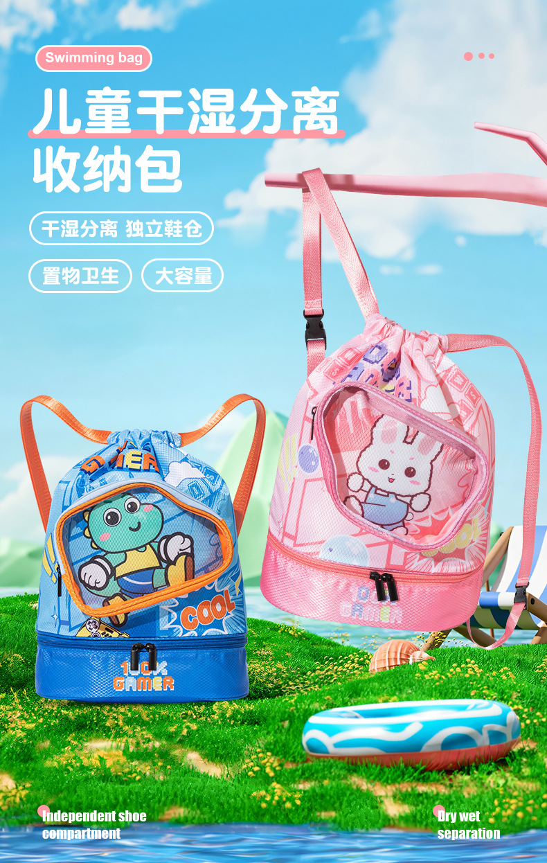 고귀한 새 어린이 수영 가방 건조하고 젖은 별도의 방수 보관 가방 소녀 휴대용 배낭 귀여운 만화 배낭