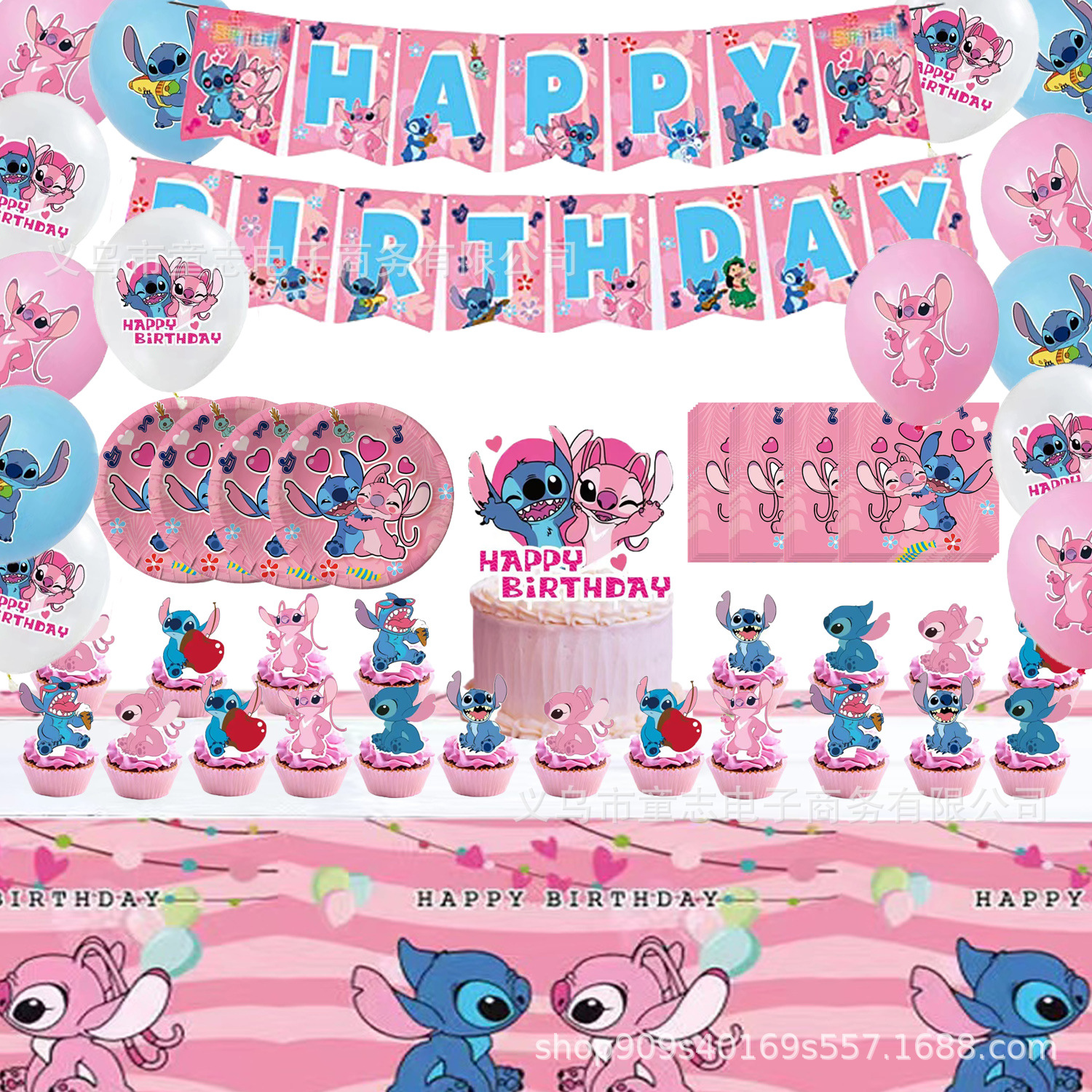 새로운 핑크 스티저 천사 생일 파티 식기 장식 종이 트레이 컵 조직 풍선 세트 배열 용품