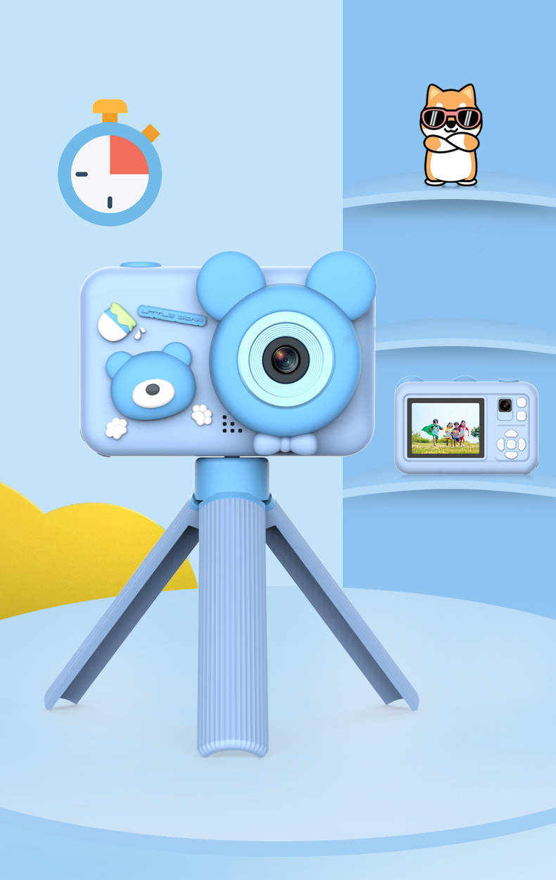 어린이 카메라 듀얼 카메라 장난감 카메라 보호 케이스 브래킷 미니 카메라 만화 장난감 생일 선물