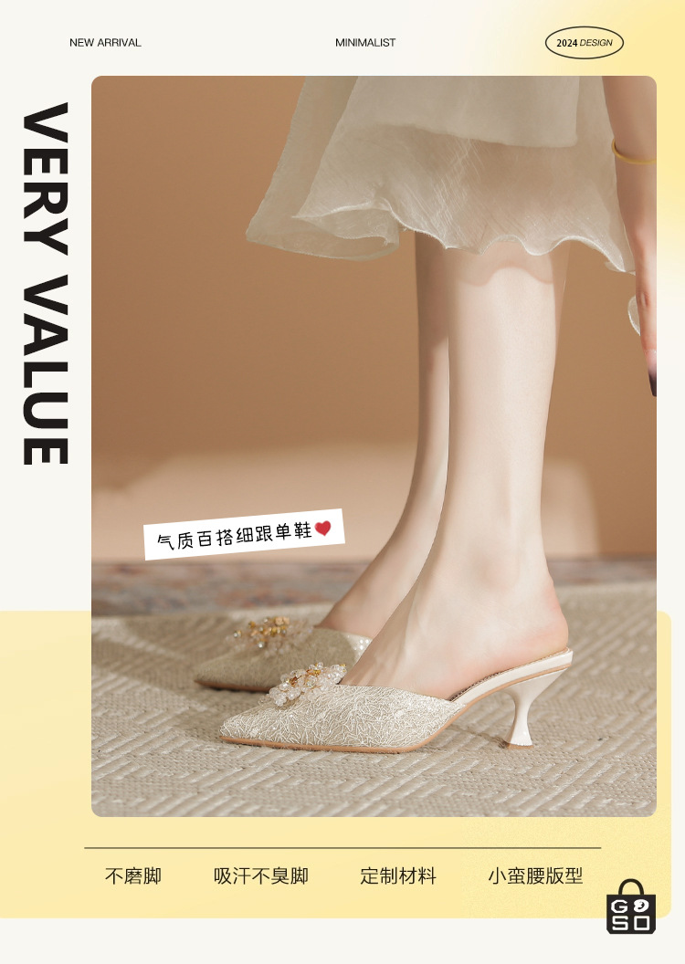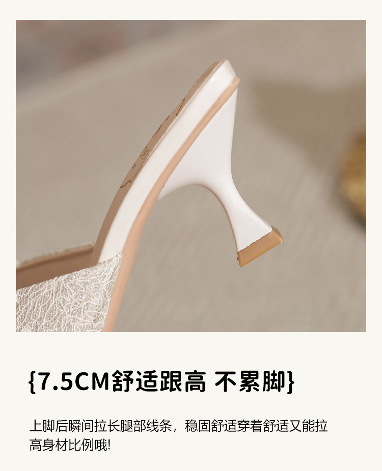하이힐 스틸레토 힐 고급 틈새 디자인 여성을위한 폐쇄 발가락 샌들 2024 봄 새로운 피곤하지 않은 발 단층 신발스토어 가기