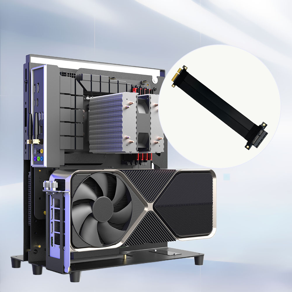 공장 직접 판매 180도 Pcie 4.0 x4 그래픽 카드 확장 어댑터는 X8 X16 골드 핑거 케이블에 연결할 수 있습니다.