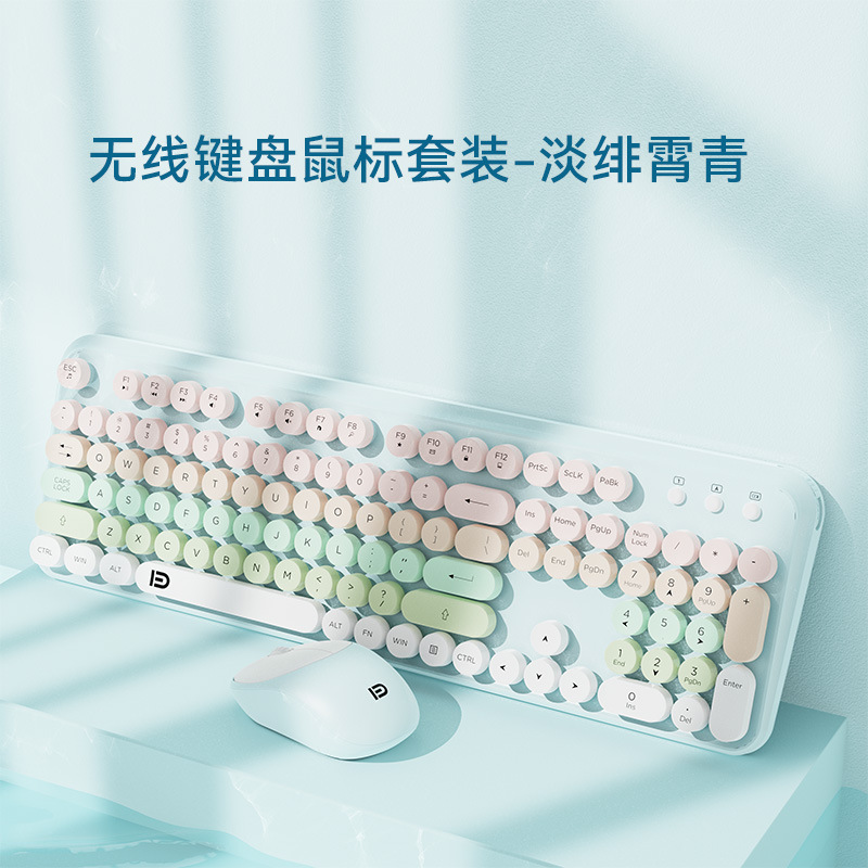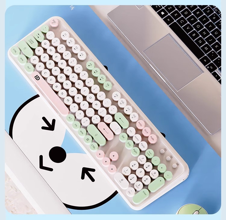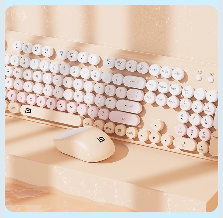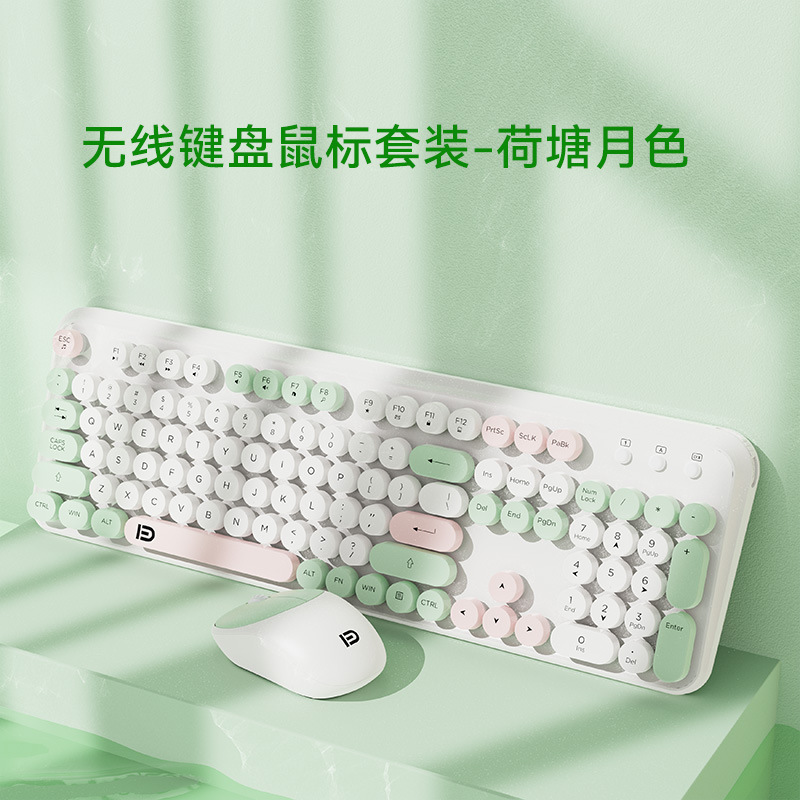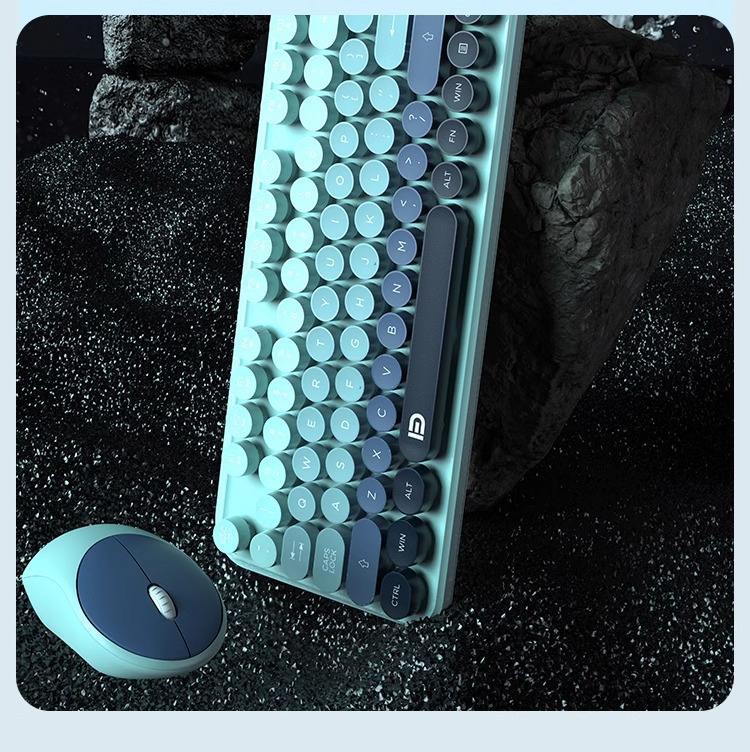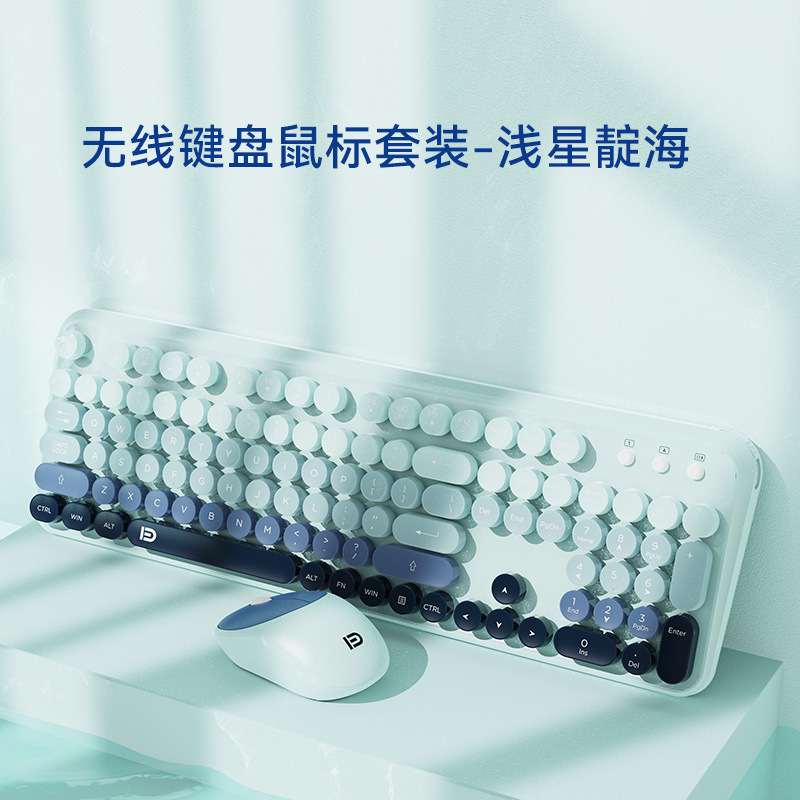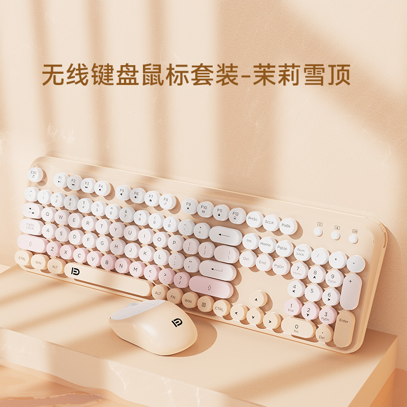 富德IK8870无线键盘鼠标套装静音朋克风圆形键帽现货外设无线键鼠