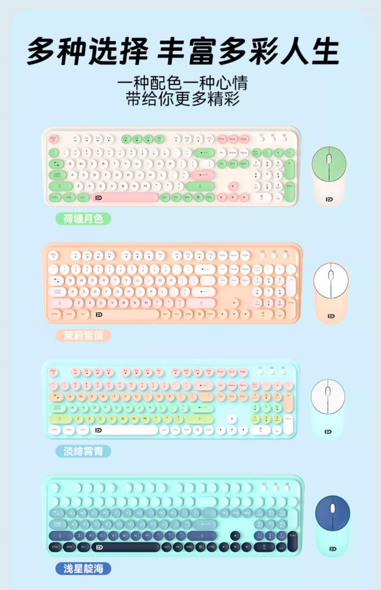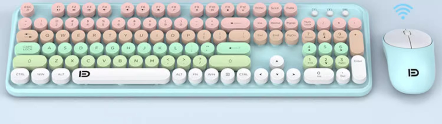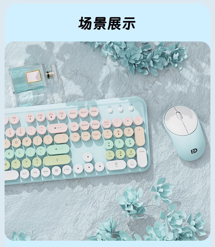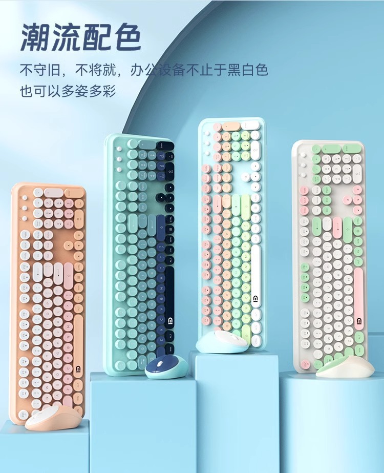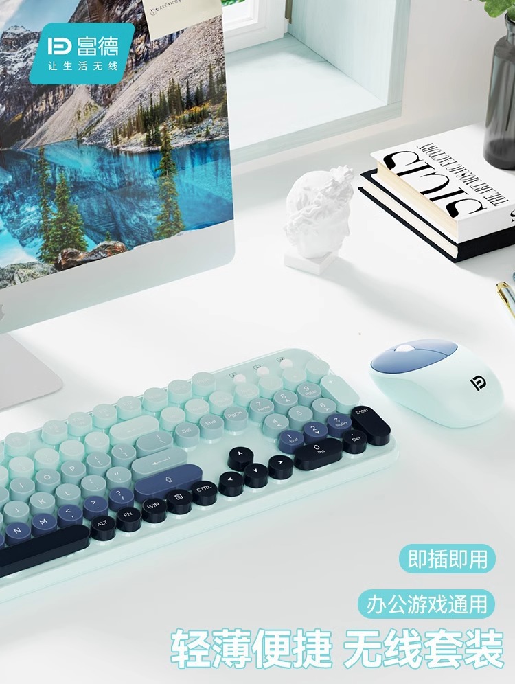 富德IK8870无线键盘鼠标套装静音朋克风圆形键帽现货外设无线键鼠