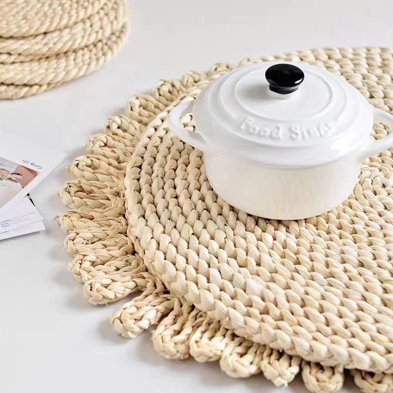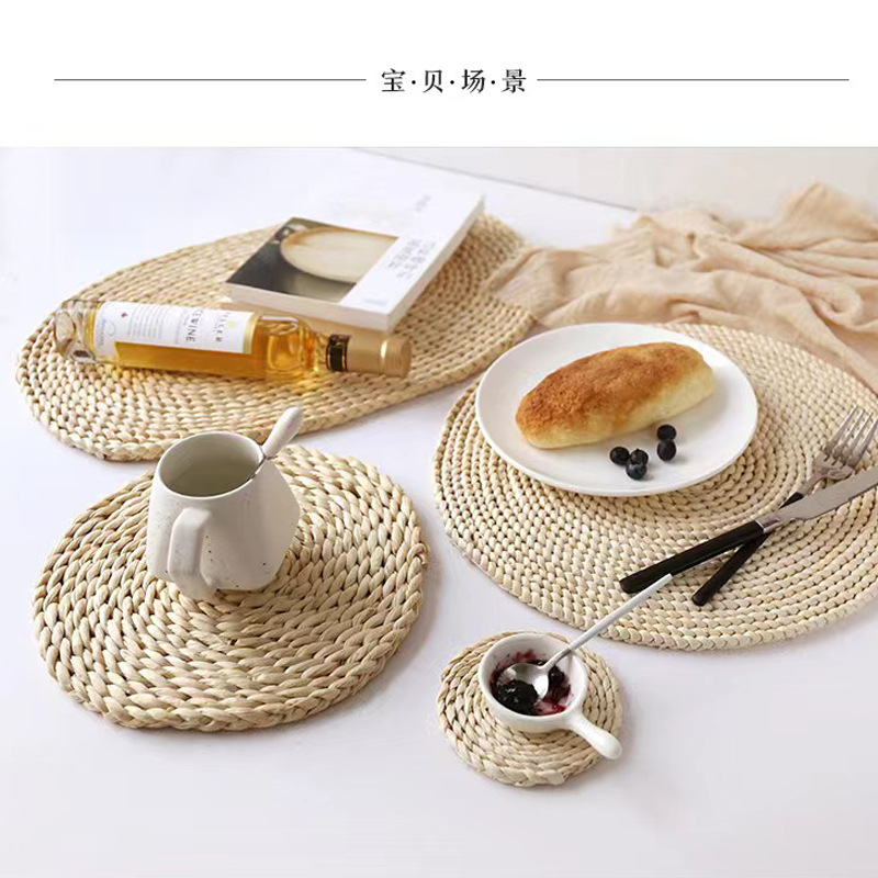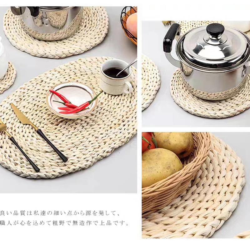 아마존 플레이스 마트 코스터 짠 플레이스 마트 밀짚 플레이스 매트 단열 플레이스 매트 옥수수 껍질 플레이스 매트 라운드 코스터 플레이트 매트