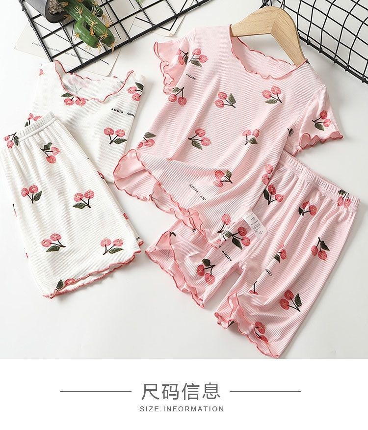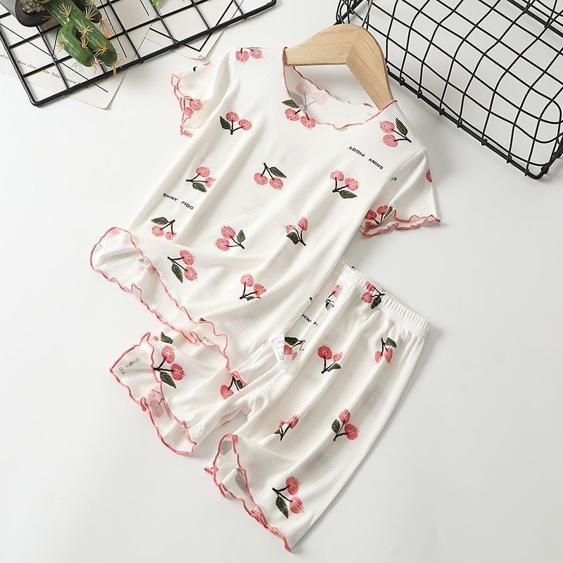 여아용 잠옷 어린이 아이스 실크 홈웨어 세트 여름 얇은 어린 소녀 짧은 소매 반바지 아기 에어컨 의류 여성용