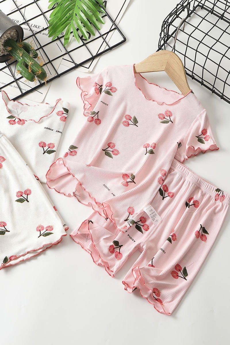 여아용 잠옷 어린이 아이스 실크 홈웨어 세트 여름 얇은 어린 소녀 짧은 소매 반바지 아기 에어컨 의류 여성용스토어 가기