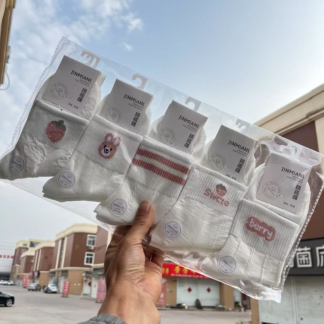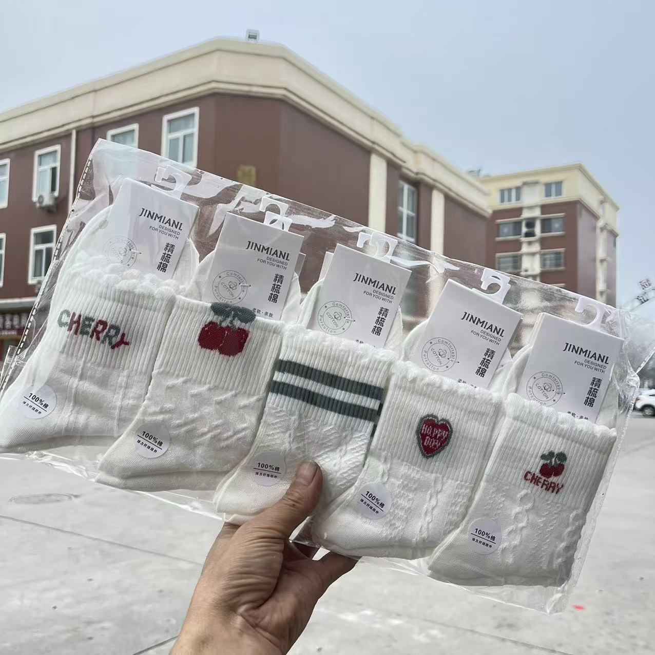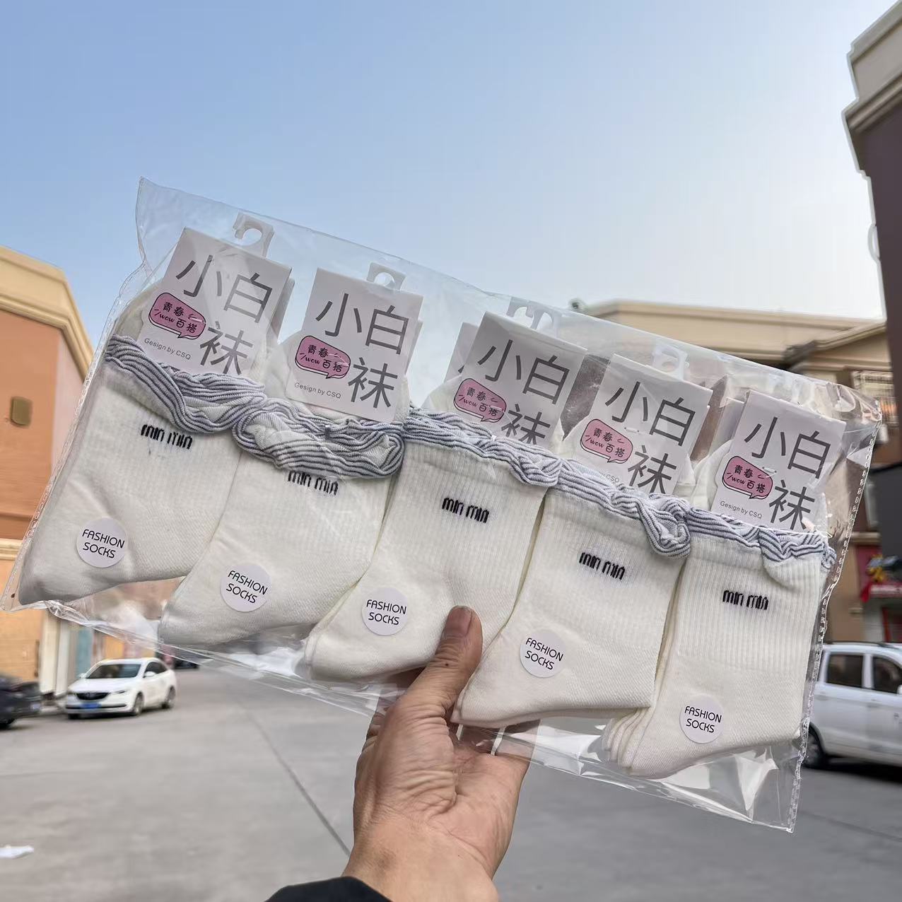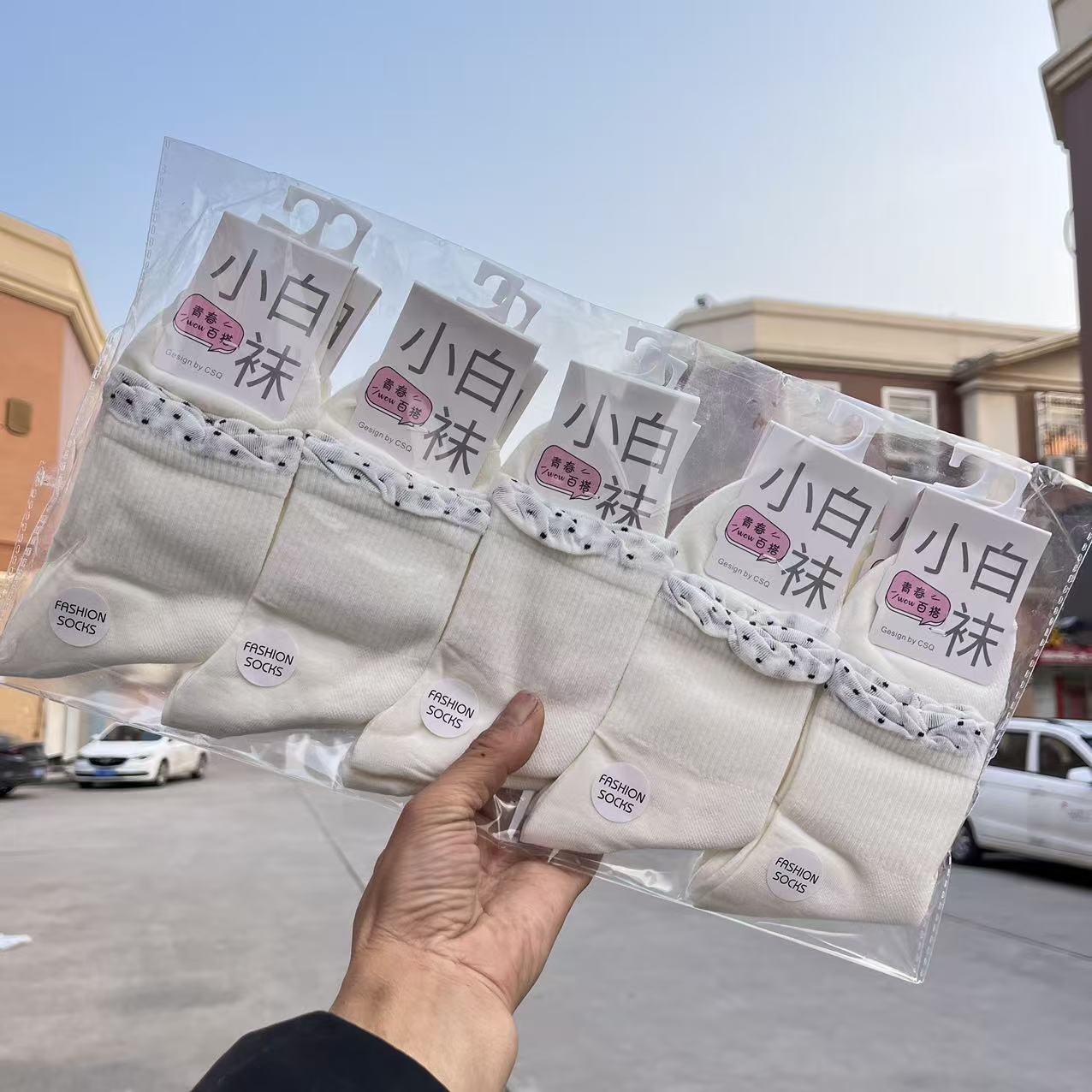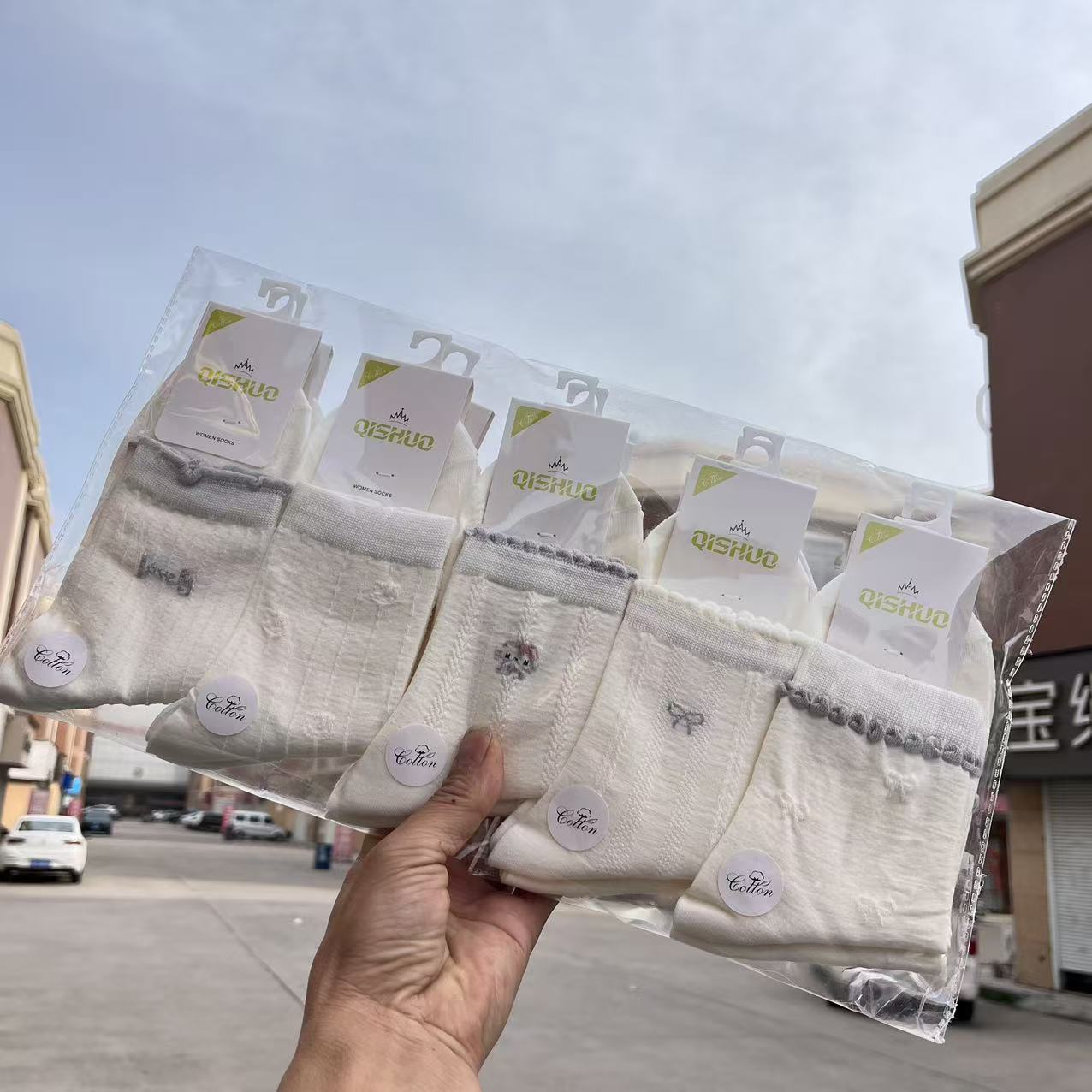흰색 세트 작은 신선한 스타일 코튼 중간 허리 그물 양말 봄과 여름 여성 대학 스타일 스포츠 레저 메쉬 코튼 양말스토어 가기