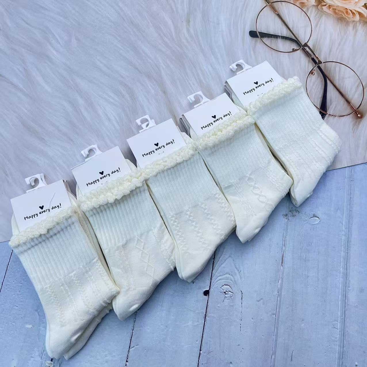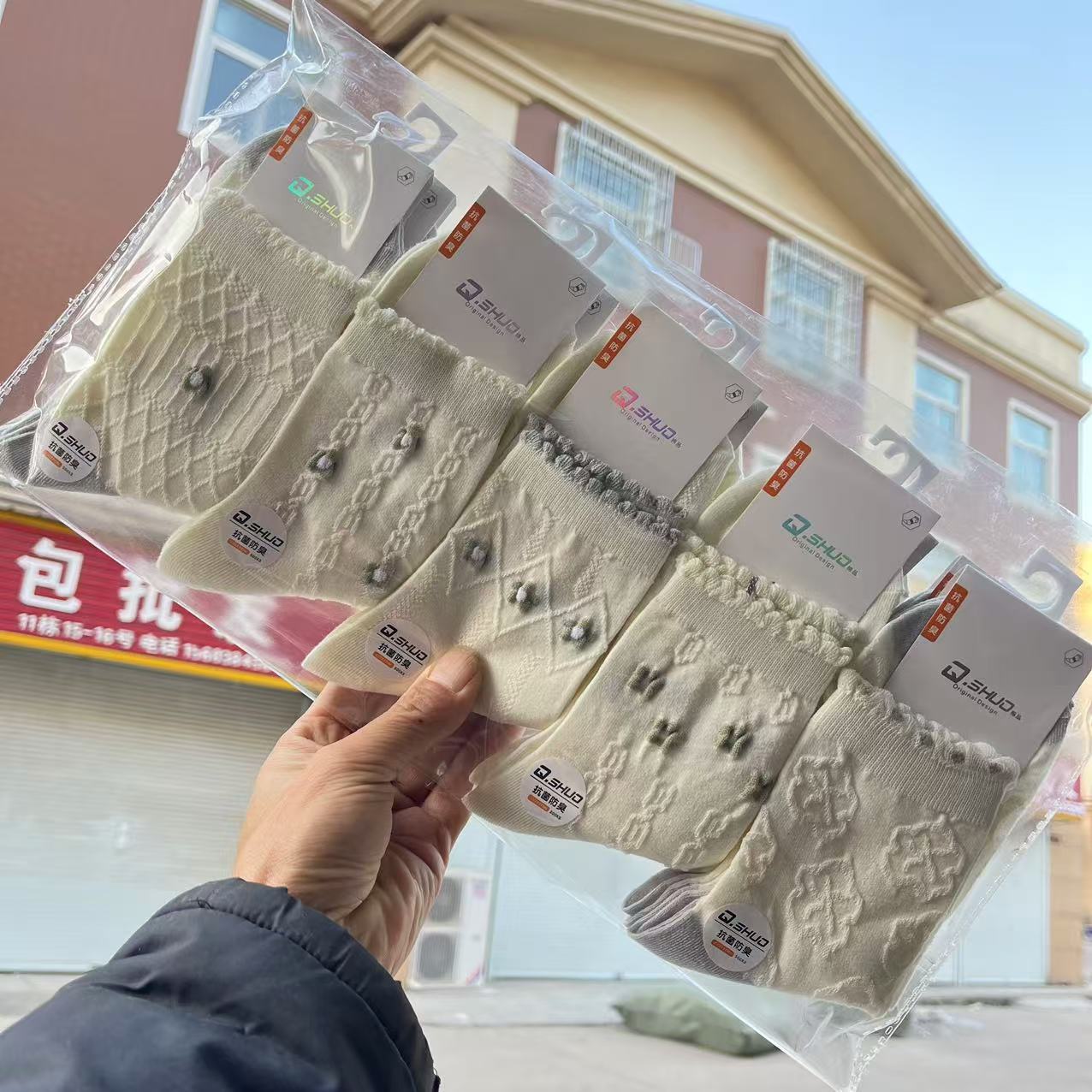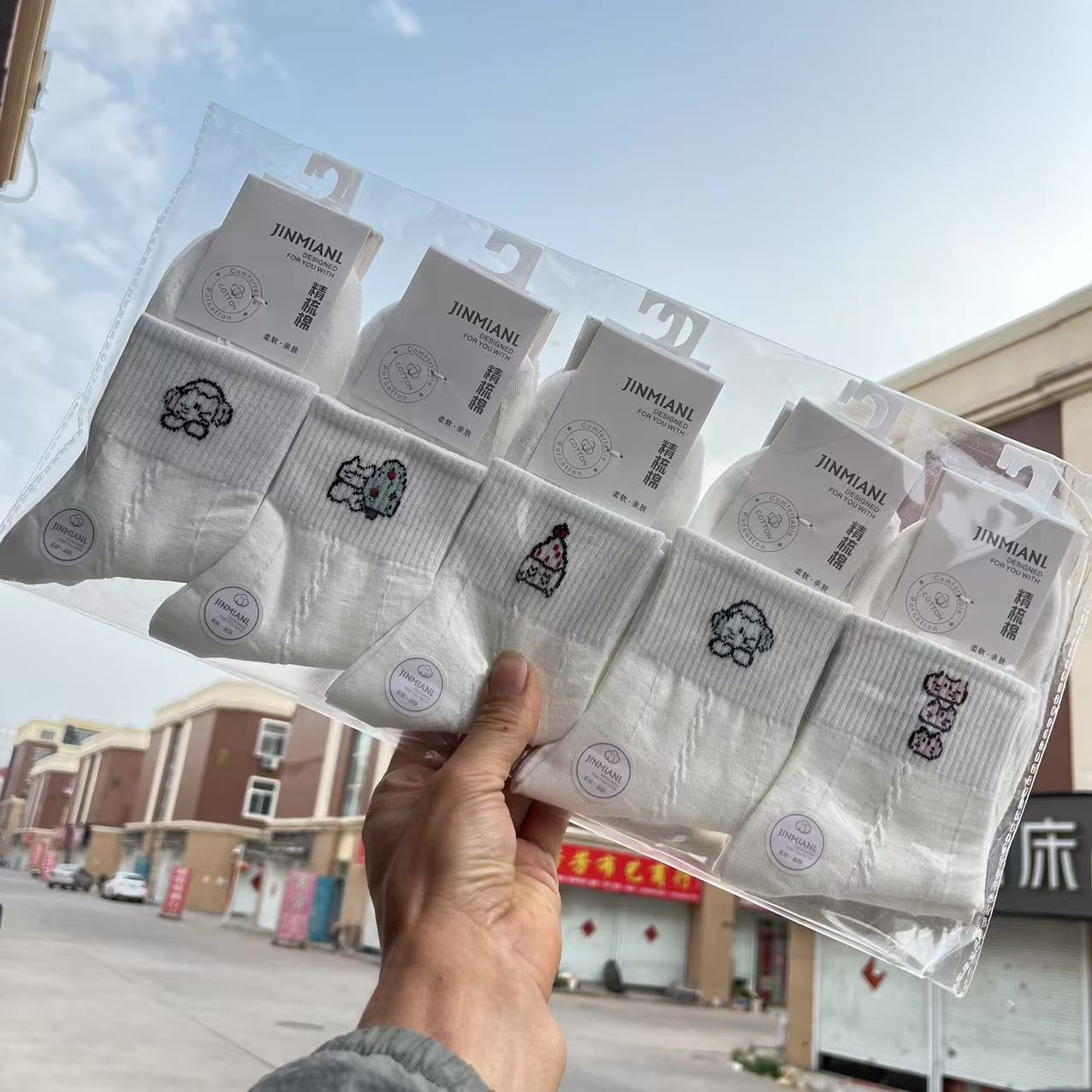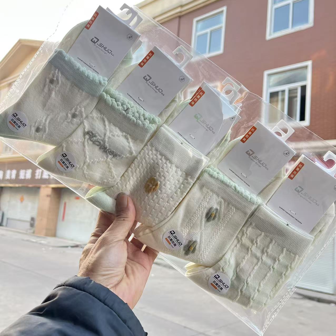 흰색 세트 작은 신선한 스타일 코튼 중간 허리 그물 양말 봄과 여름 여성 대학 스타일 스포츠 레저 메쉬 코튼 양말스토어 가기