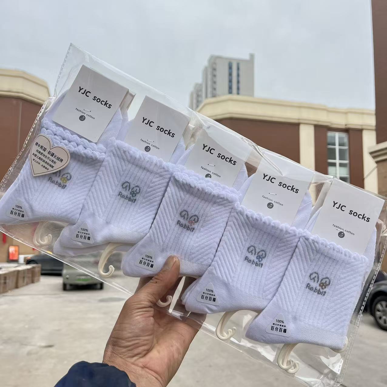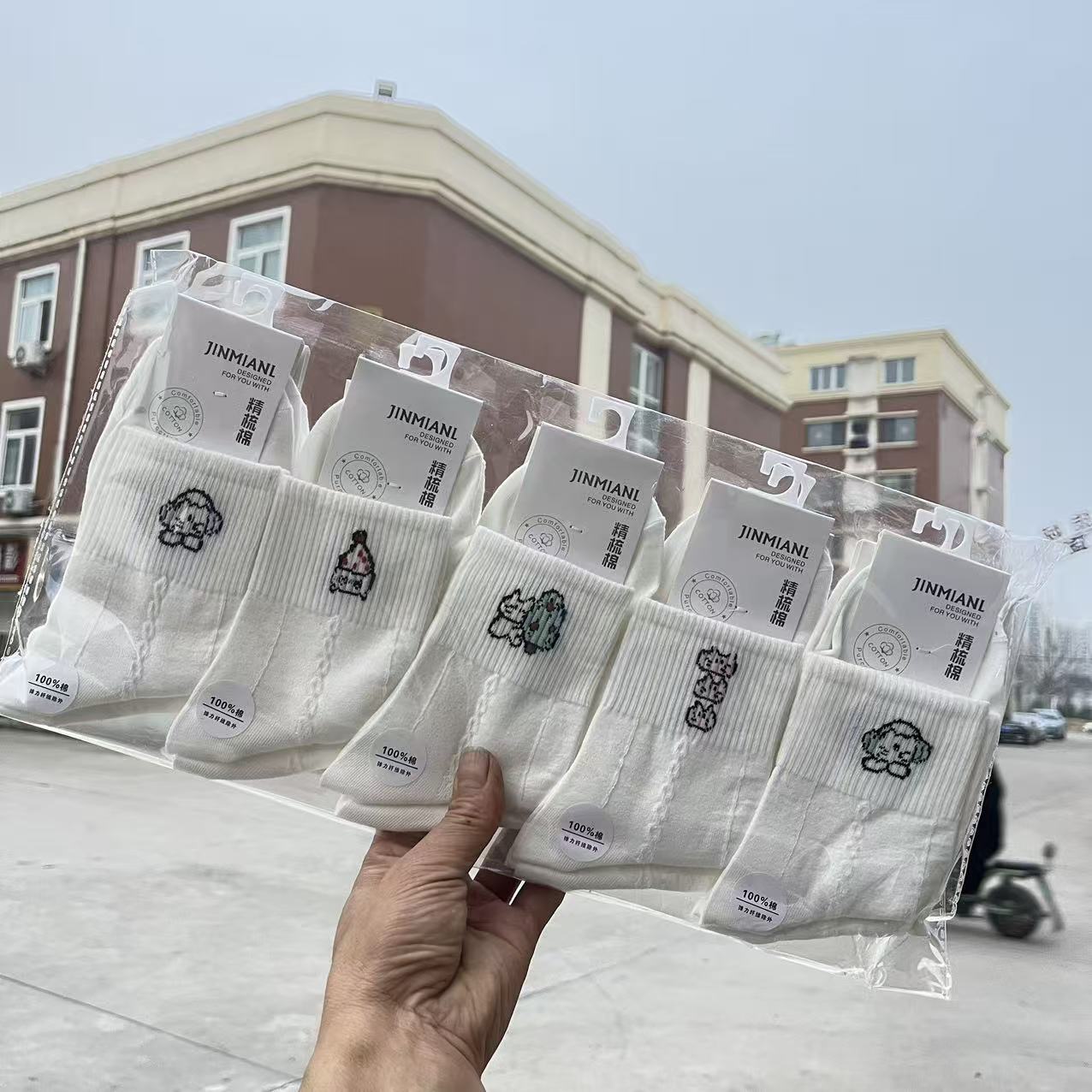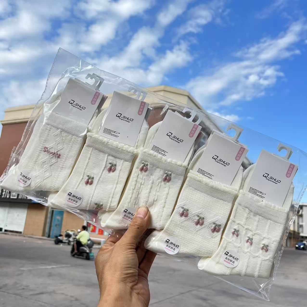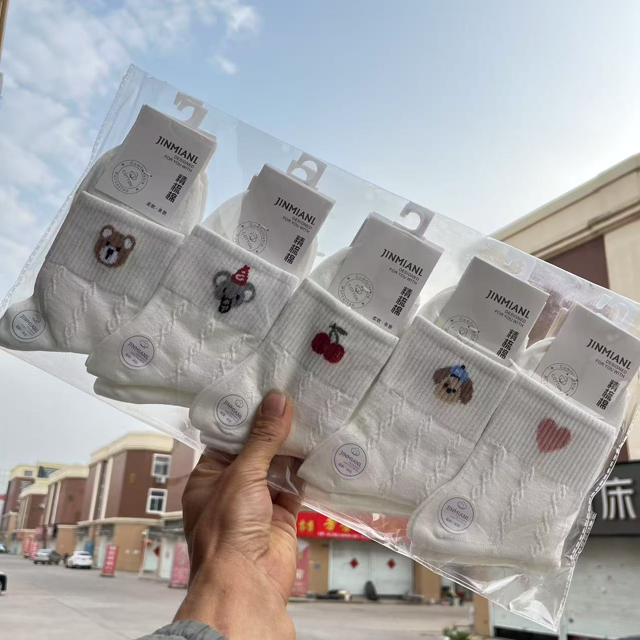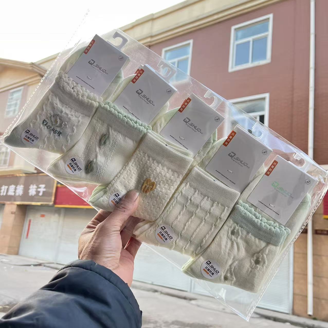 흰색 세트 작은 신선한 스타일 코튼 중간 허리 그물 양말 봄과 여름 여성 대학 스타일 스포츠 레저 메쉬 코튼 양말스토어 가기
