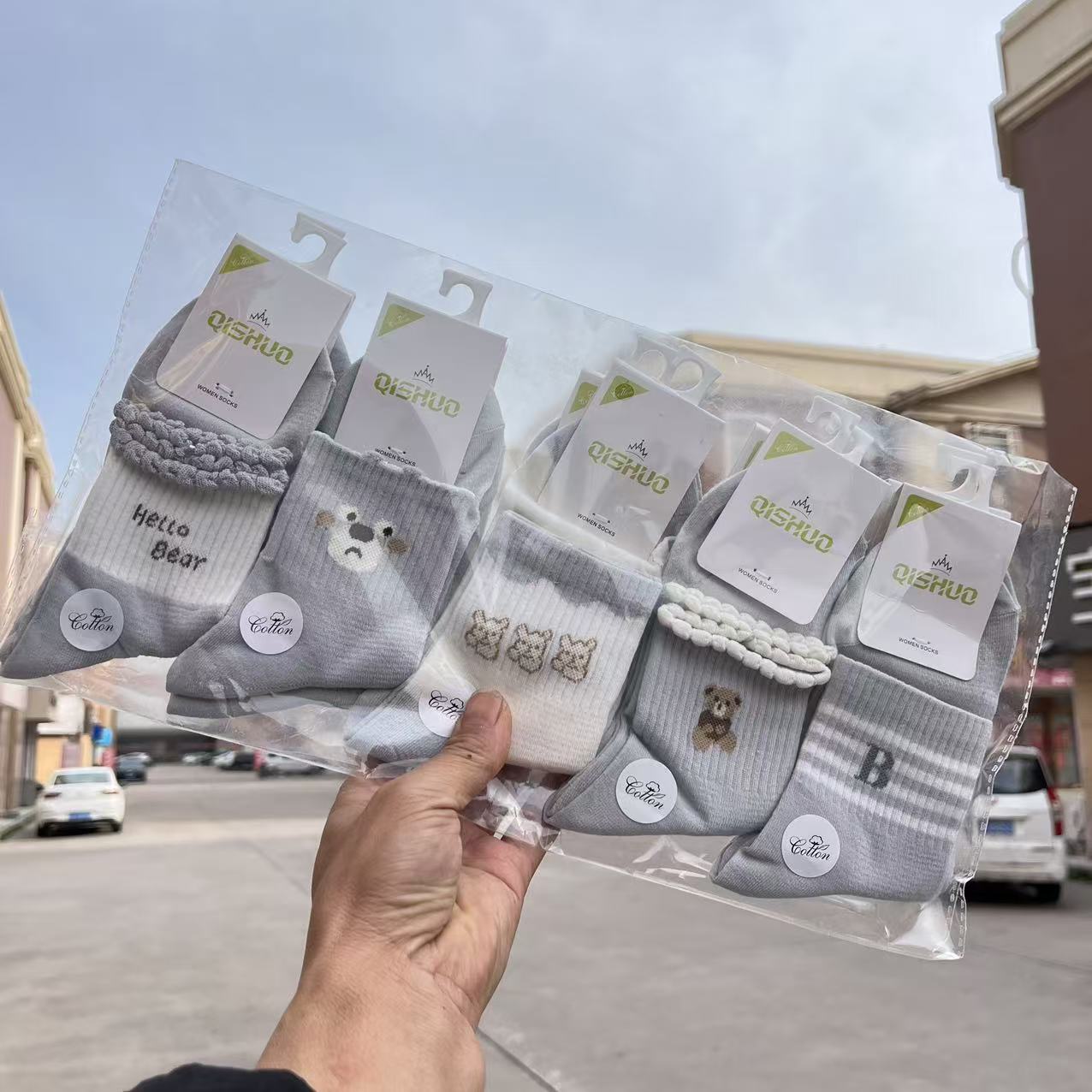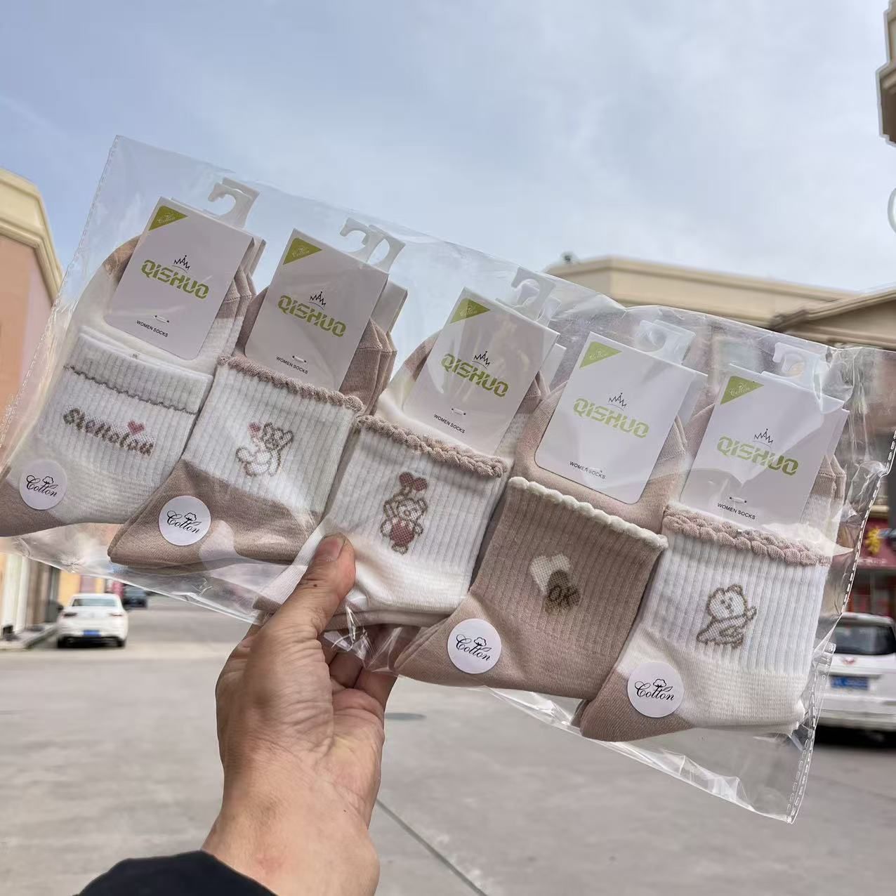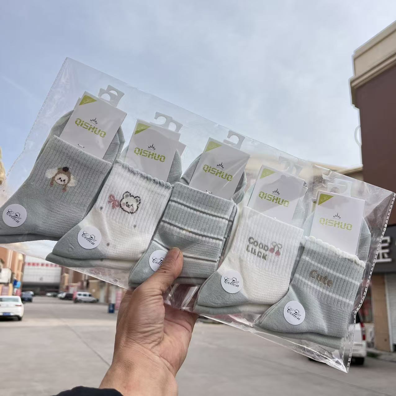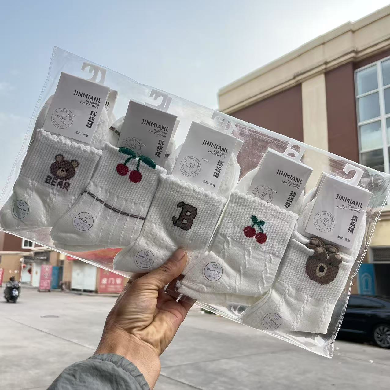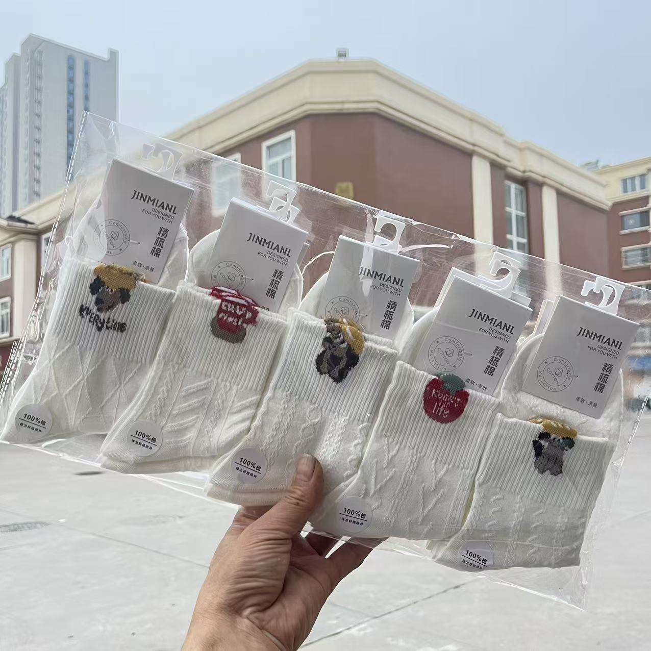 흰색 세트 작은 신선한 스타일 코튼 중간 허리 그물 양말 봄과 여름 여성 대학 스타일 스포츠 레저 메쉬 코튼 양말스토어 가기