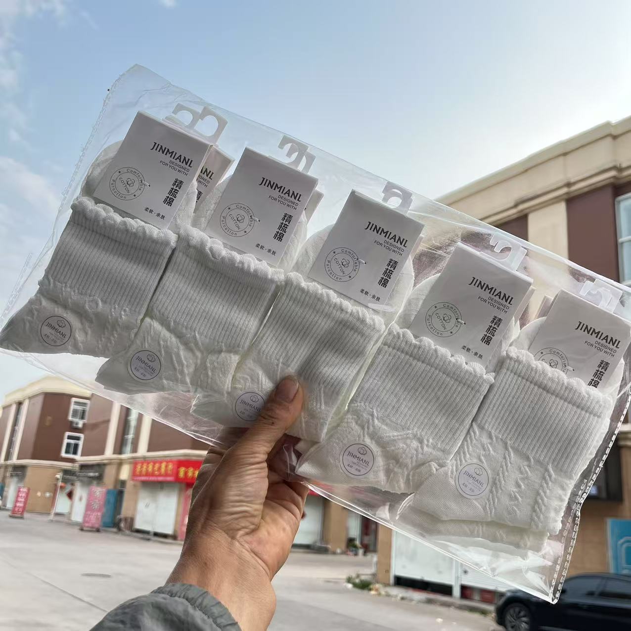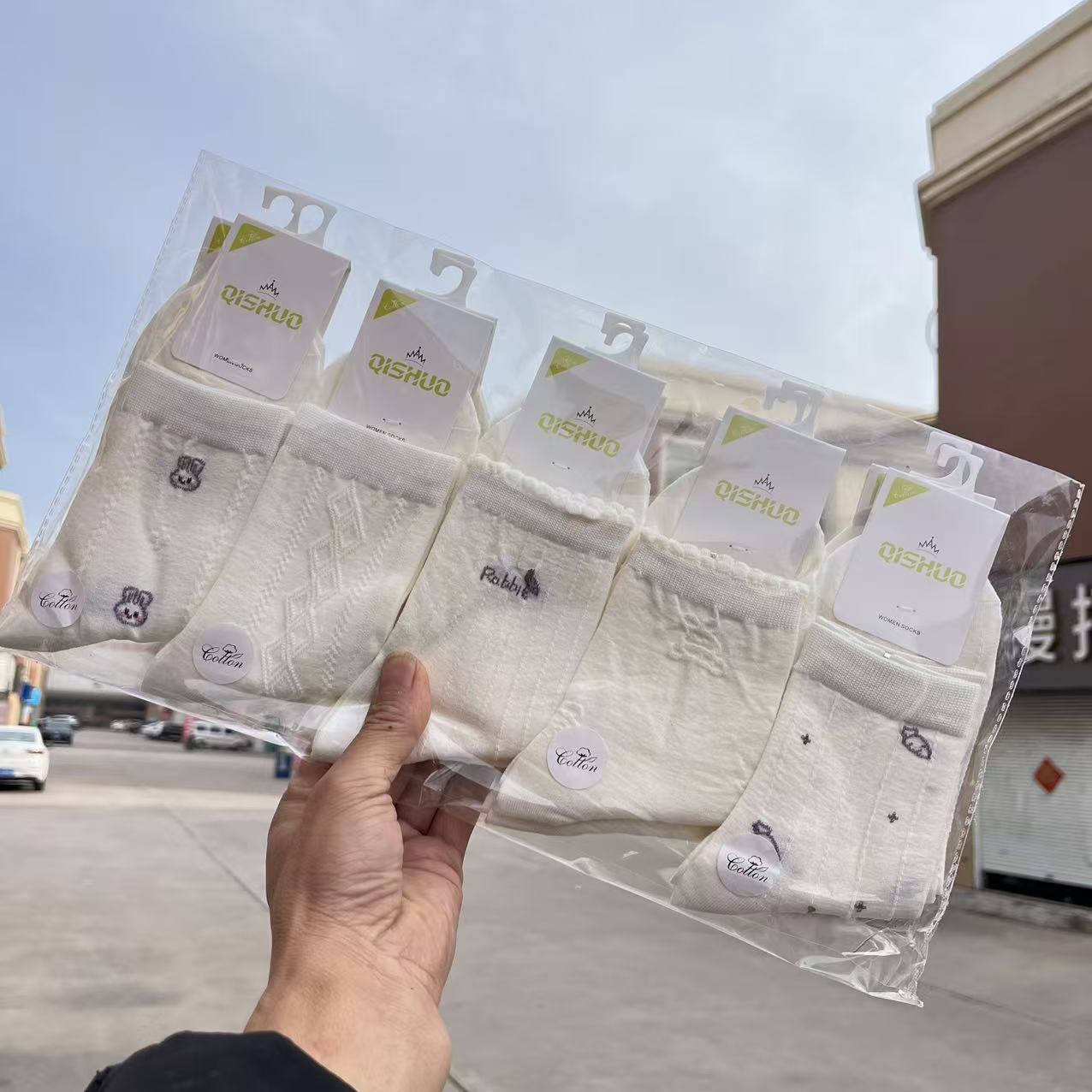 흰색 세트 작은 신선한 스타일 코튼 중간 허리 그물 양말 봄과 여름 여성 대학 스타일 스포츠 레저 메쉬 코튼 양말