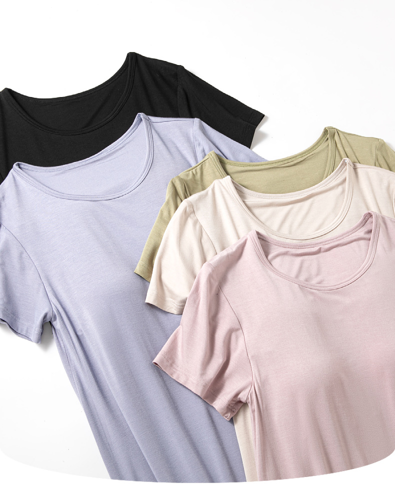 여성용 여름 모달 올인원 고정 컵 무릎 위 루즈한 잠옷, 대형 반팔 잠옷, 가슴 패드와 함께 착용 가능