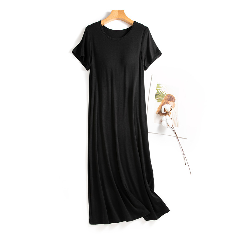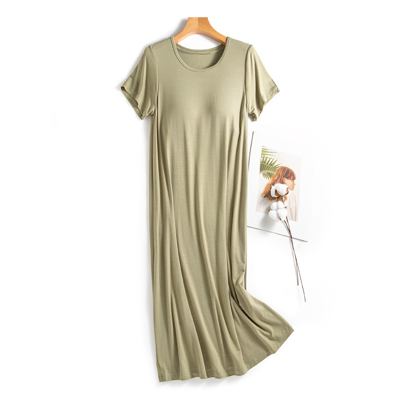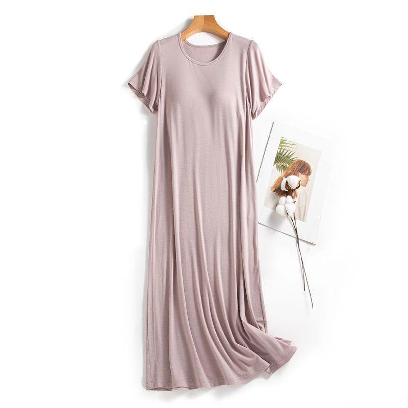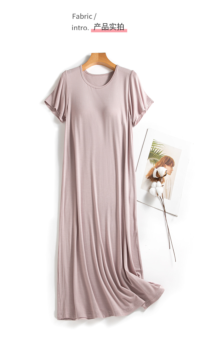 여성용 여름 모달 올인원 고정 컵 무릎 위 루즈한 잠옷, 대형 반팔 잠옷, 가슴 패드와 함께 착용 가능스토어 가기