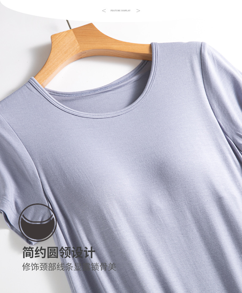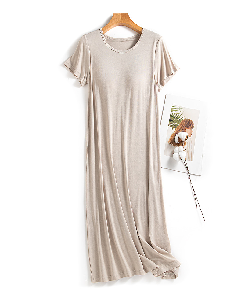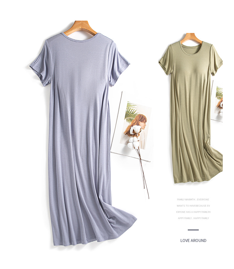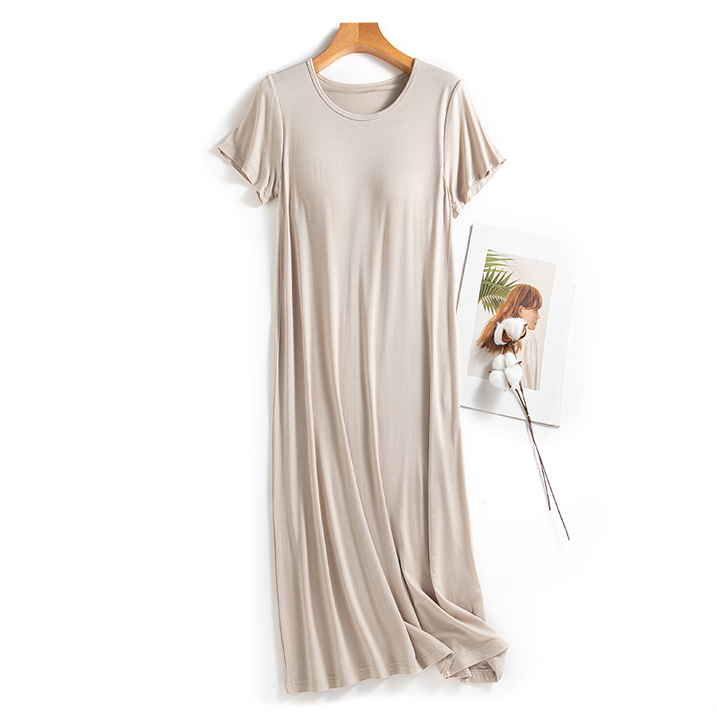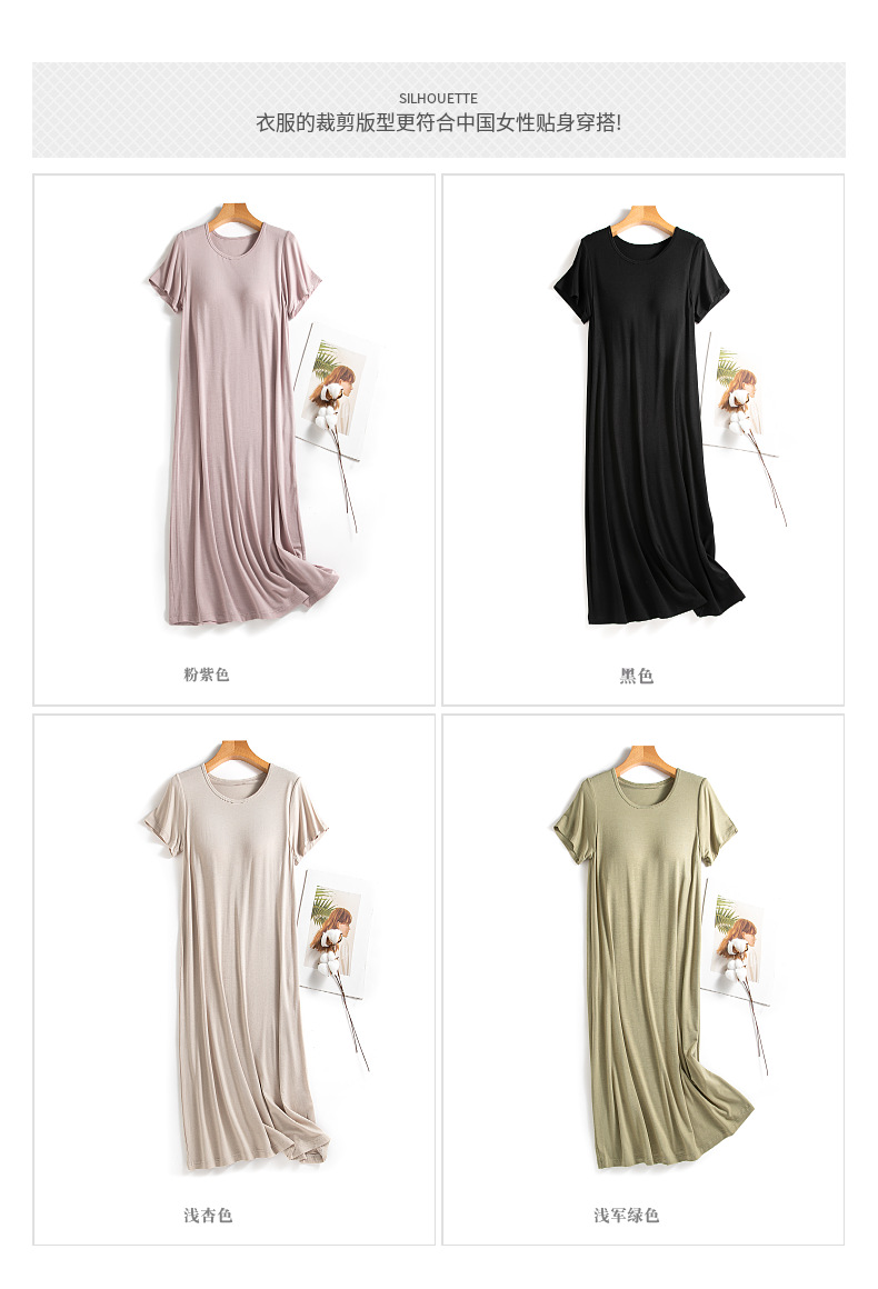 여성용 여름 모달 올인원 고정 컵 무릎 위 루즈한 잠옷, 대형 반팔 잠옷, 가슴 패드와 함께 착용 가능스토어 가기