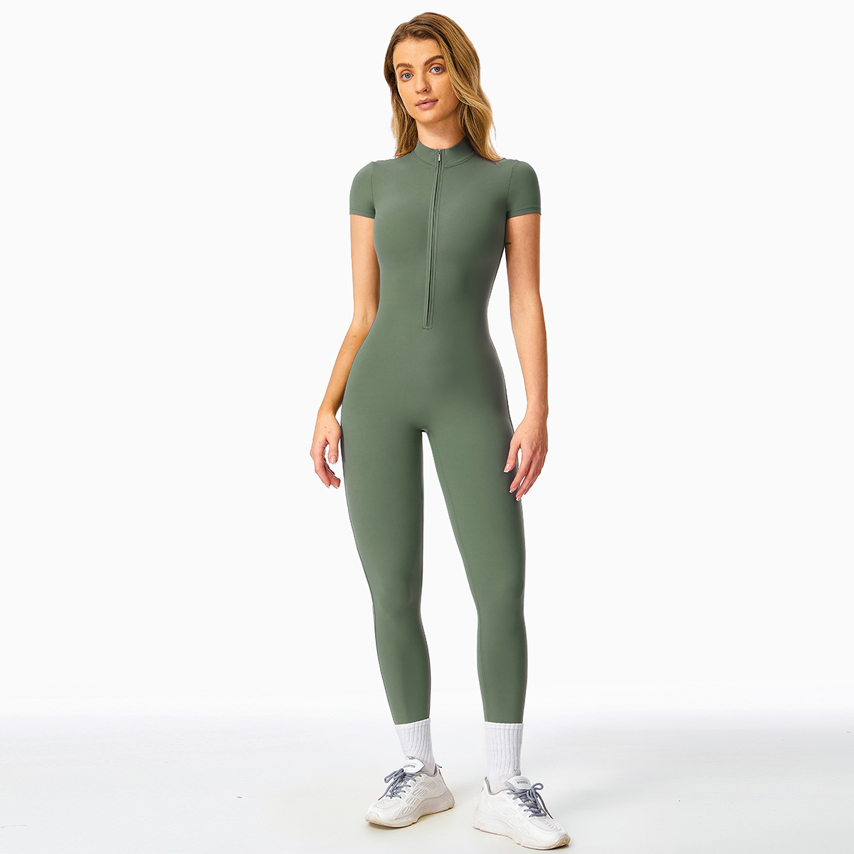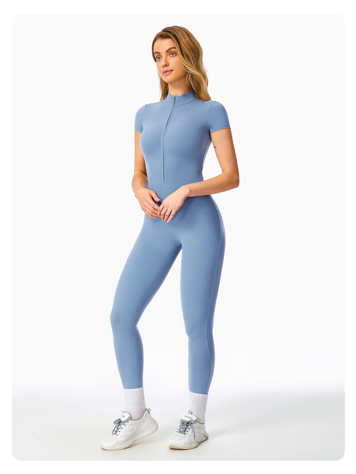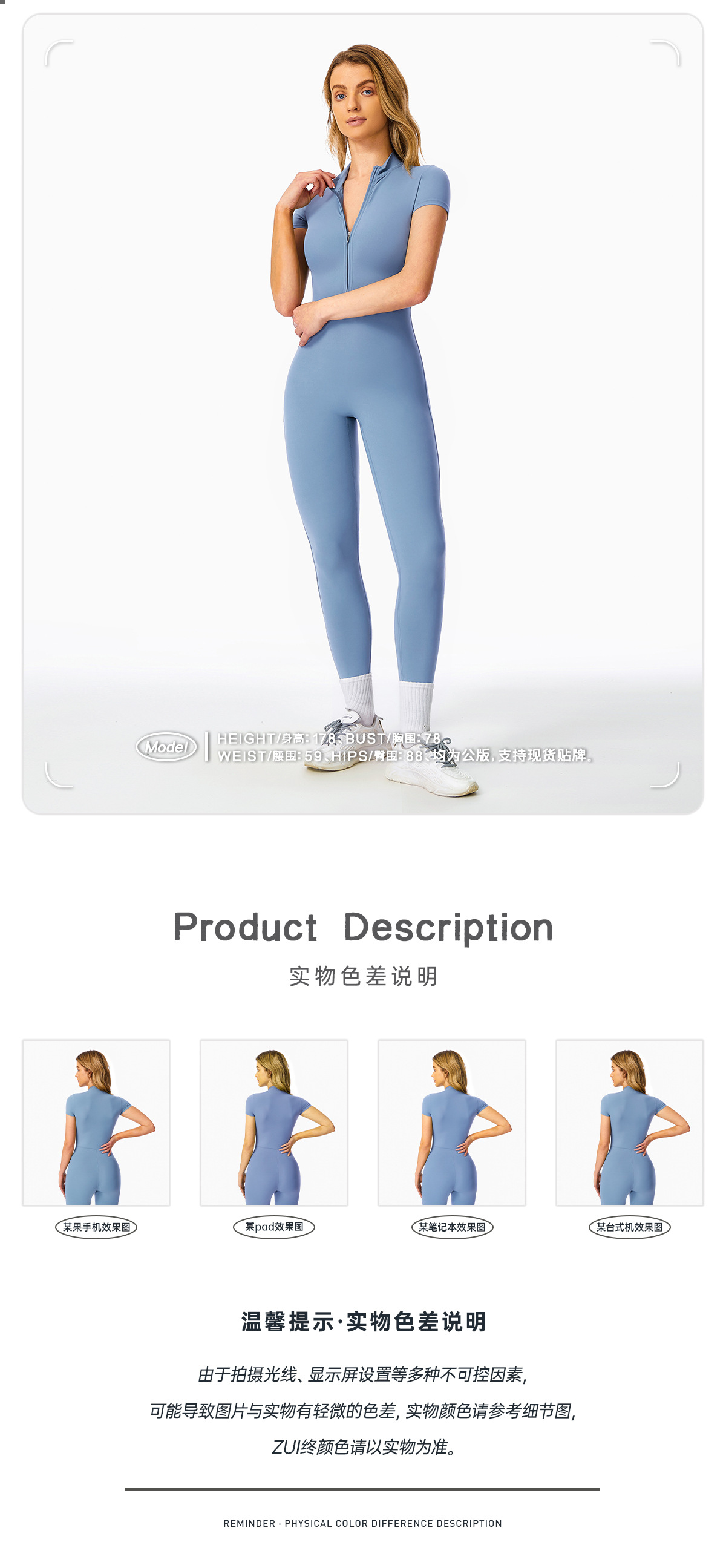 아마존 유럽 및 미국 지퍼 반팔 원피스 타이트 의류 여성용 알몸 외부 피트니스 스포츠 원피스 요가 의류 8305스토어 가기