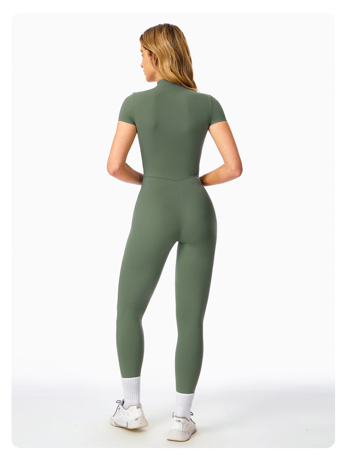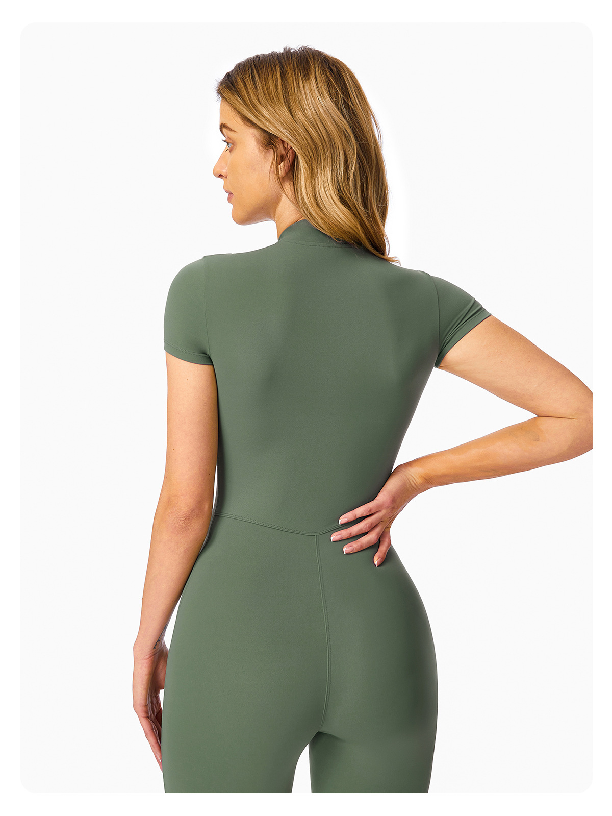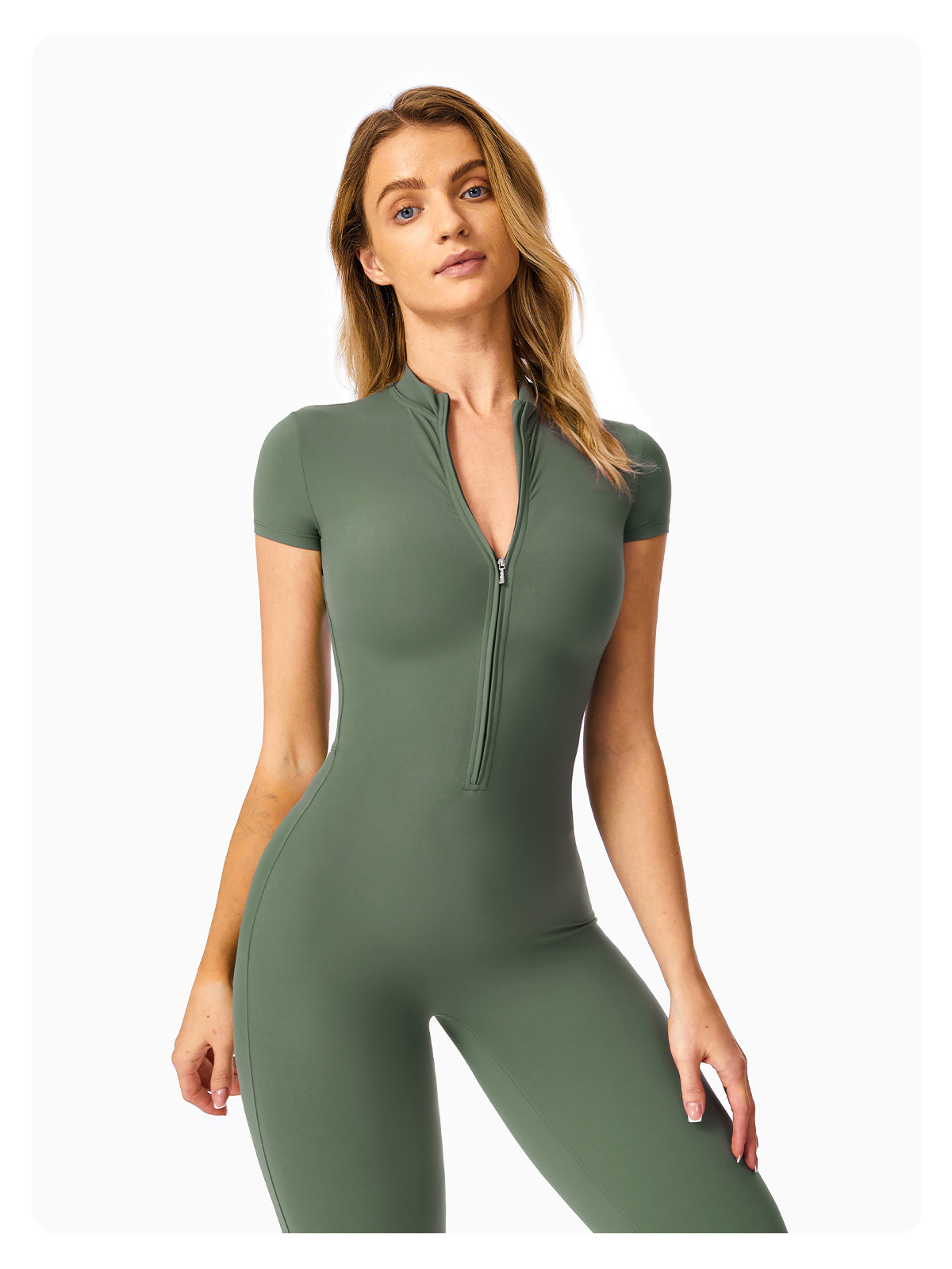 아마존 유럽 및 미국 지퍼 반팔 원피스 타이트 의류 여성용 알몸 외부 피트니스 스포츠 원피스 요가 의류 8305스토어 가기