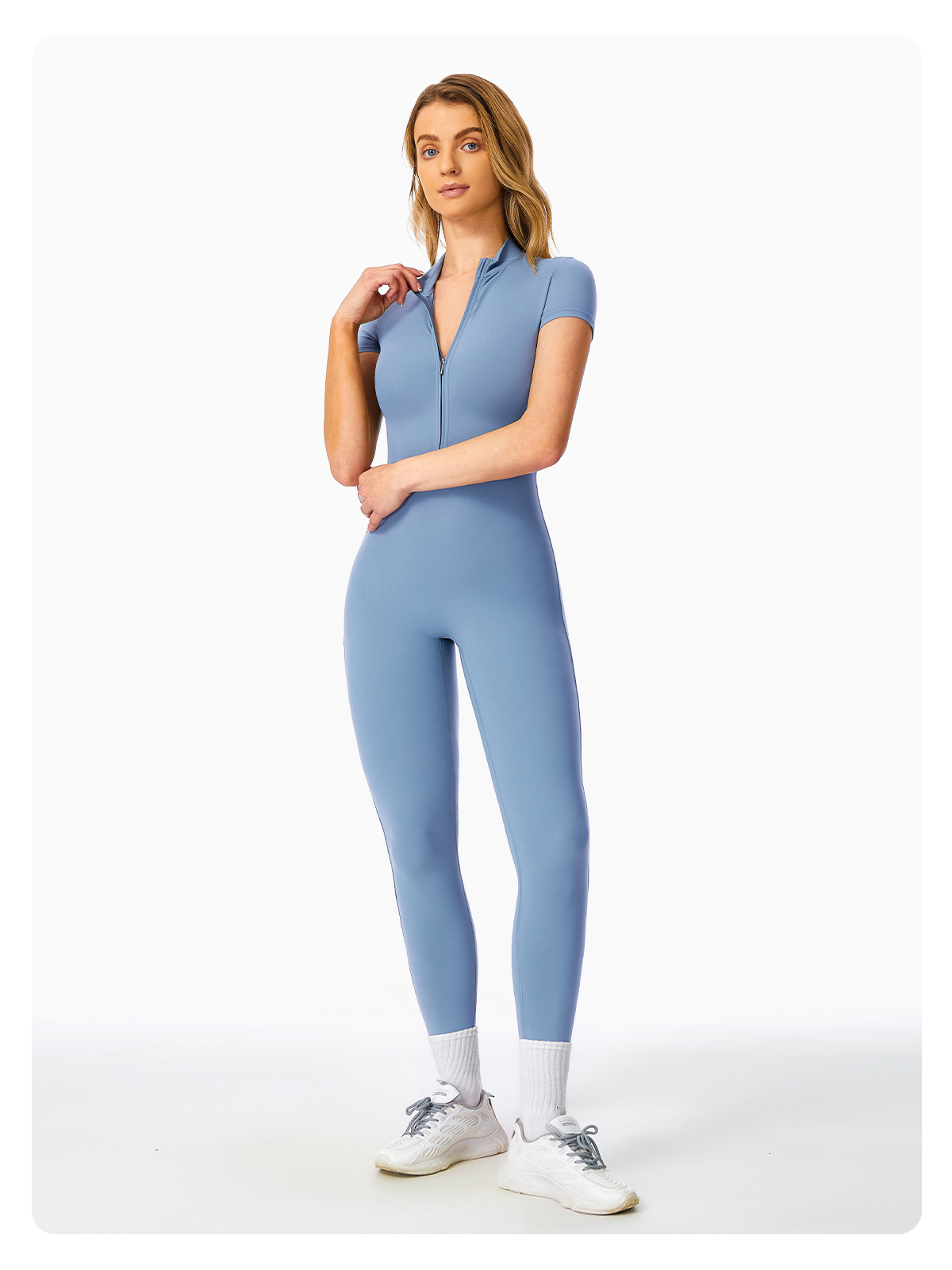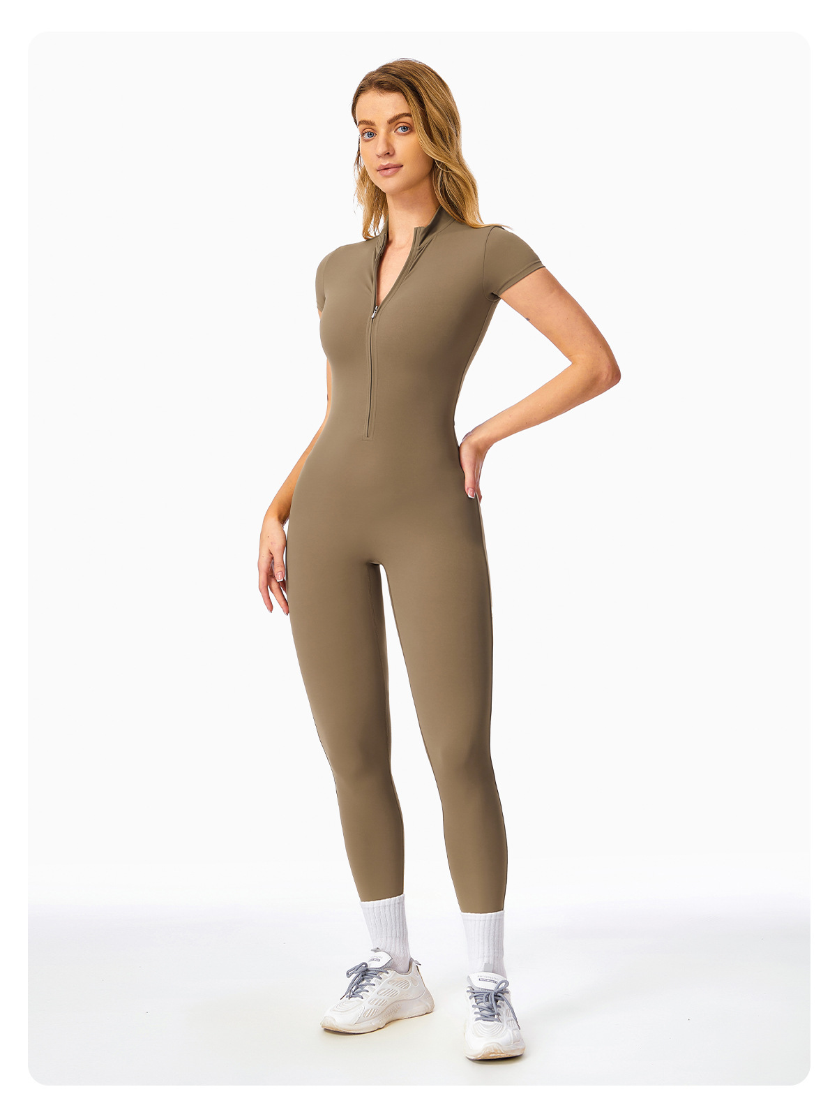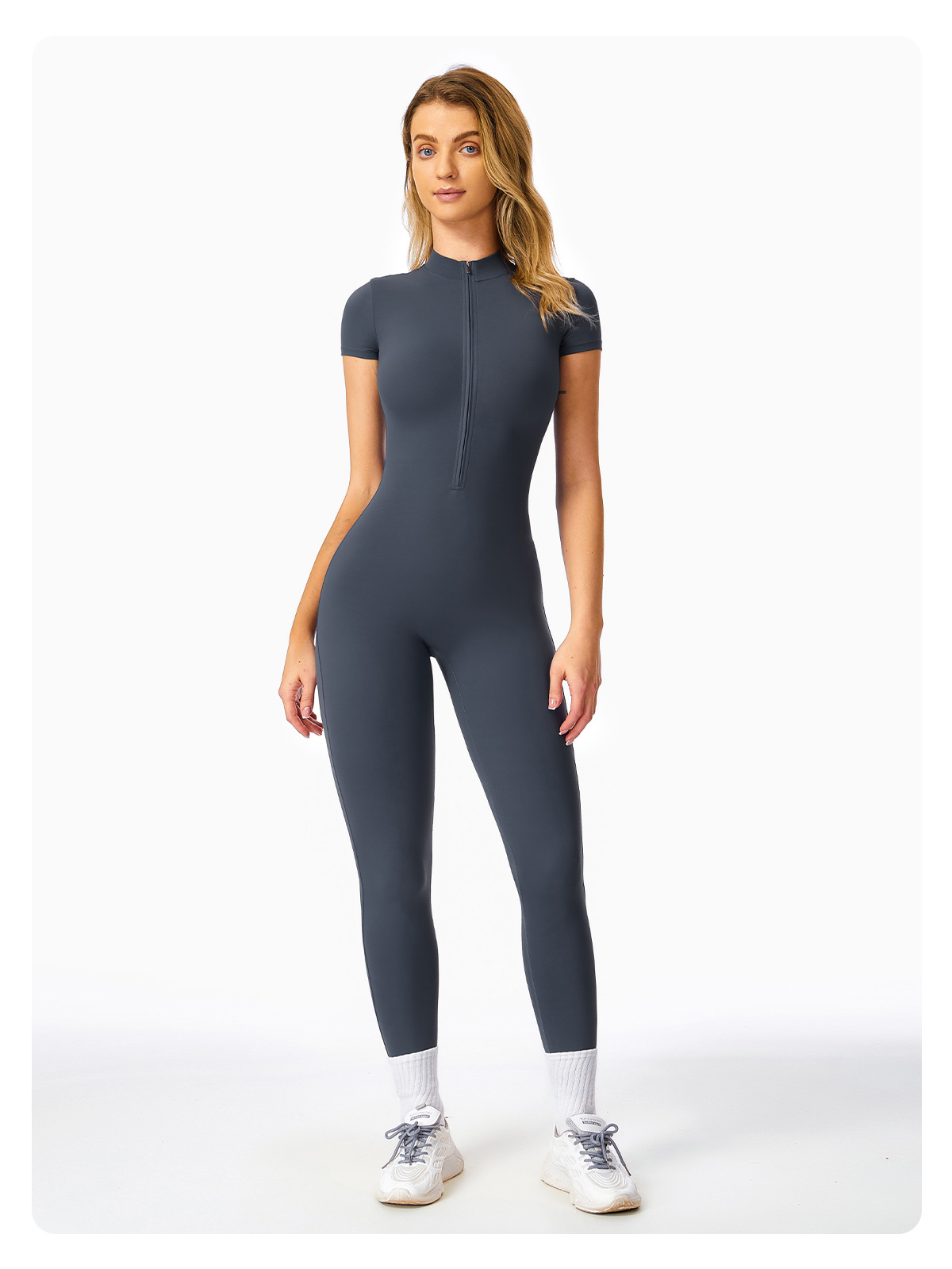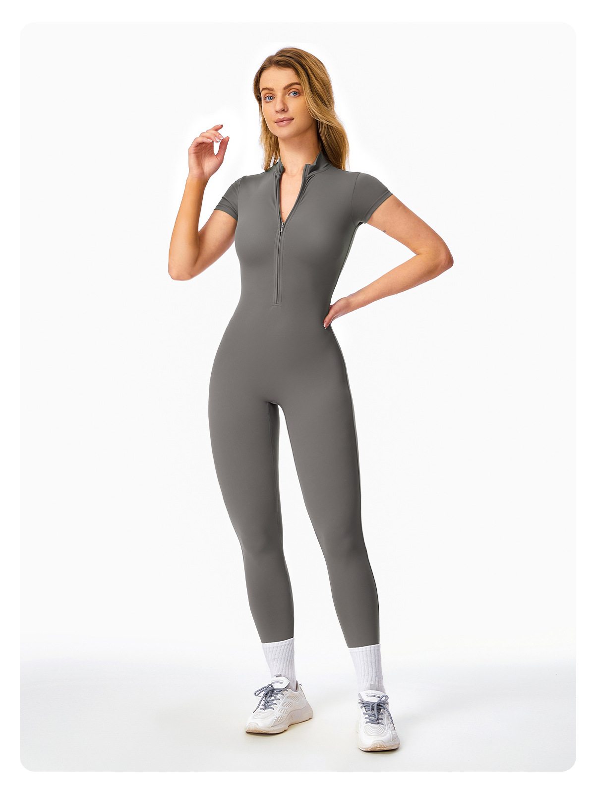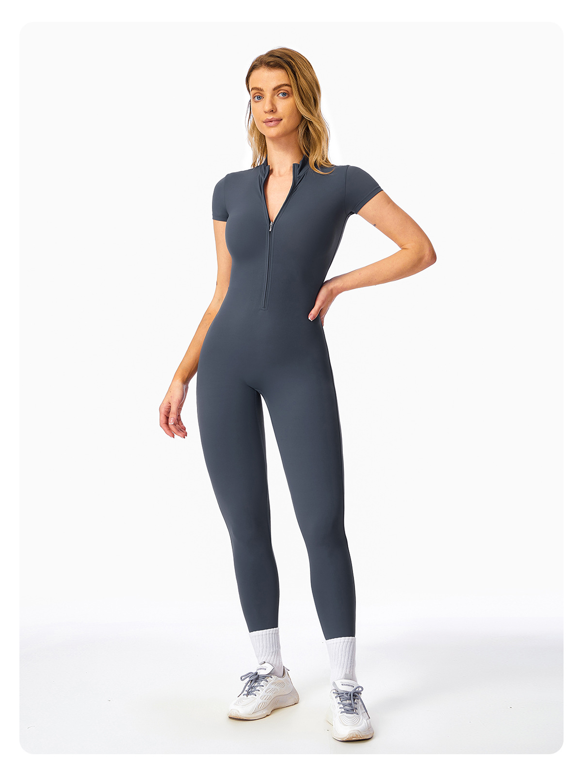 아마존 유럽 및 미국 지퍼 반팔 원피스 타이트 의류 여성용 알몸 외부 피트니스 스포츠 원피스 요가 의류 8305