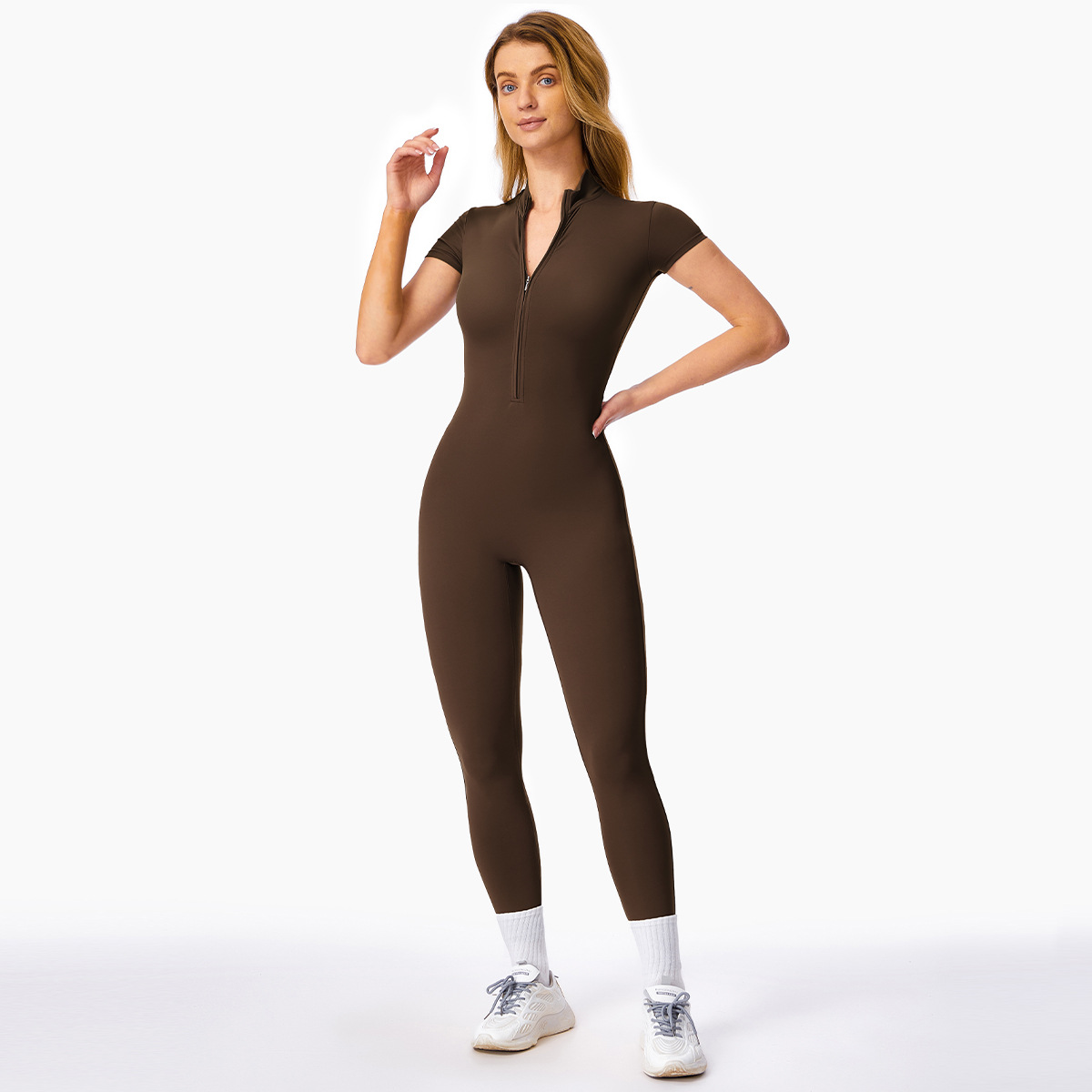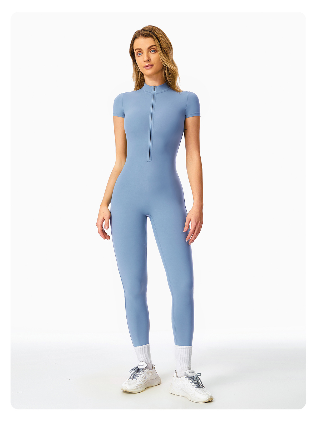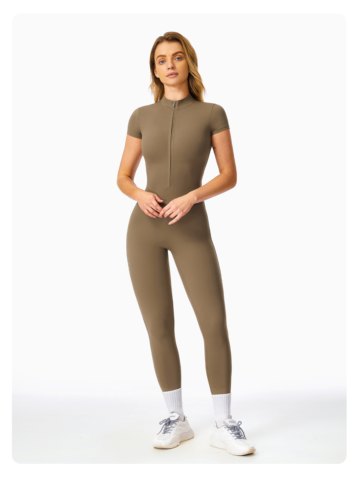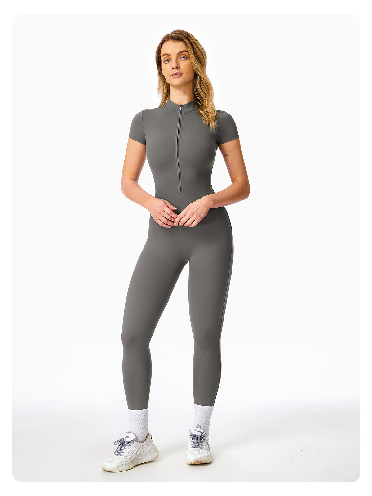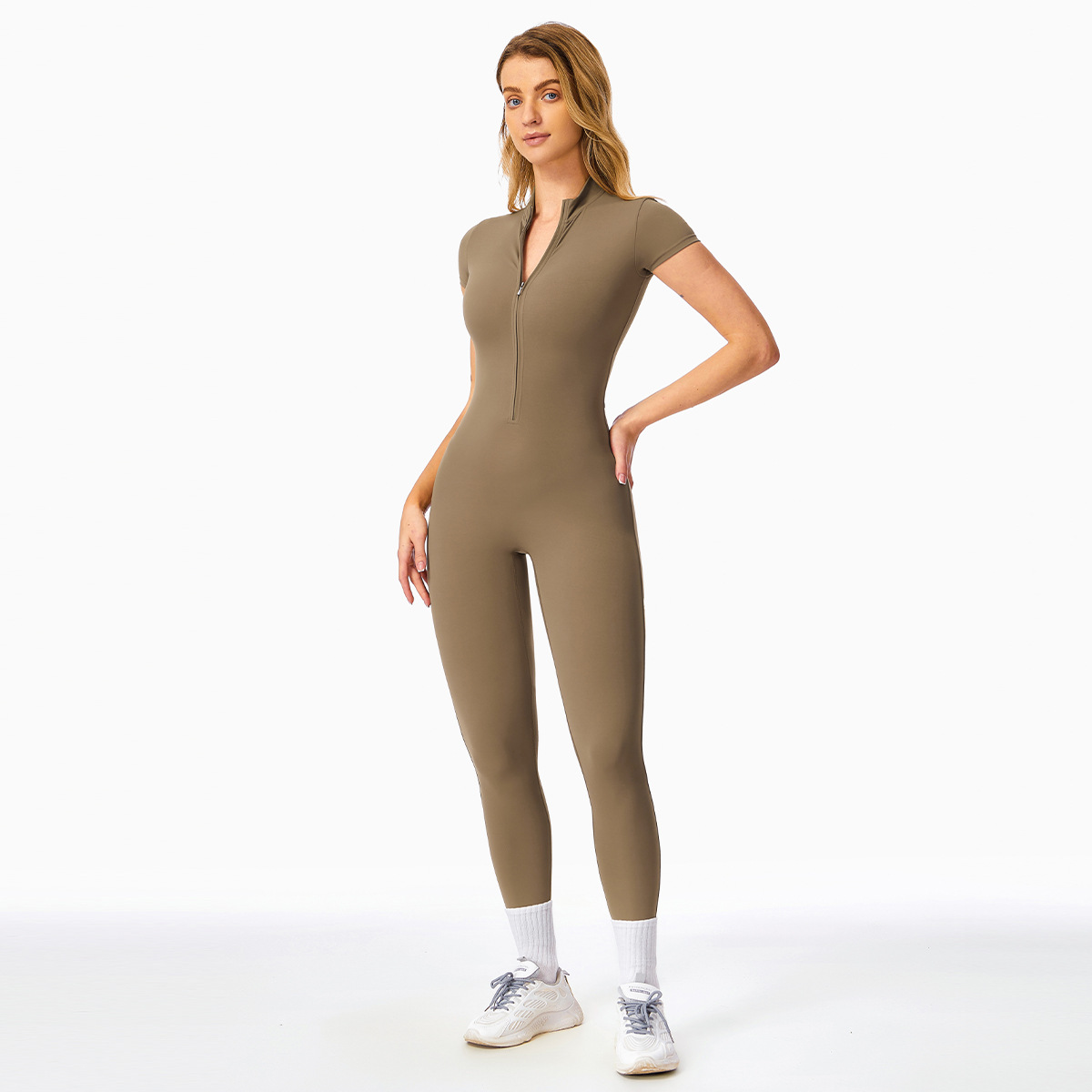 아마존 유럽 및 미국 지퍼 반팔 원피스 타이트 의류 여성용 알몸 외부 피트니스 스포츠 원피스 요가 의류 8305