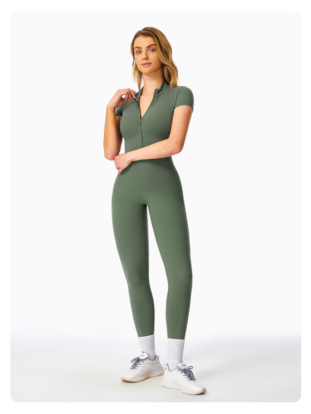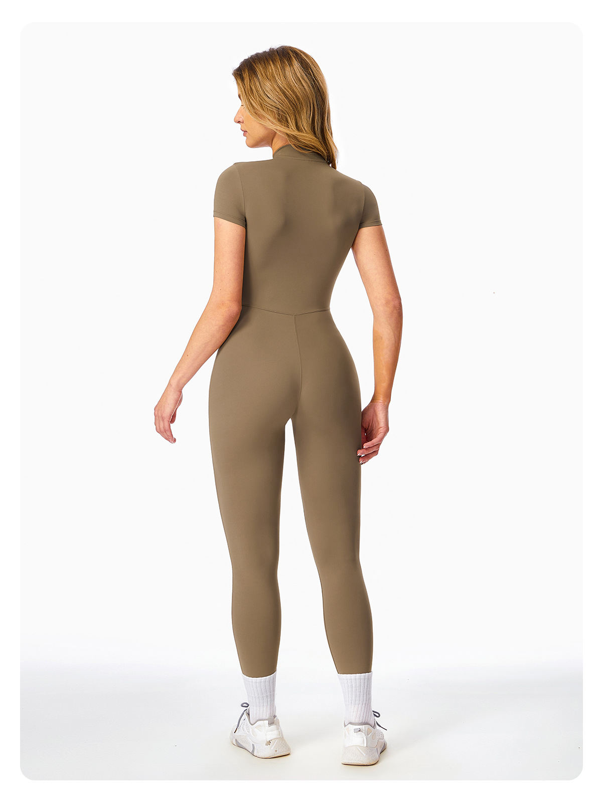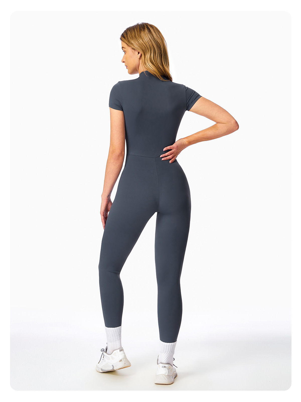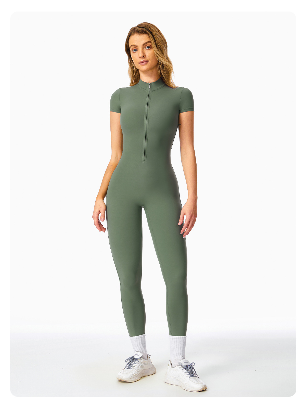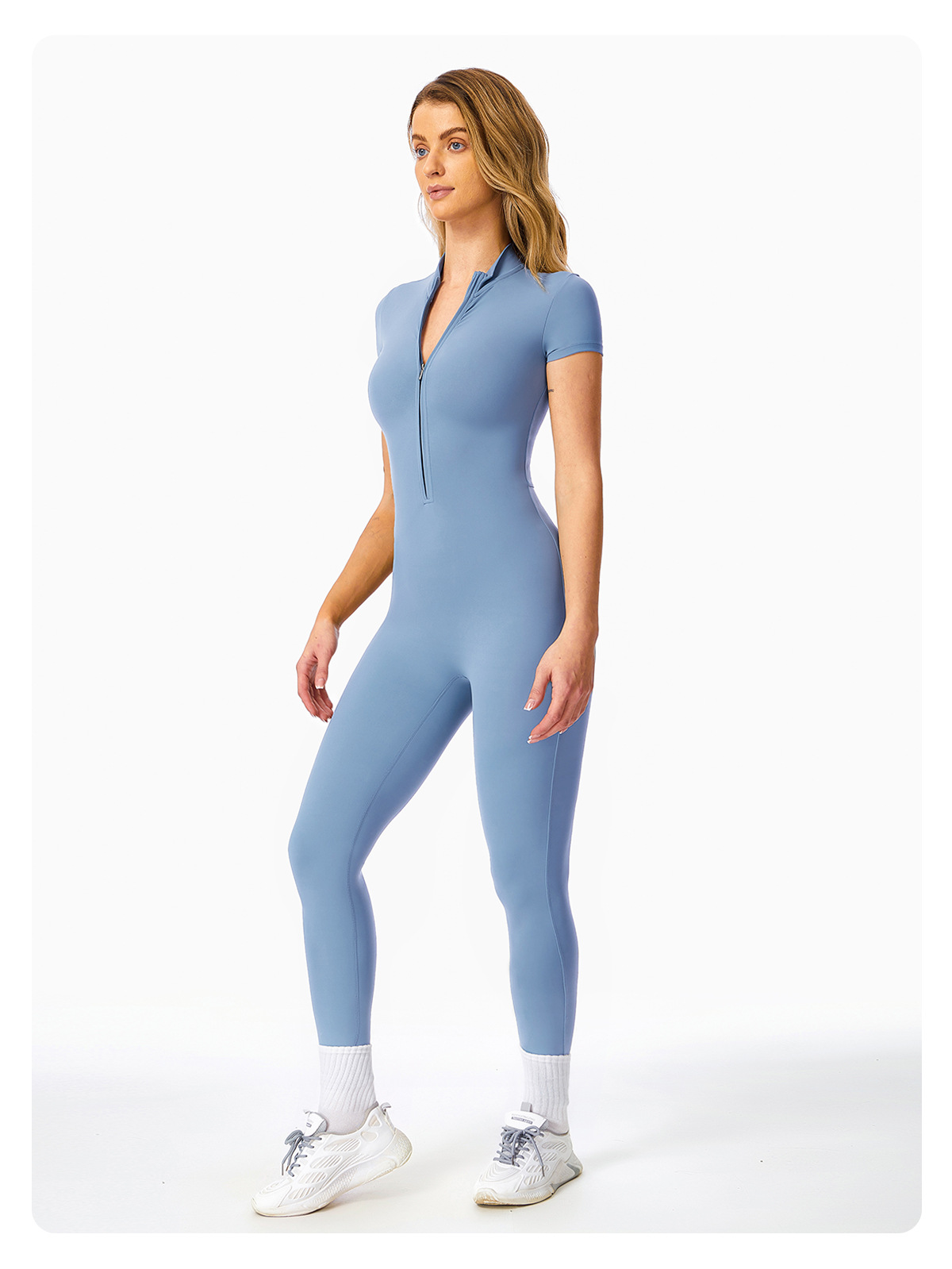 아마존 유럽 및 미국 지퍼 반팔 원피스 타이트 의류 여성용 알몸 외부 피트니스 스포츠 원피스 요가 의류 8305