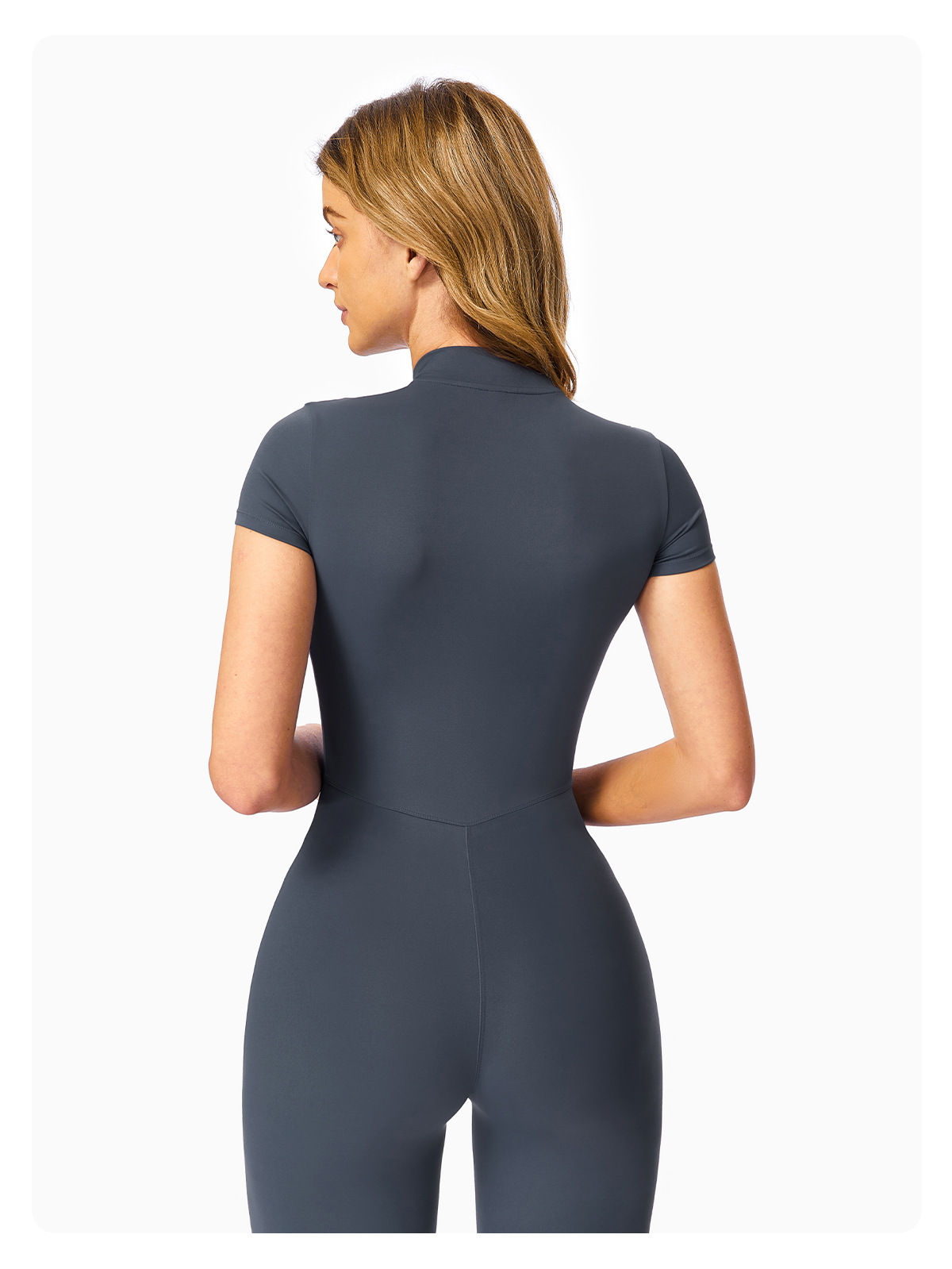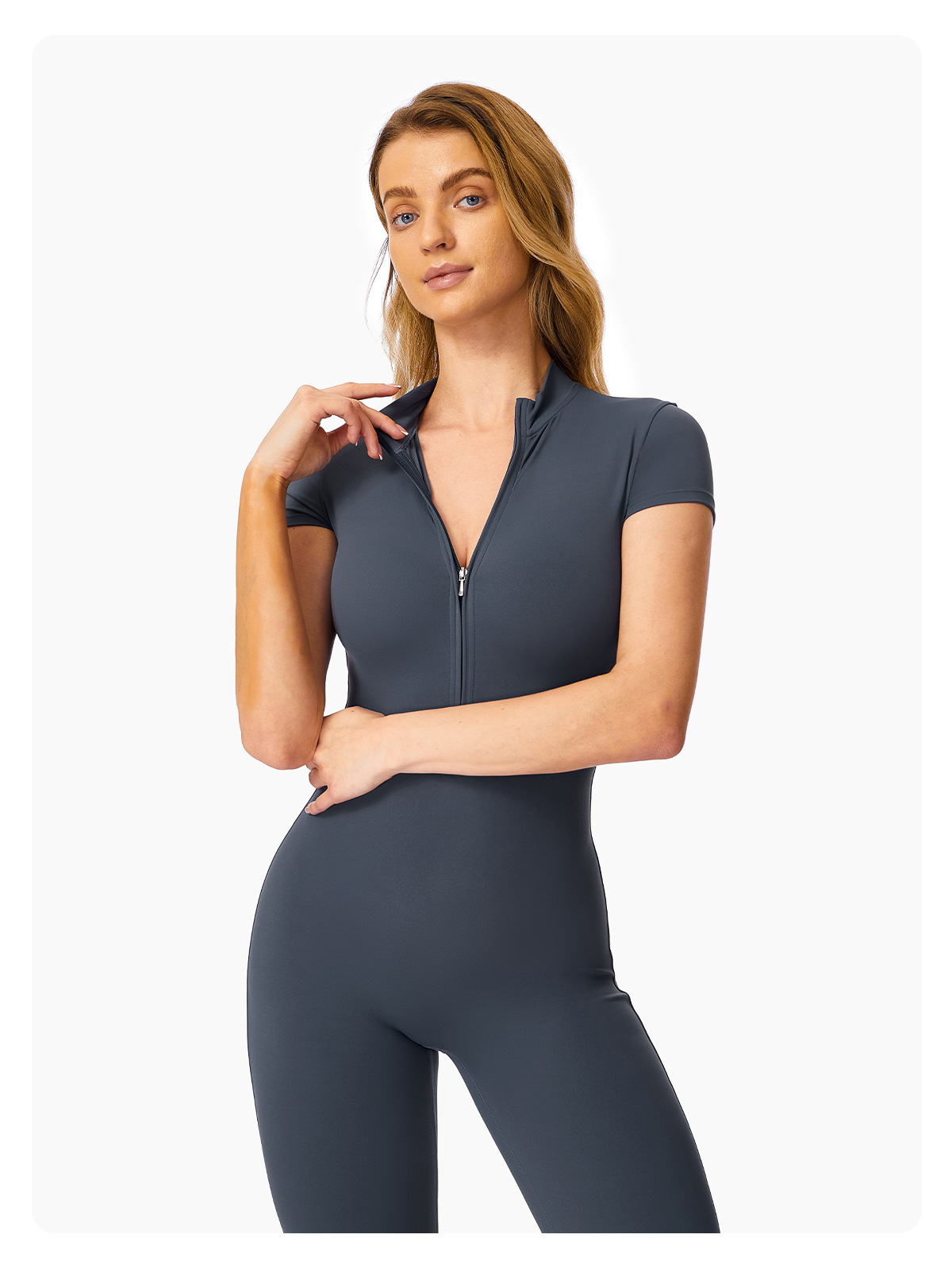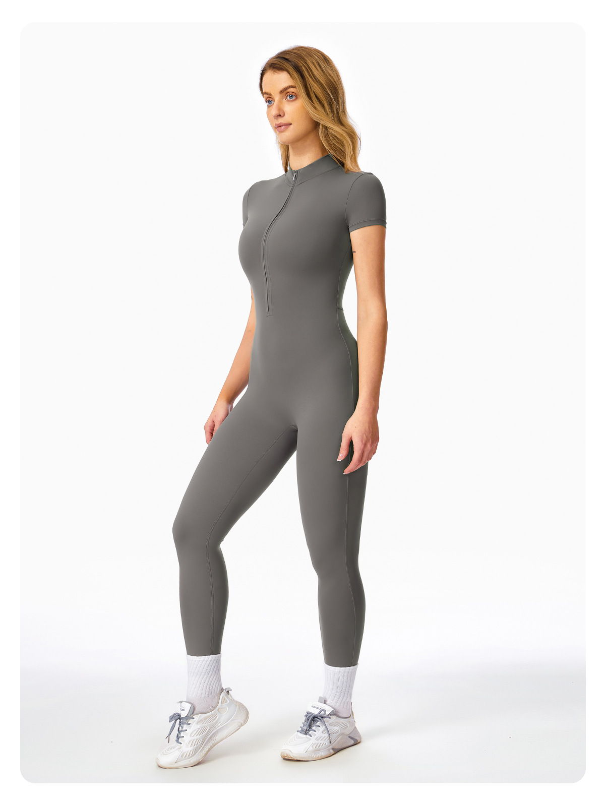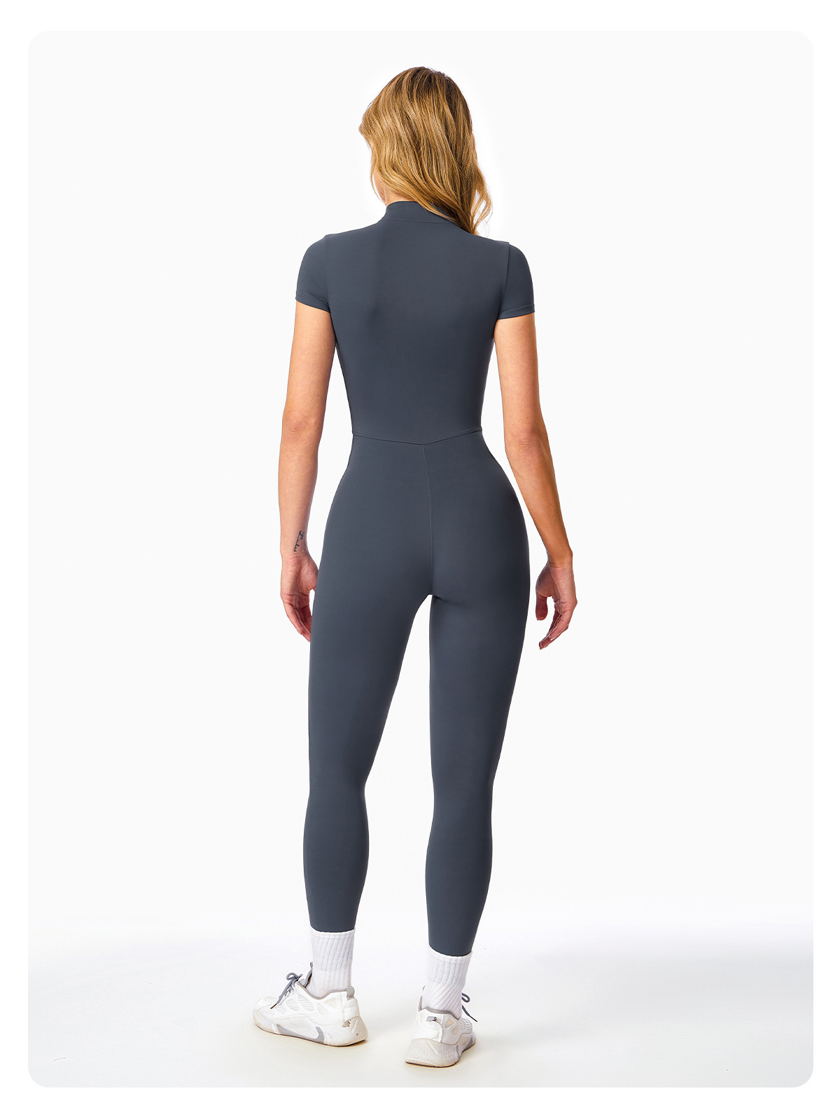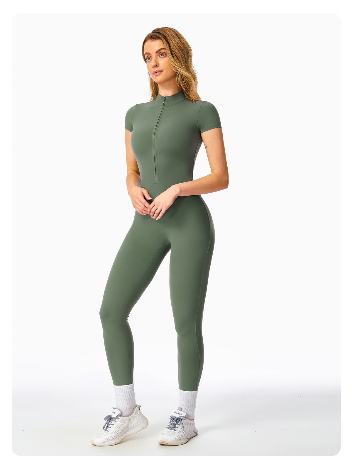 아마존 유럽 및 미국 지퍼 반팔 원피스 타이트 의류 여성용 알몸 외부 피트니스 스포츠 원피스 요가 의류 8305