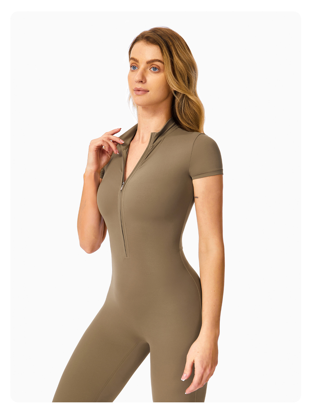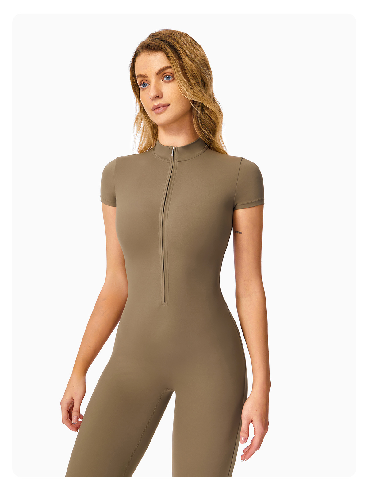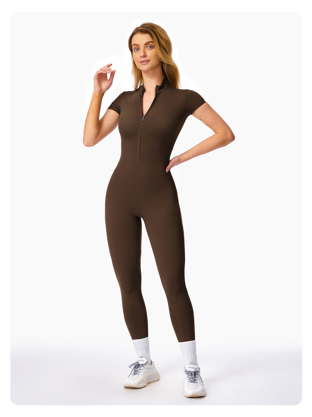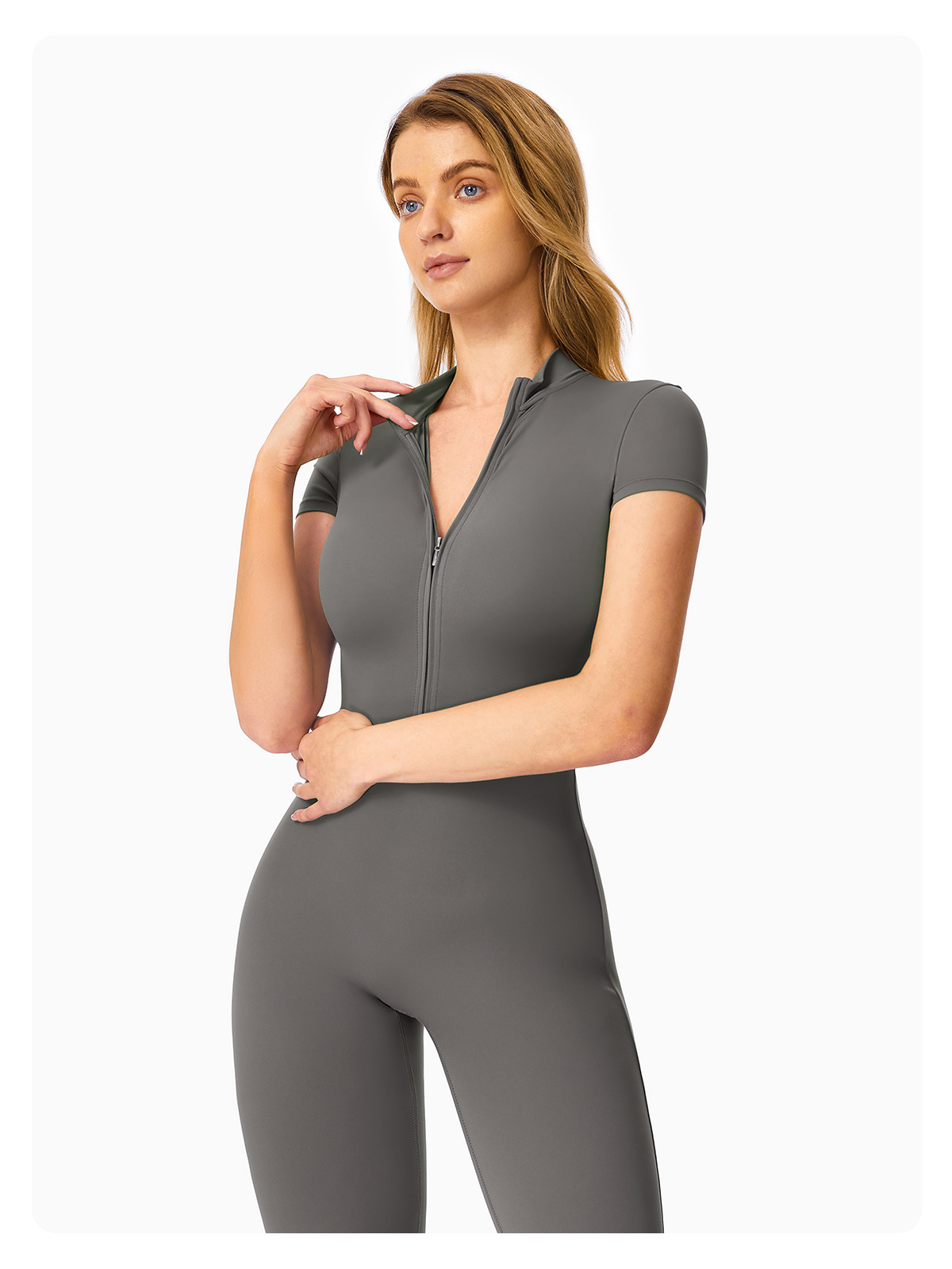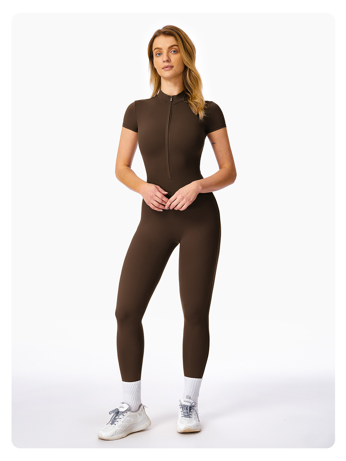 아마존 유럽 및 미국 지퍼 반팔 원피스 타이트 의류 여성용 알몸 외부 피트니스 스포츠 원피스 요가 의류 8305