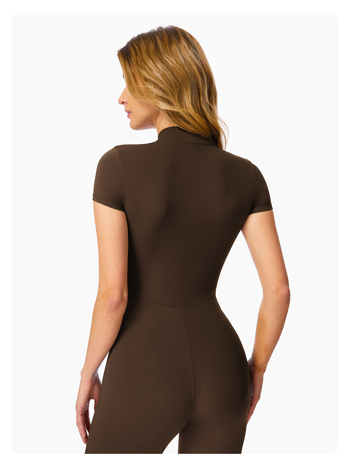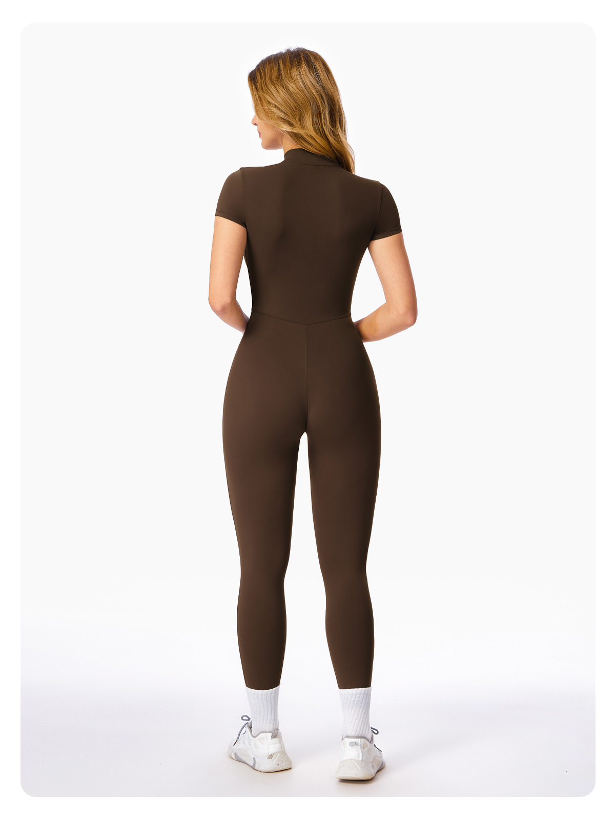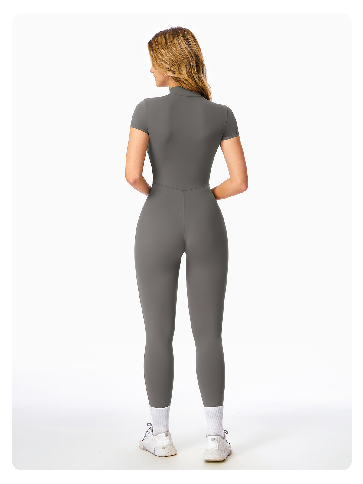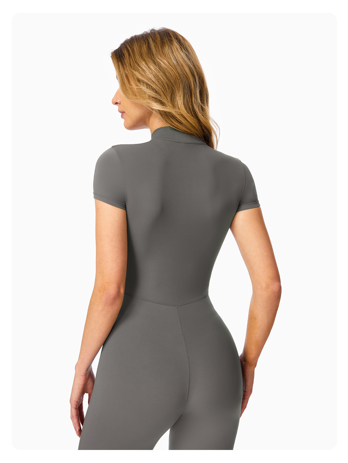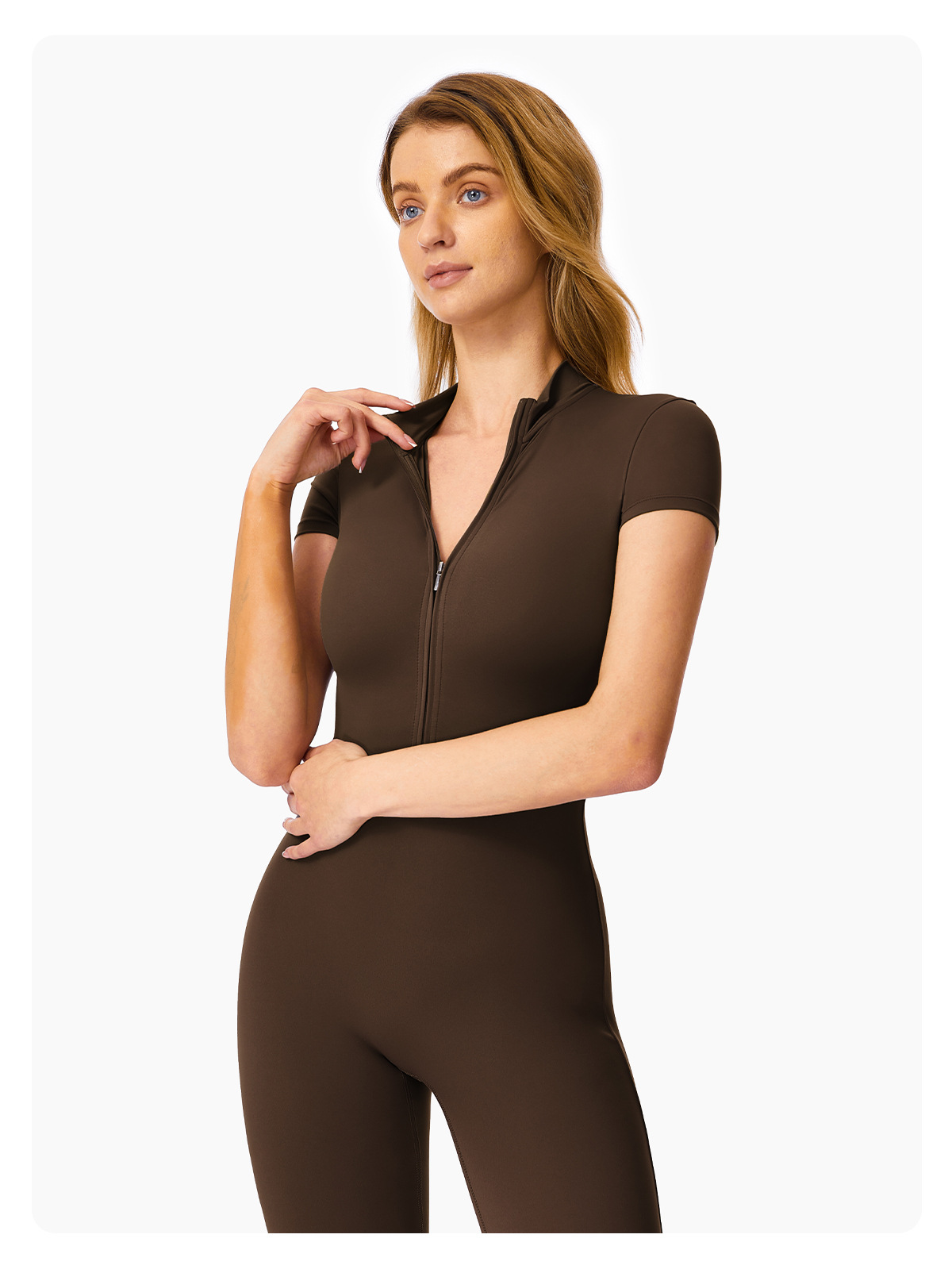 아마존 유럽 및 미국 지퍼 반팔 원피스 타이트 의류 여성용 알몸 외부 피트니스 스포츠 원피스 요가 의류 8305